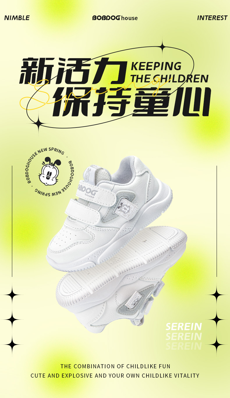 Babu 콩 어린이 신발 봄 2023 새로운 벨크로 어린이 신발 미끄럼 방지 내마모성 어린이 캐주얼 스포츠 신발