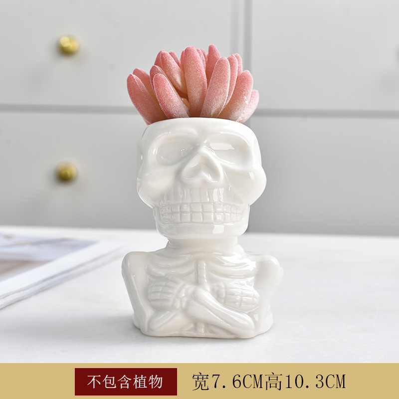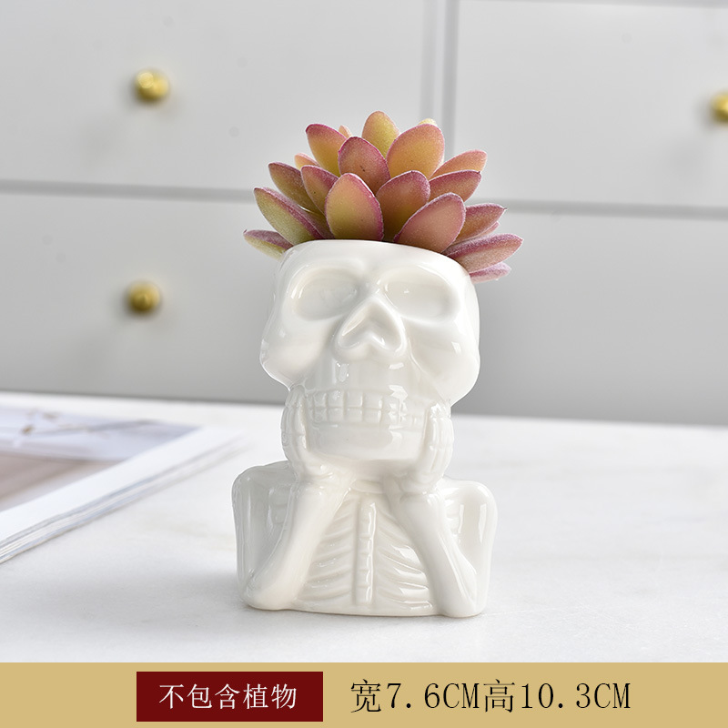 크리 에이 티브 화이트 도자기 다육 화분 성격 해골 꽃 장식품 외국 무역 국경 아마존 원예 도매스토어 가기
