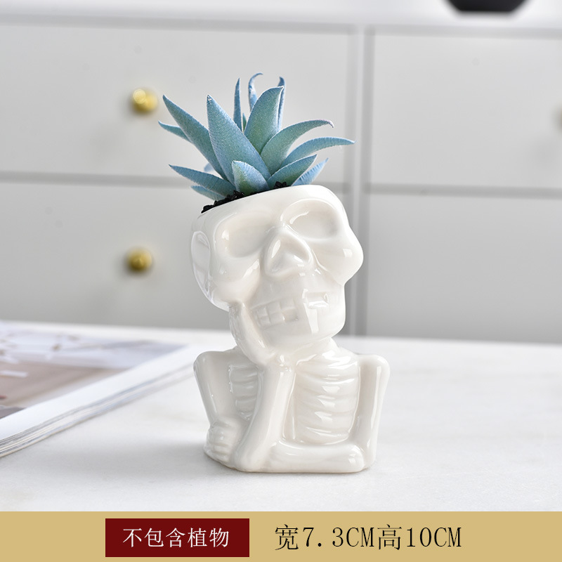 크리 에이 티브 화이트 도자기 다육 화분 성격 해골 꽃 장식품 외국 무역 국경 아마존 원예 도매