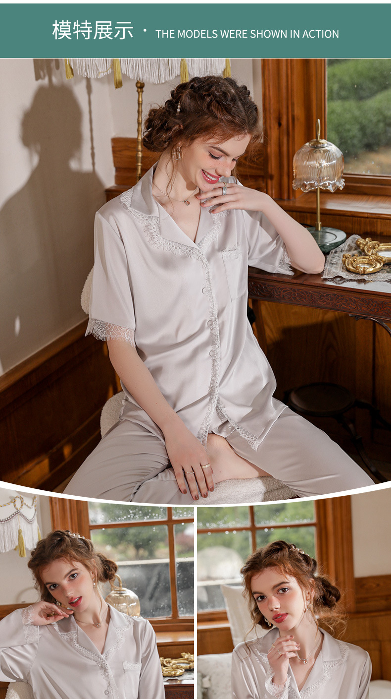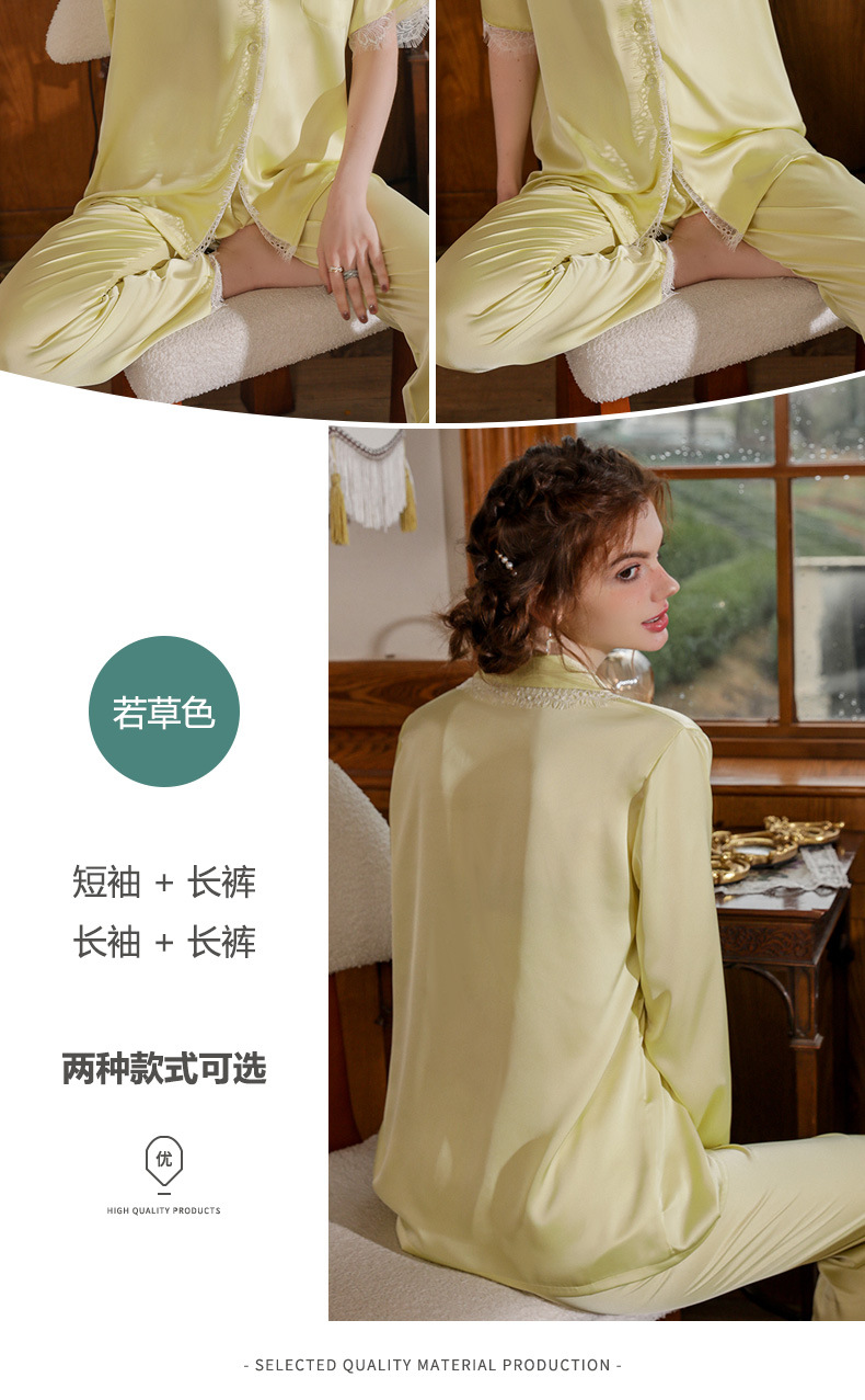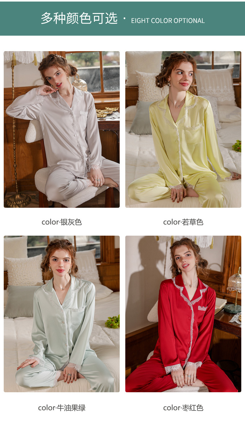 Mosogoy/꿈 실크 브로케이드 잠옷 여성의 봄과 가을 아이스 실크 2023 새로운 고급 실크 세트 가정 옷스토어 가기