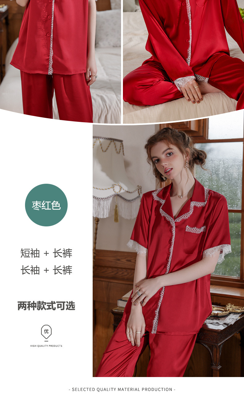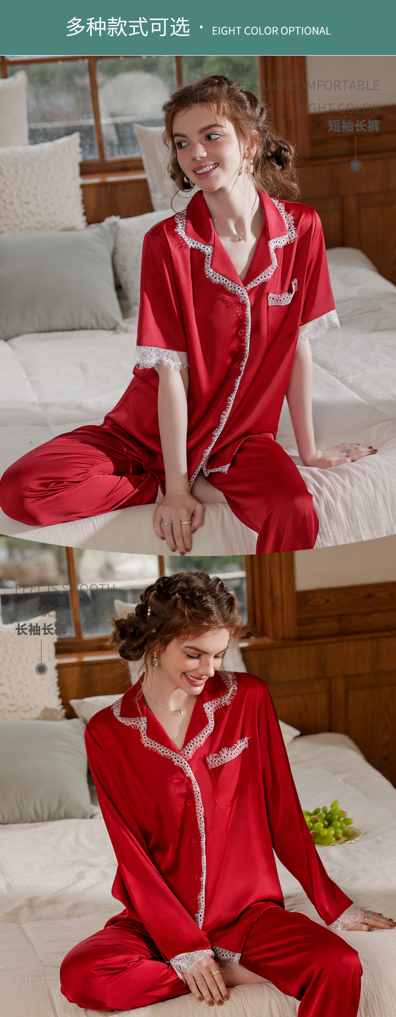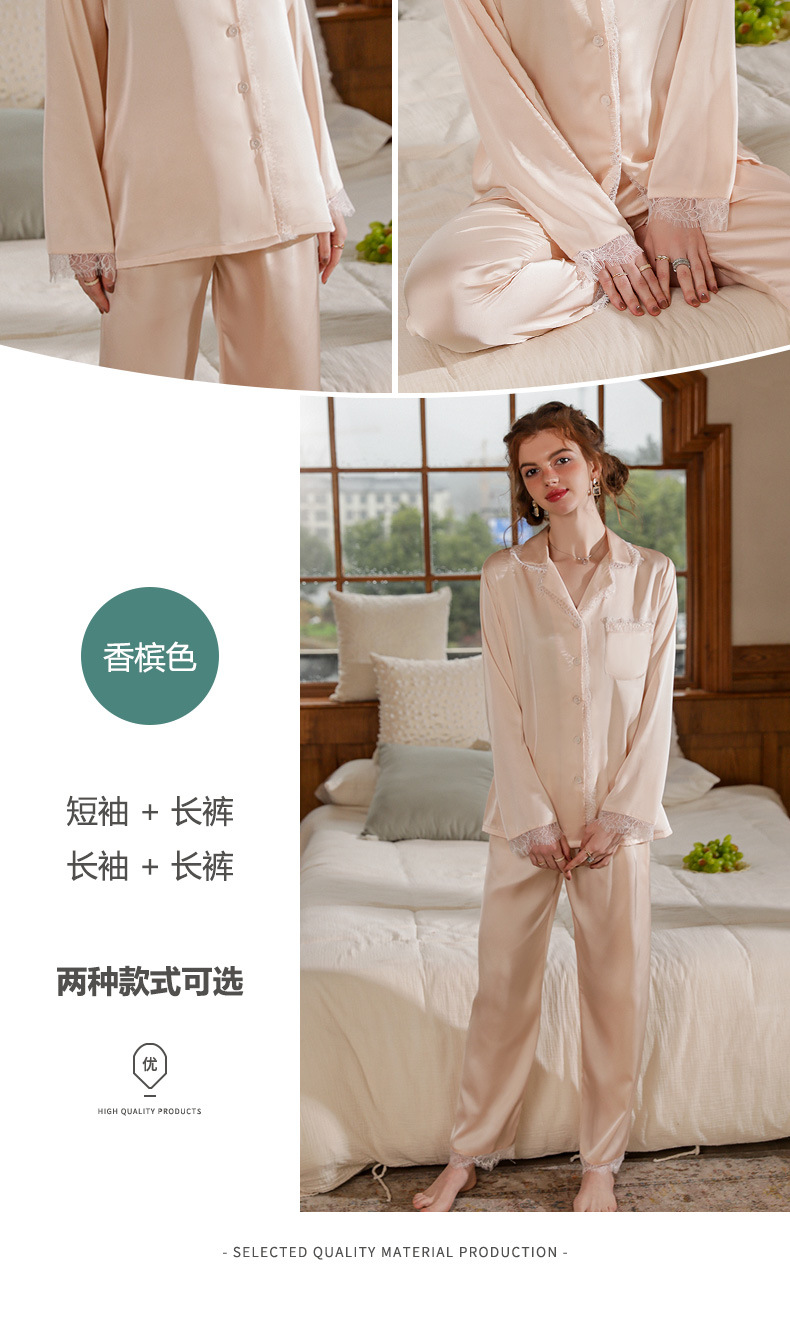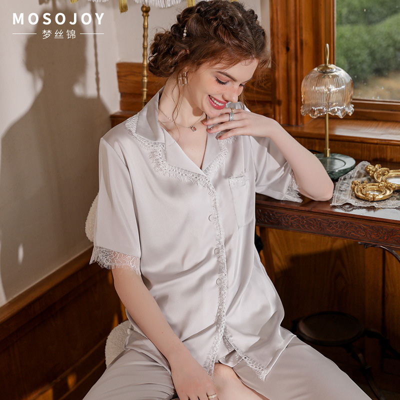 Mosogoy/꿈 실크 브로케이드 잠옷 여성의 봄과 가을 아이스 실크 2023 새로운 고급 실크 세트 가정 옷