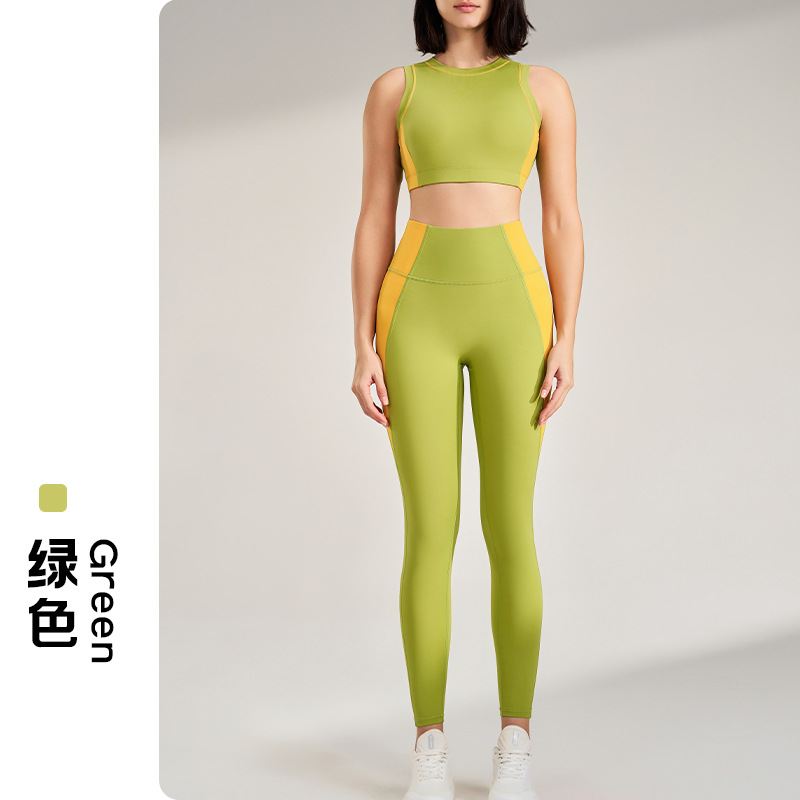 스포츠 야외 피트니스 세트 속건 요가복 충격방지 브라 레깅스 러닝 9부 팬츠 여성용 바디쉐이핑