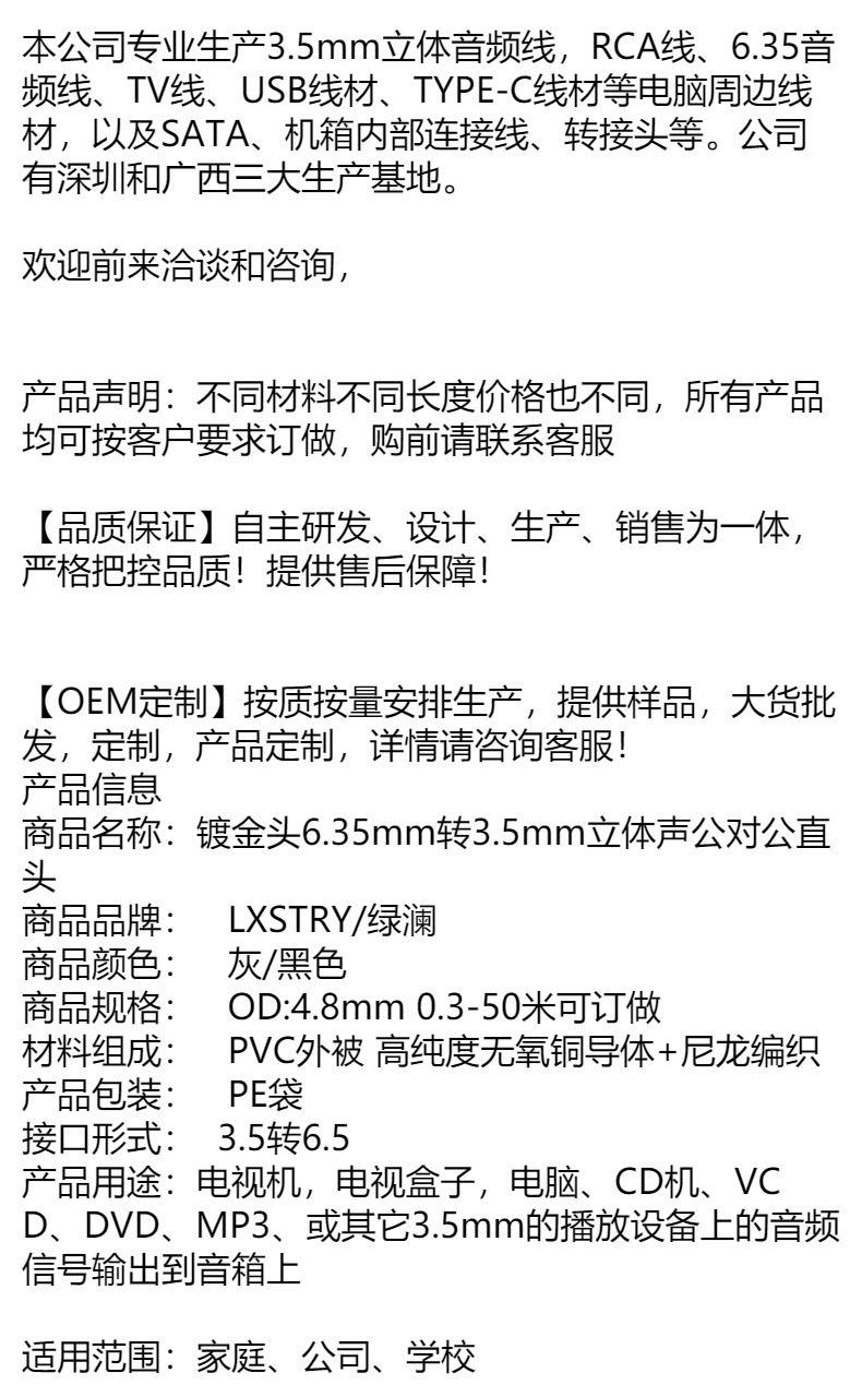 공장 3.5 ~ 6.5 큰 3 코어 남성-남성 휴대 전화 출력 컴퓨터에 오디오 믹서를 연결하여 오디오 라인 연결스토어 가기