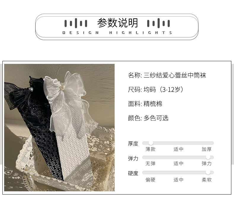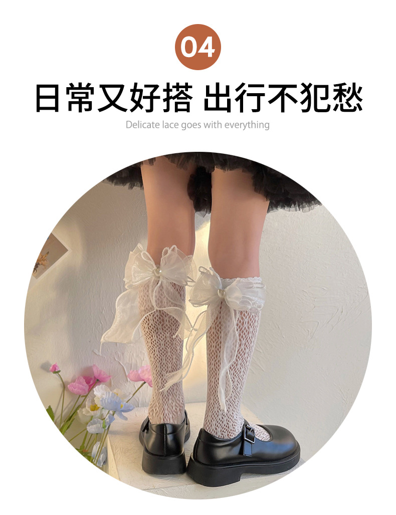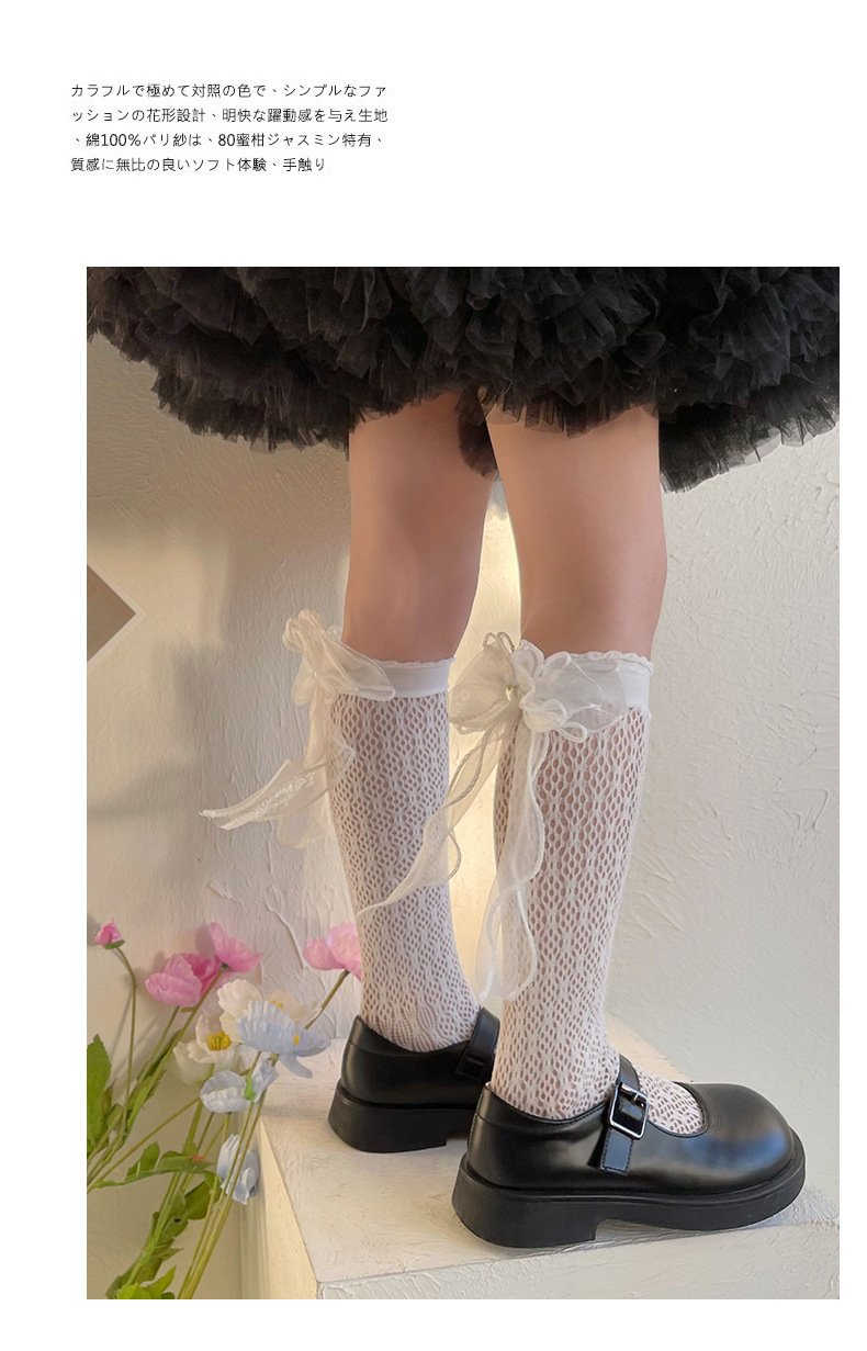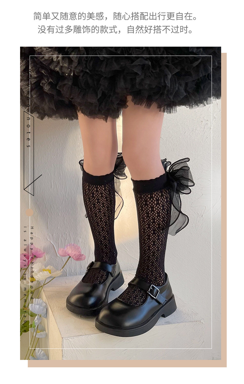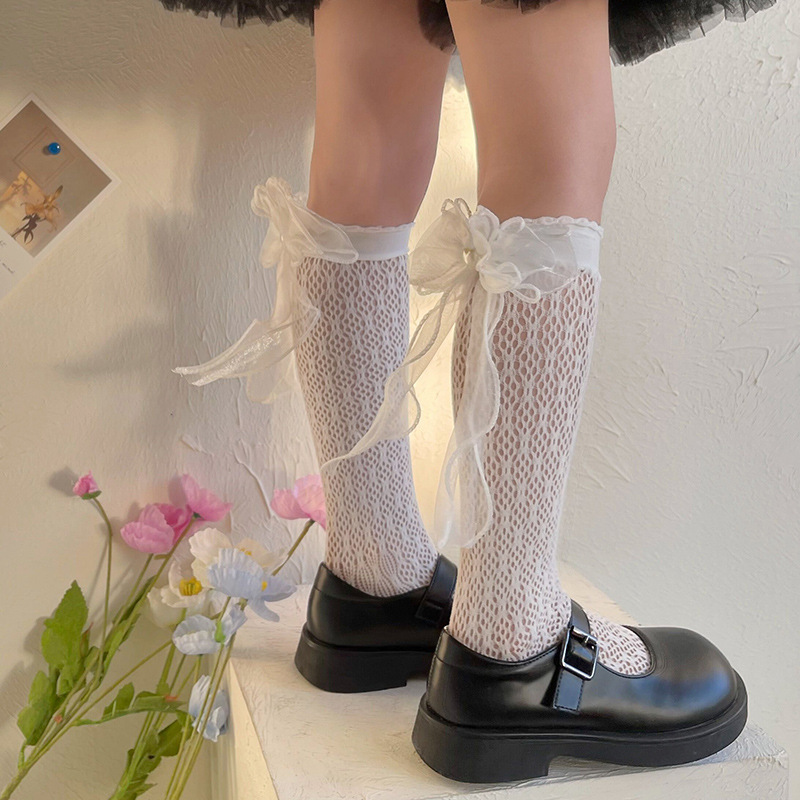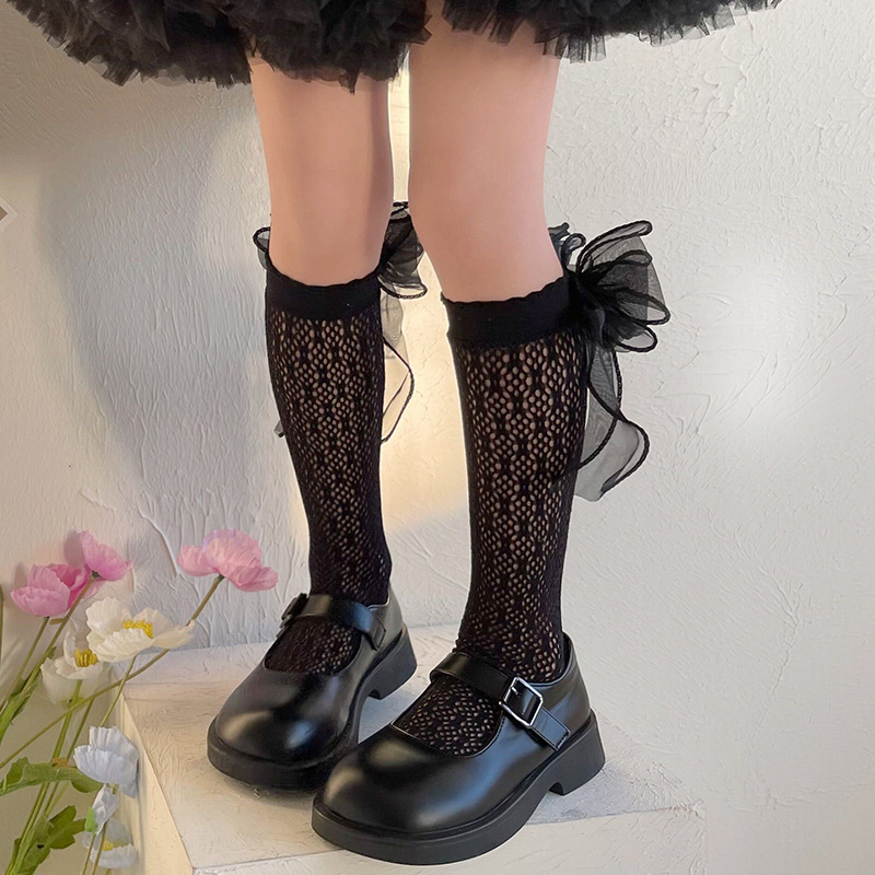 여자 로리타 공주 양말 메쉬 어린이 레이스 큰 활 레이스 JK 중간 양말 아기 스타킹
