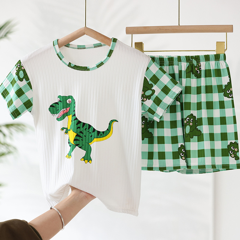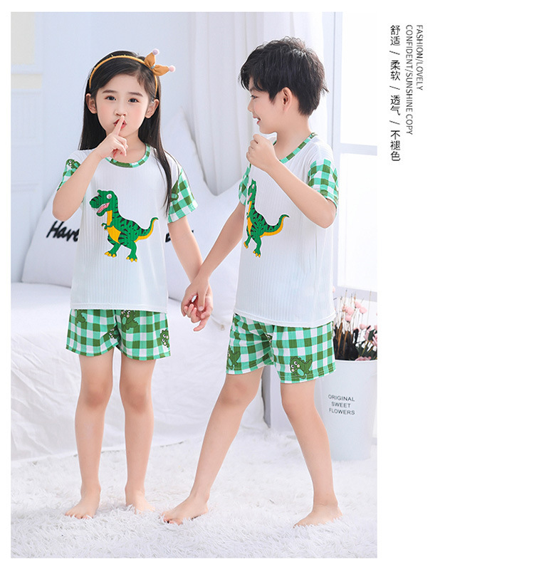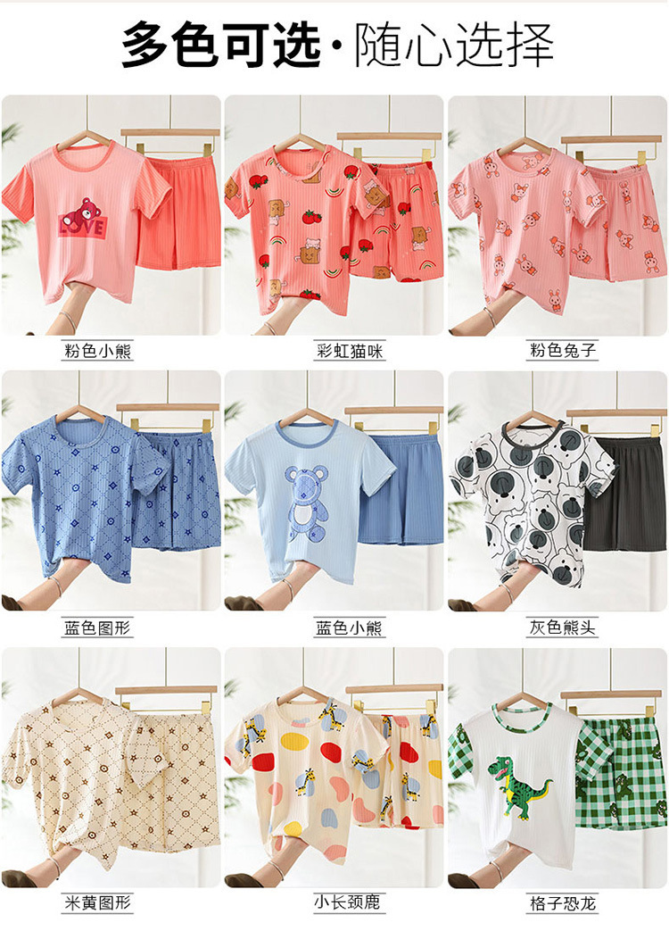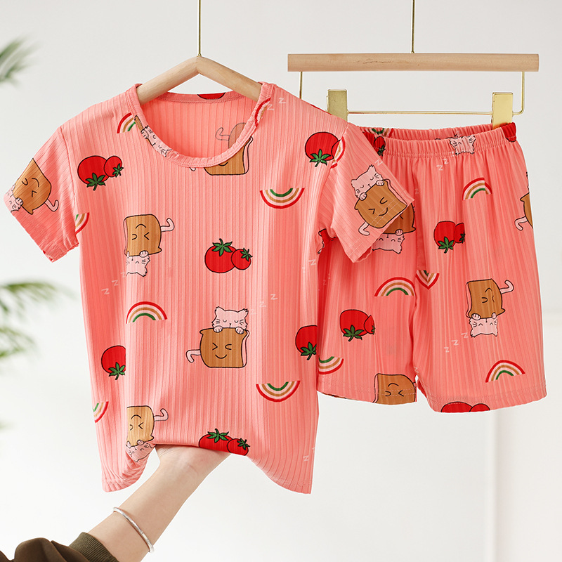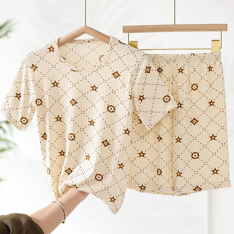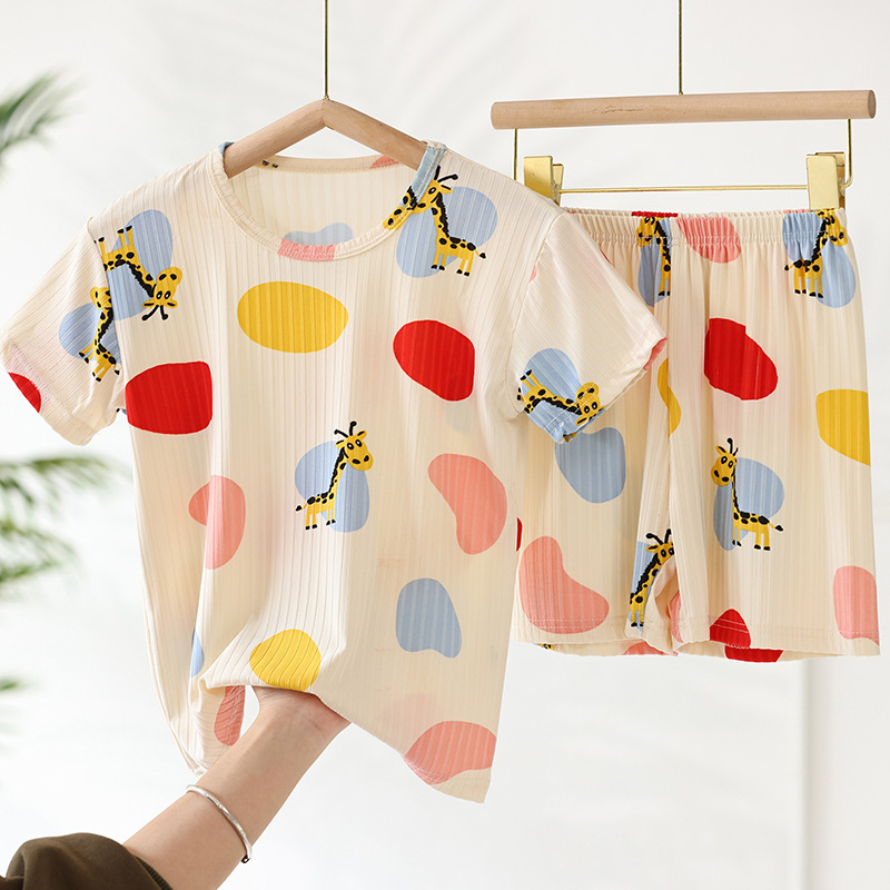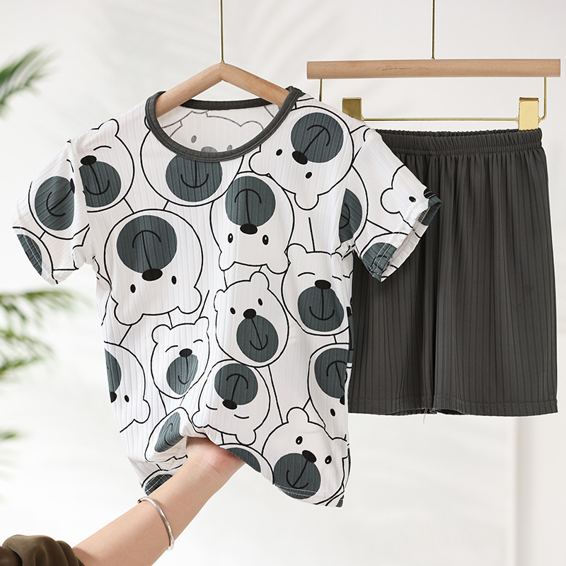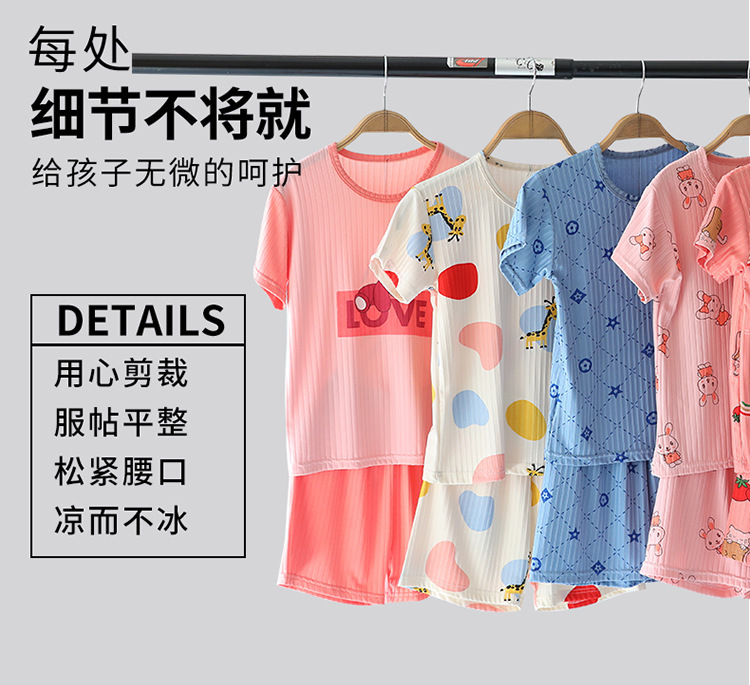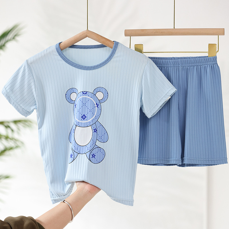 어린이 모달 잠옷 소년의 여름 여아 가정복 아이스 실크 세트 소년의 아기의 반팔 바지 얇은스토어 가기