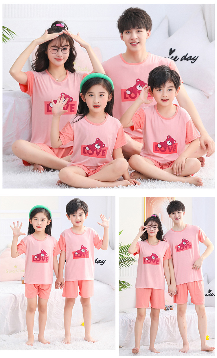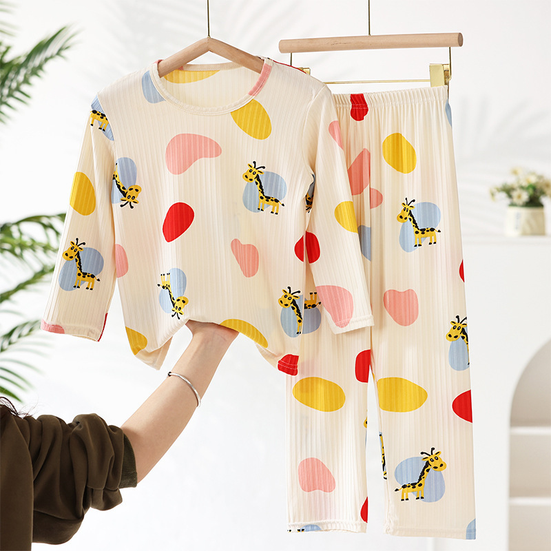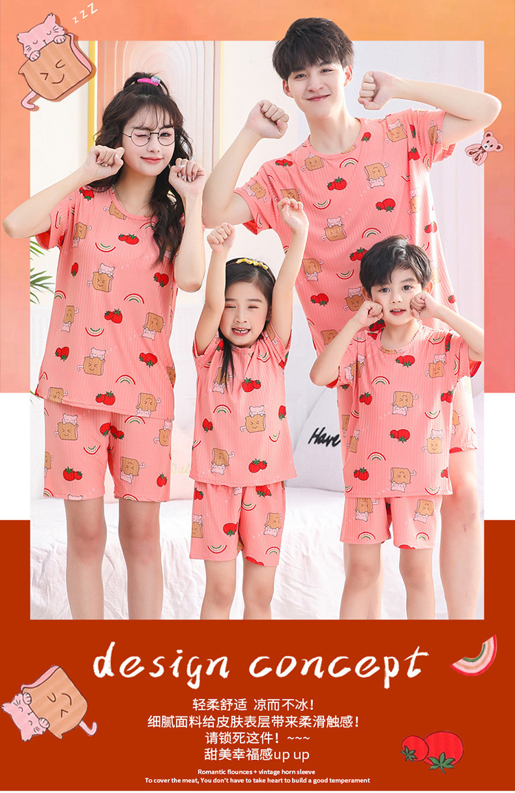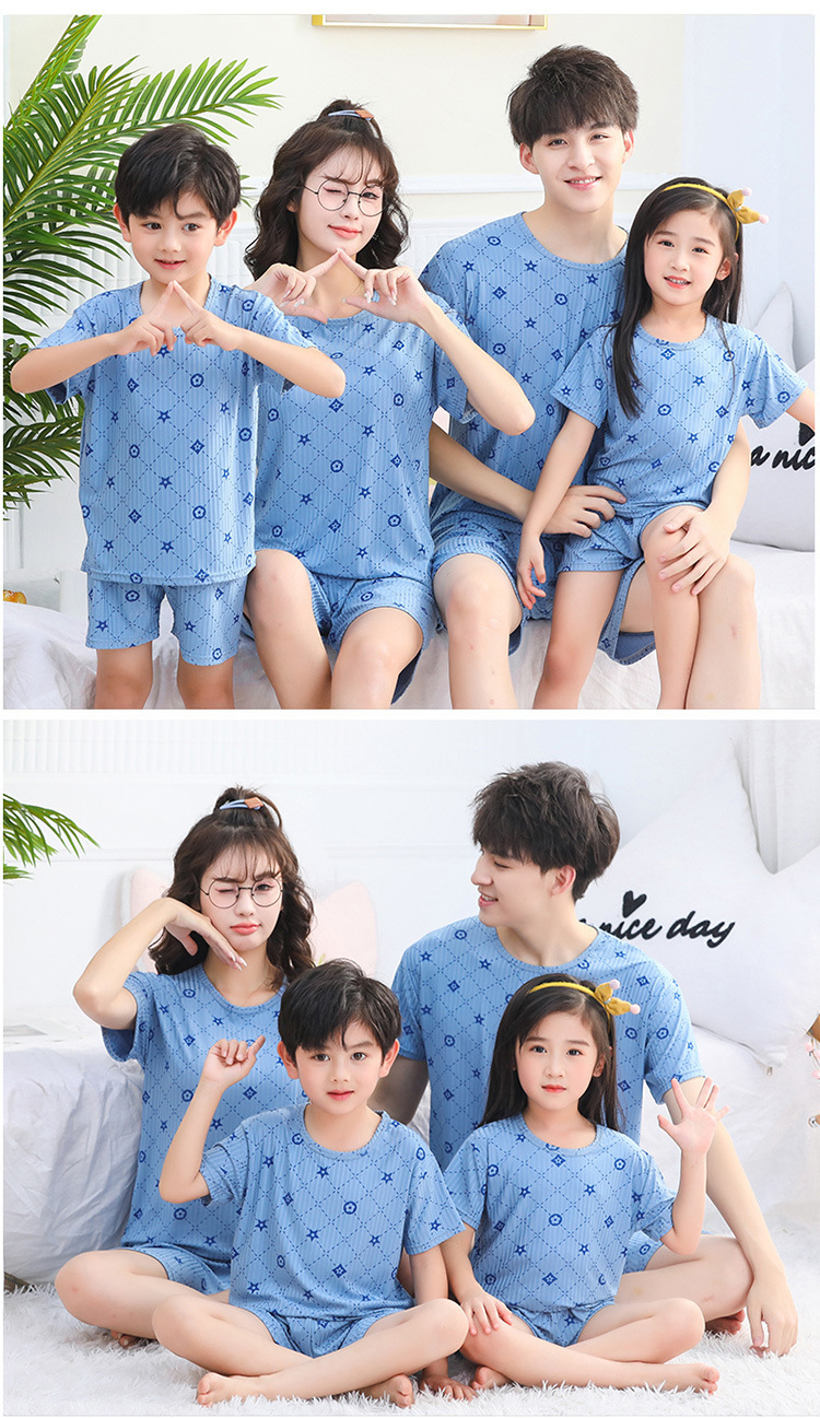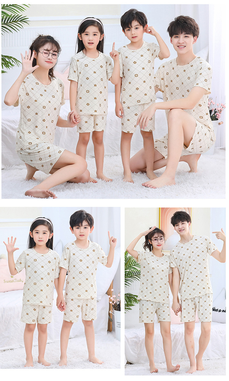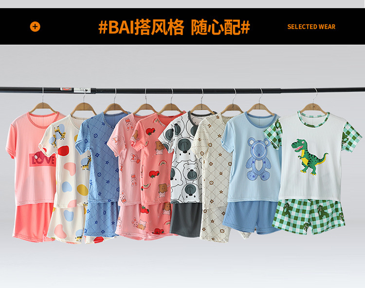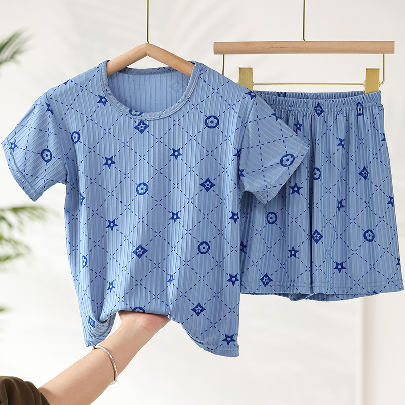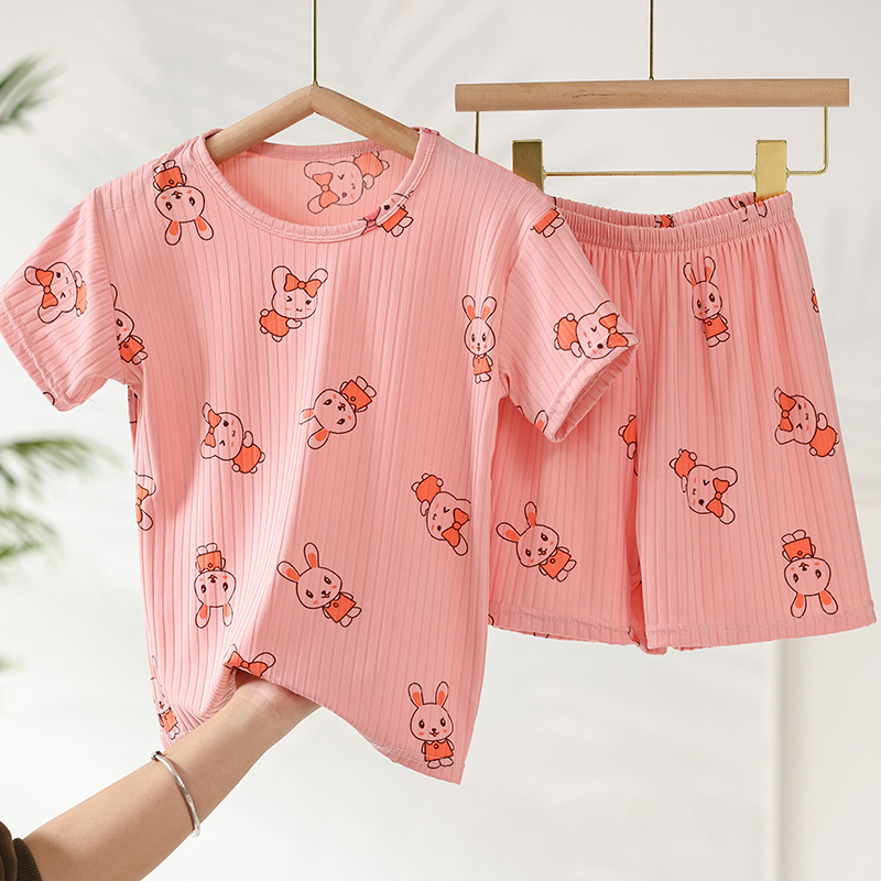 어린이 모달 잠옷 소년의 여름 여아 가정복 아이스 실크 세트 소년의 아기의 반팔 바지 얇은스토어 가기