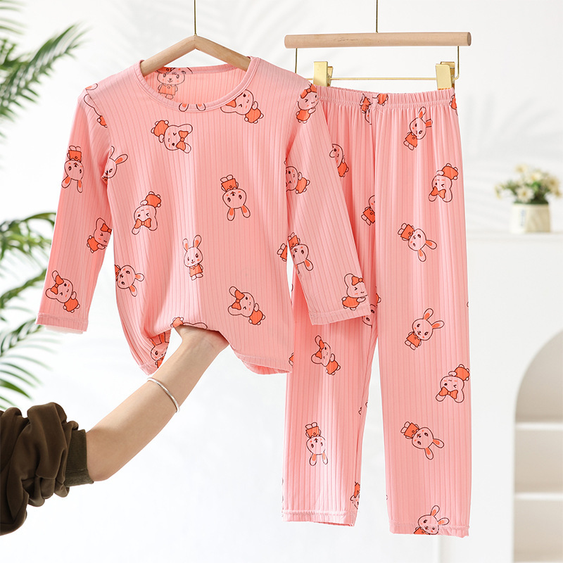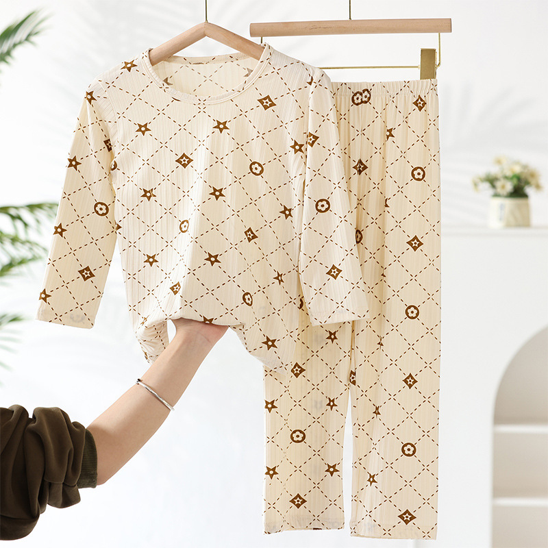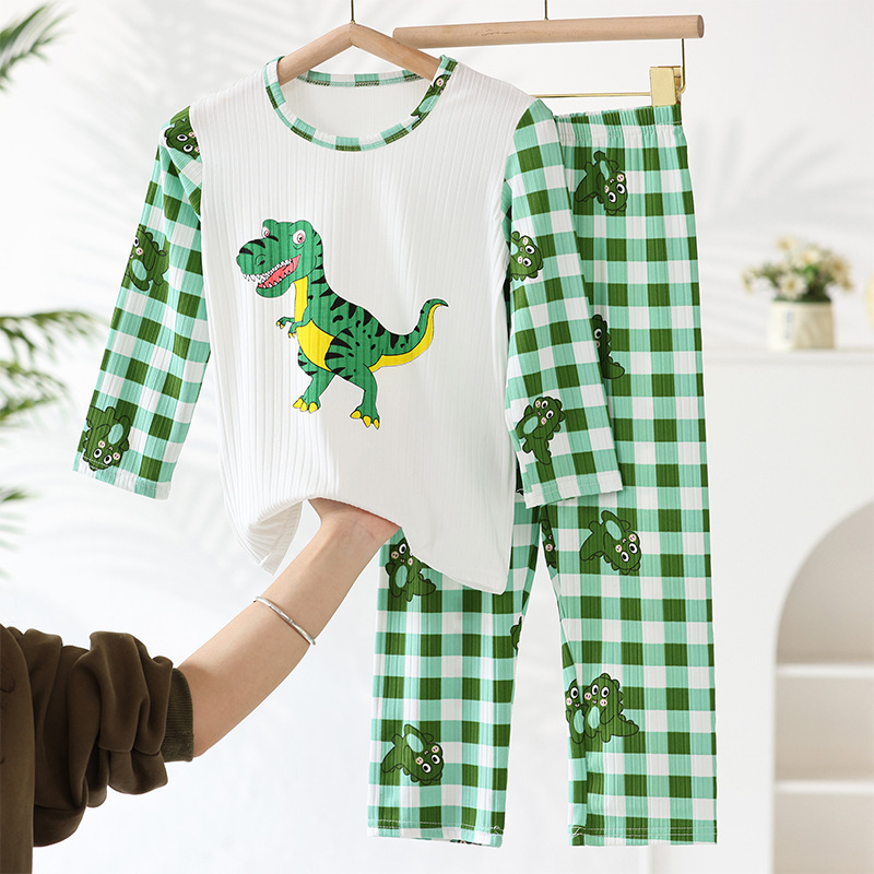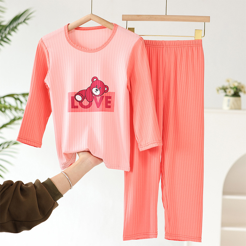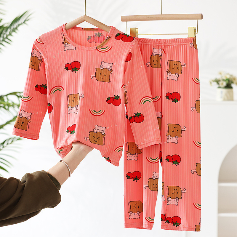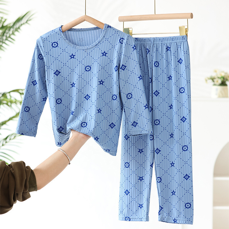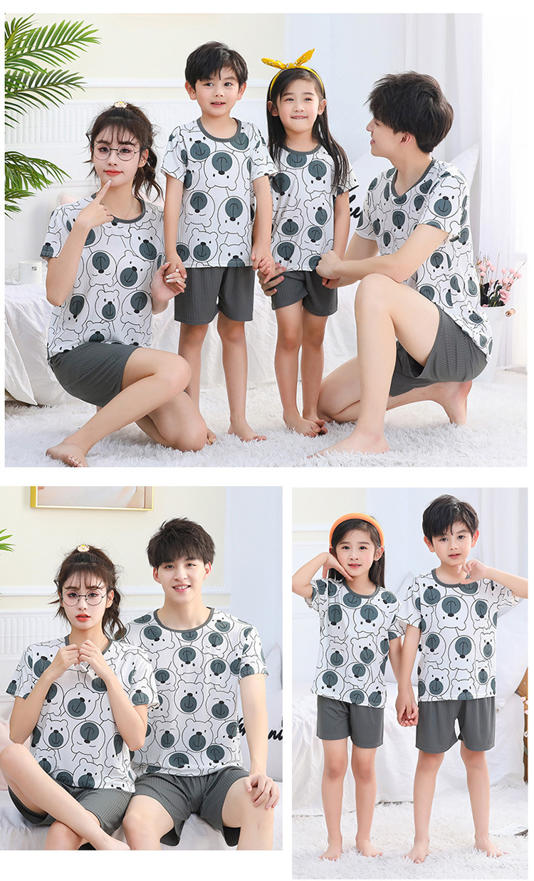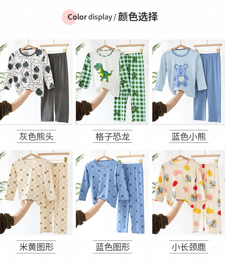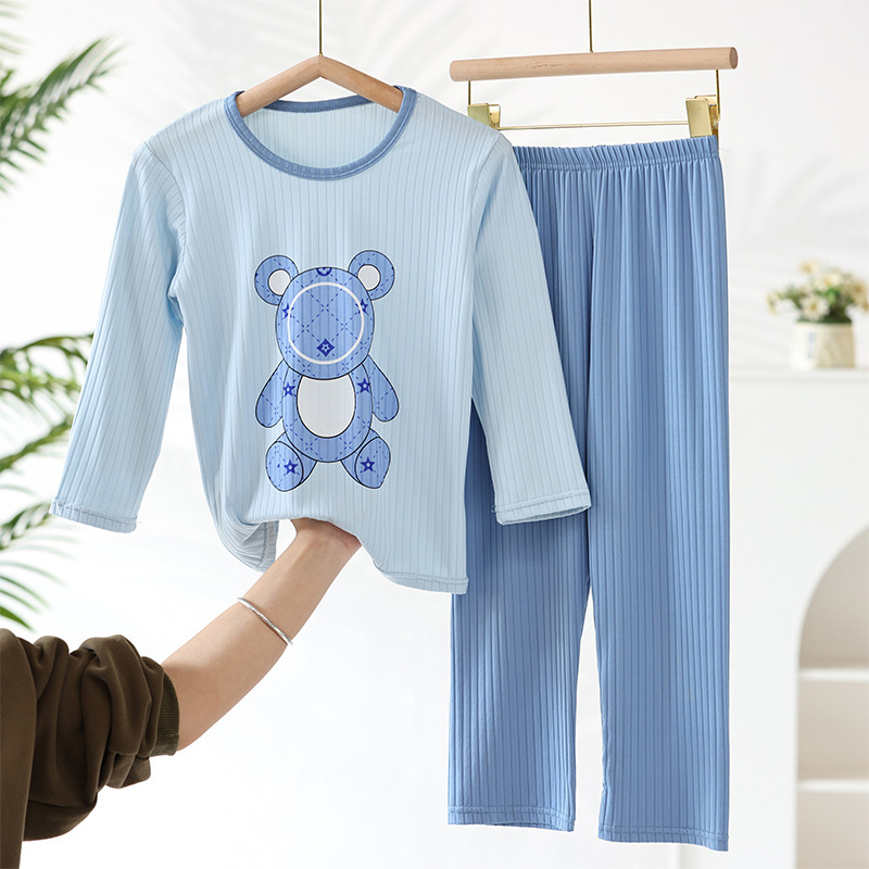 어린이 모달 잠옷 소년의 여름 여아 가정복 아이스 실크 세트 소년의 아기의 반팔 바지 얇은스토어 가기