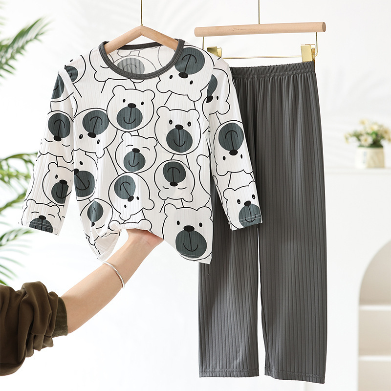 어린이 모달 잠옷 소년의 여름 여아 가정복 아이스 실크 세트 소년의 아기의 반팔 바지 얇은