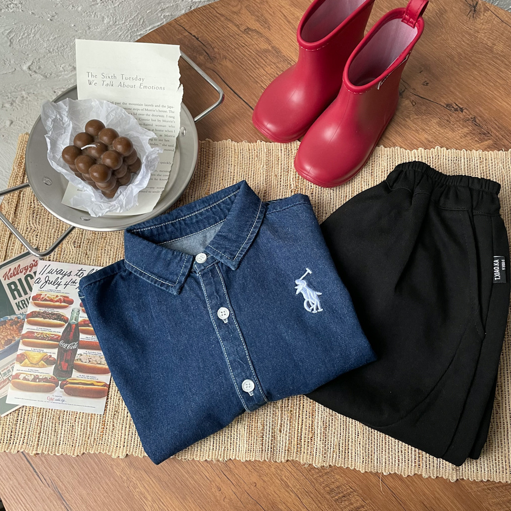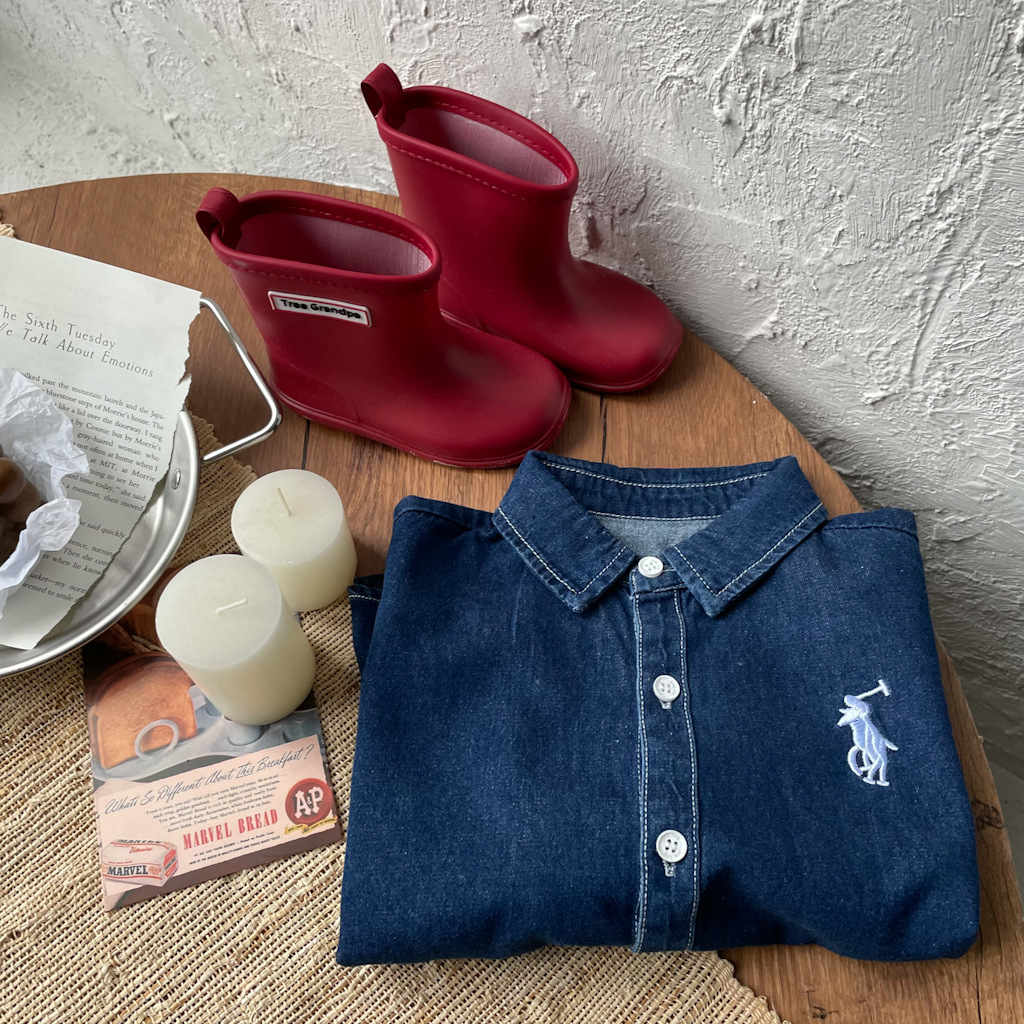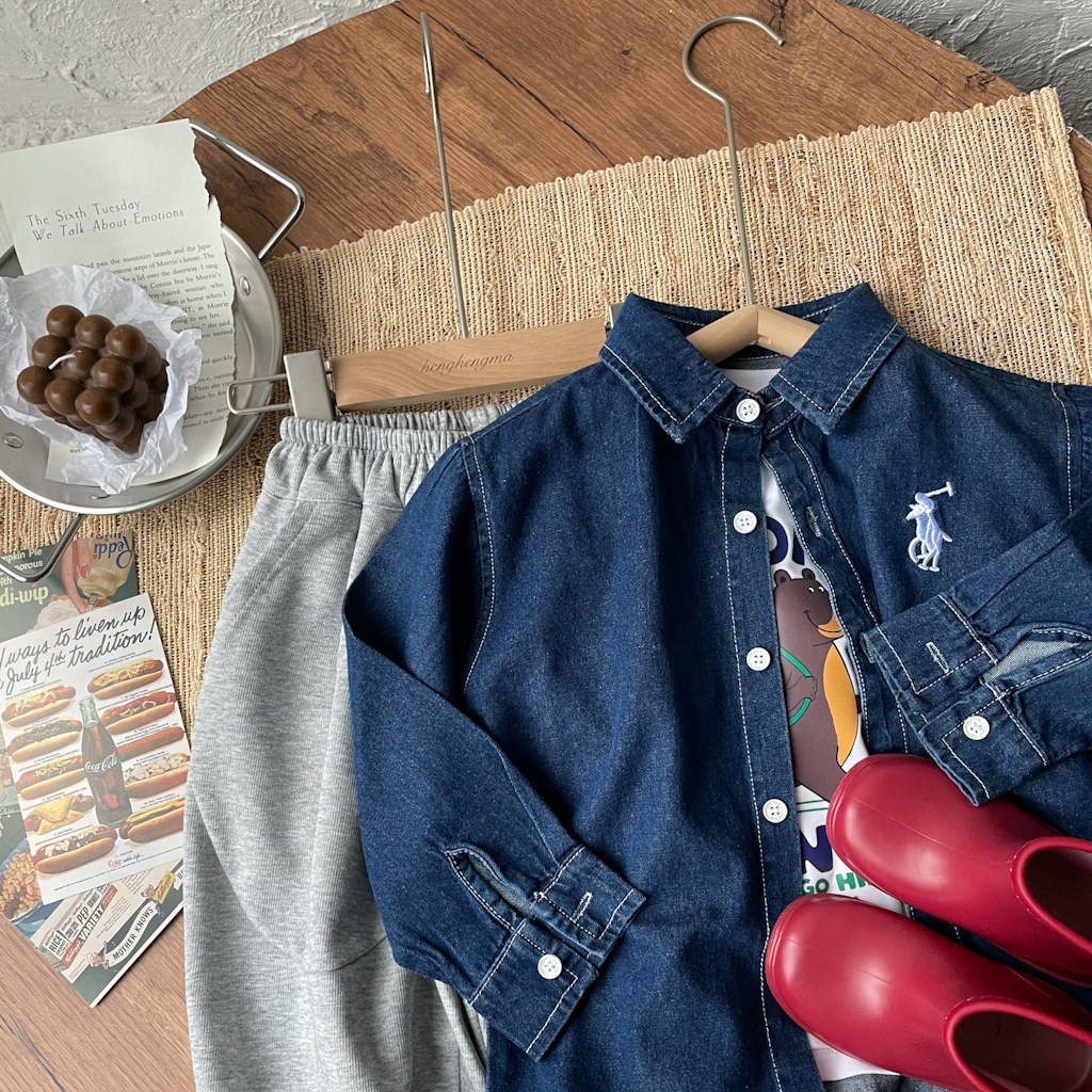 아동 캐주얼 데님 셔츠 남아용 한국 스타일 봄 가을 오리지널 컬러 데님 가디건 유치원 카라 셔츠 해외배송