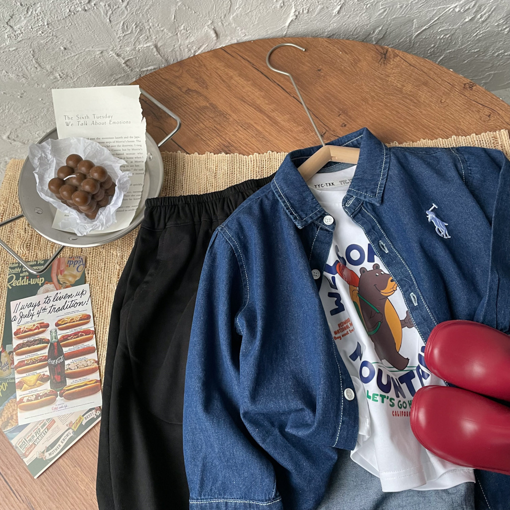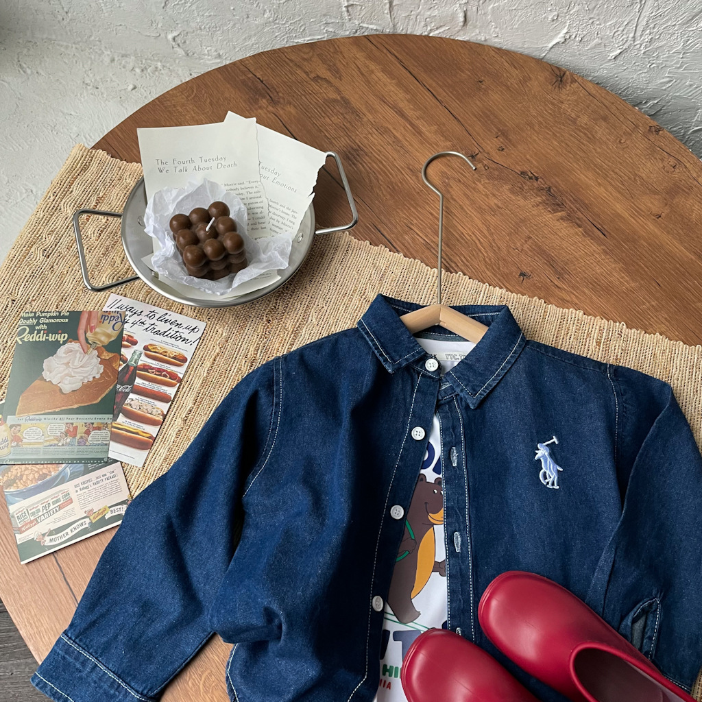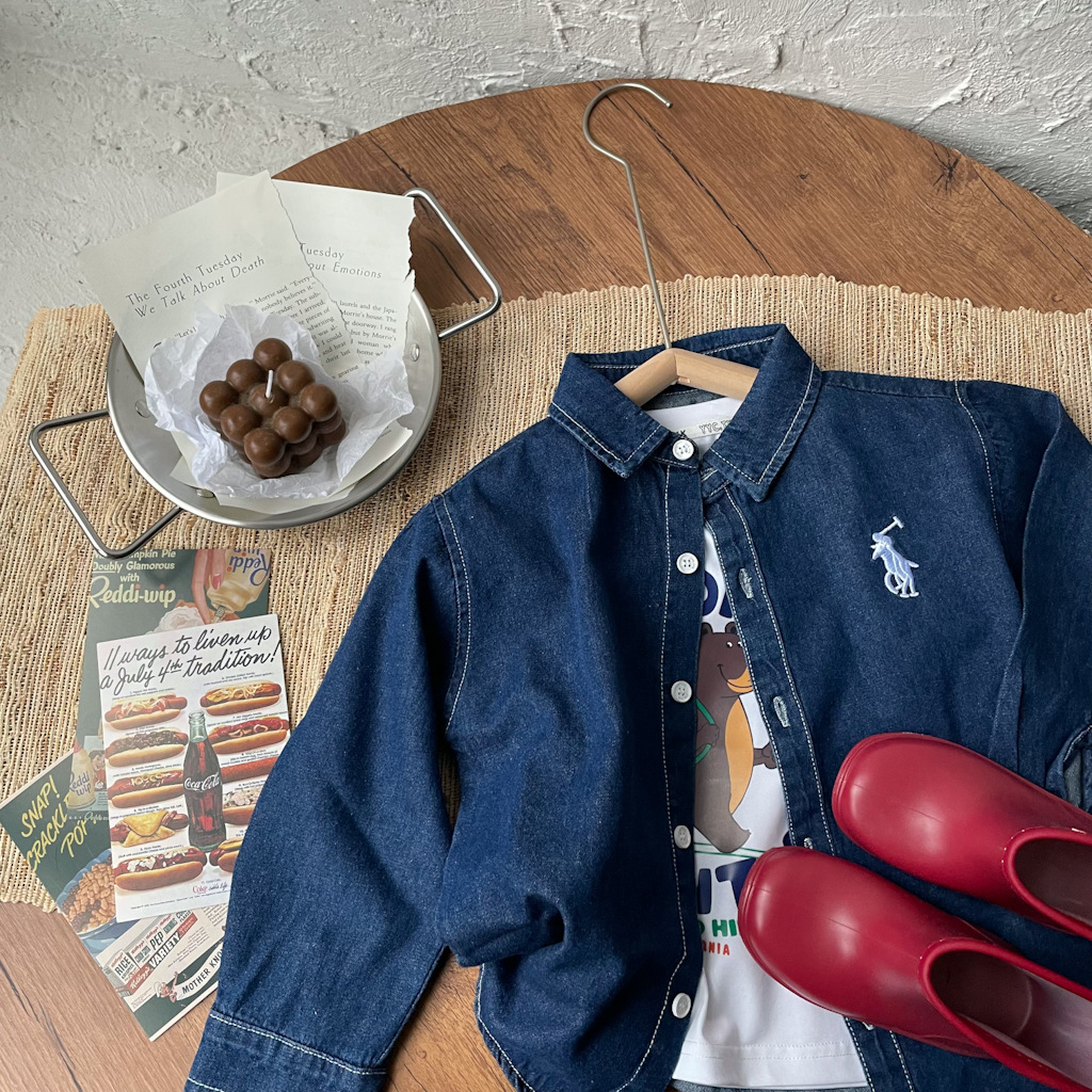 아동 캐주얼 데님 셔츠 남아용 한국 스타일 봄 가을 오리지널 컬러 데님 가디건 유치원 카라 셔츠 해외배송스토어 가기