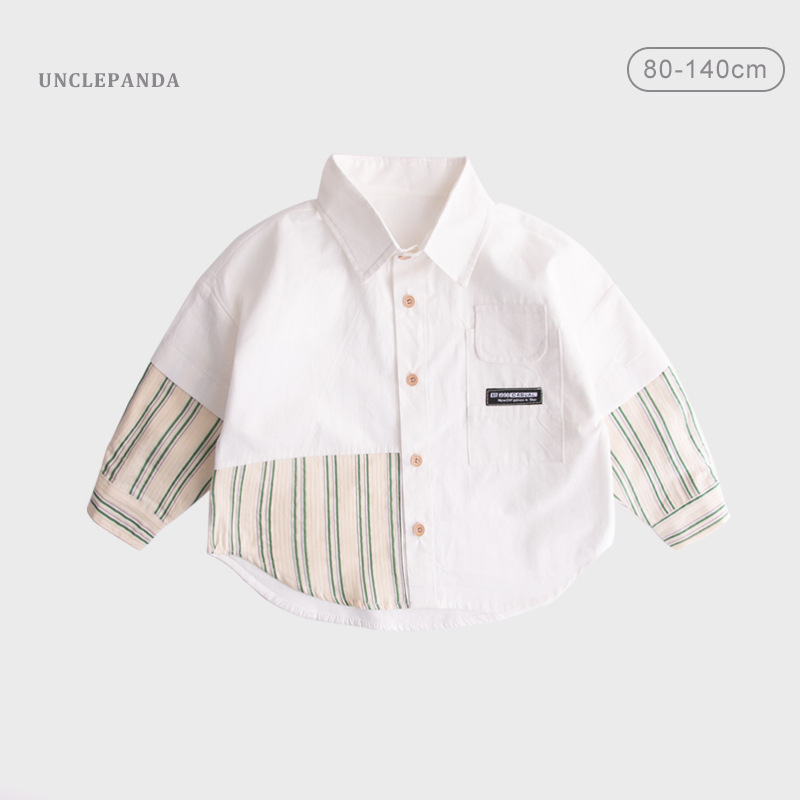 남아 긴팔 셔츠 아동 스트라이프 셔츠 봄과 가을 아기 탑 라펠 2023 새로운 아동복 아동 가디건스토어 가기