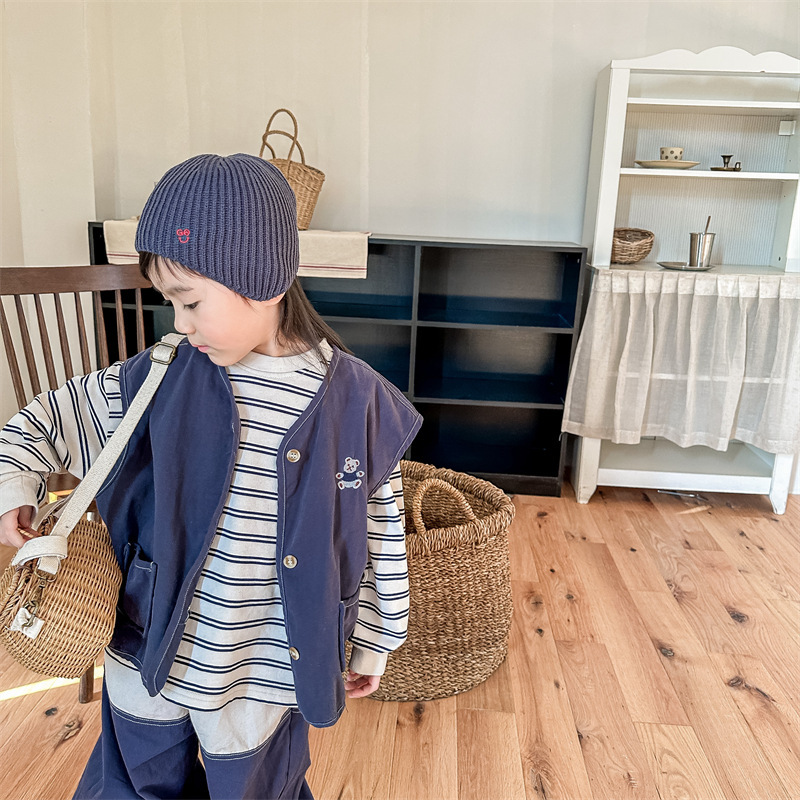 2024 봄 어린이 씻은 면화 조끼 소녀 곰 자수 카디건 작은 조끼 어린이 얇은 허리 코트스토어 가기