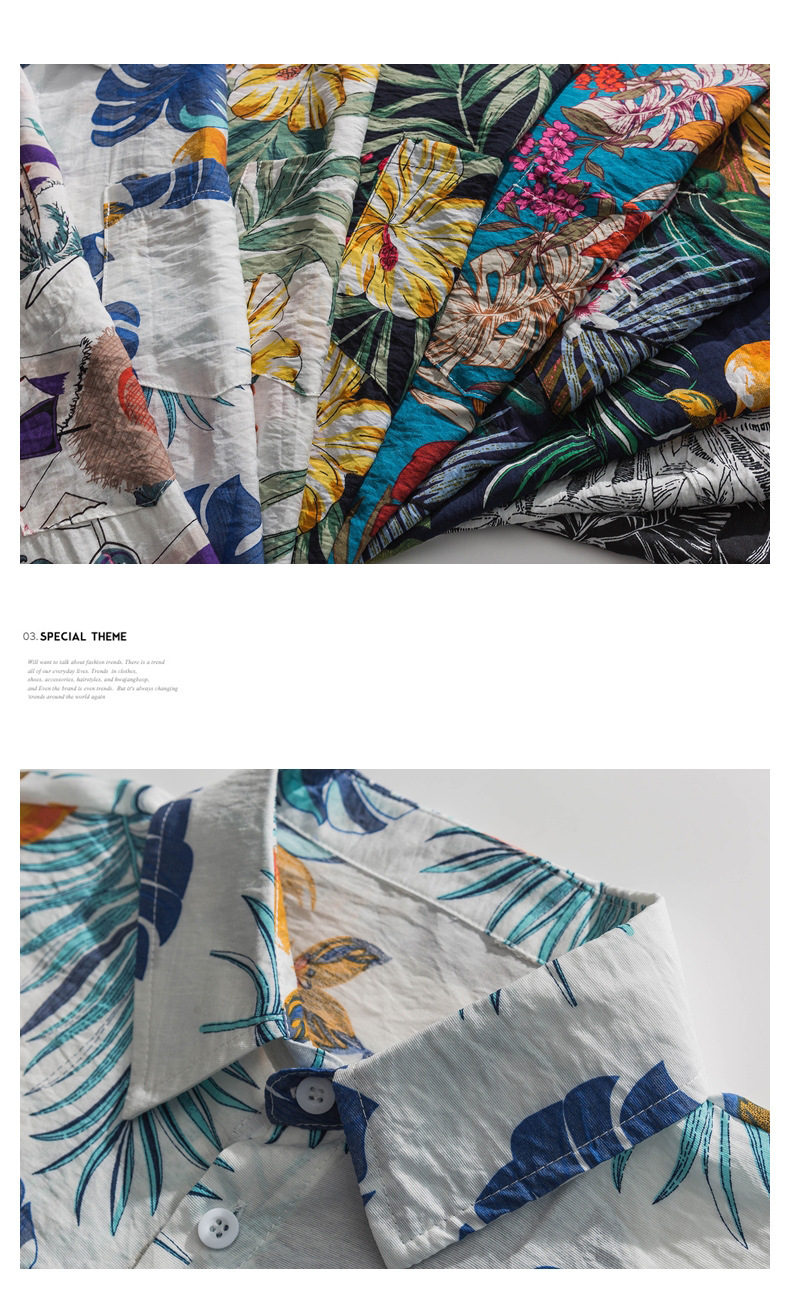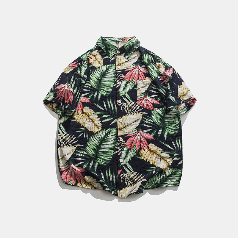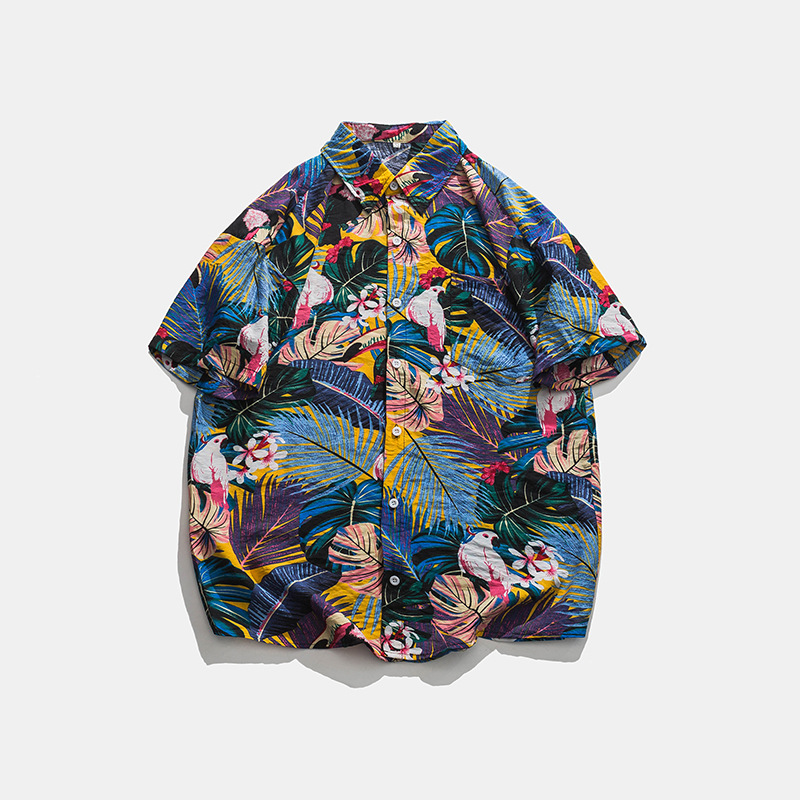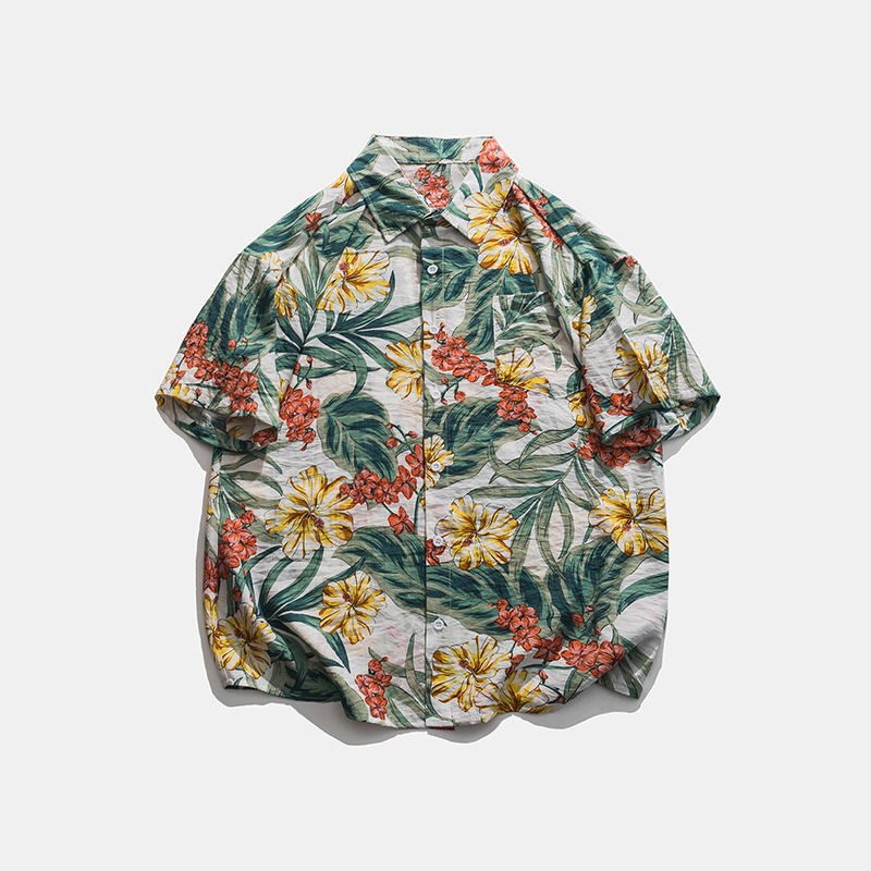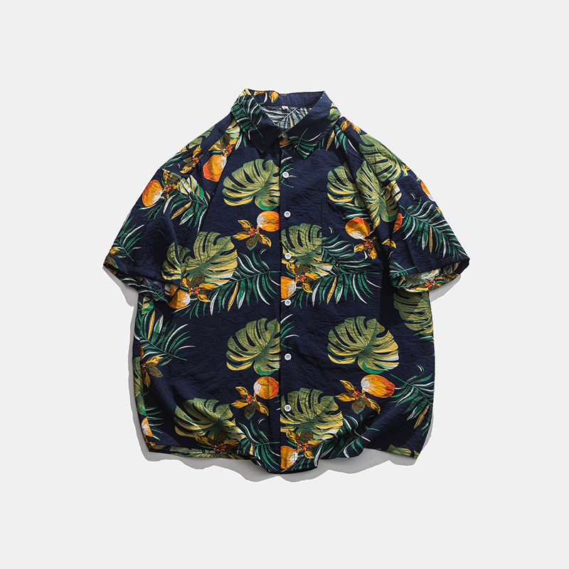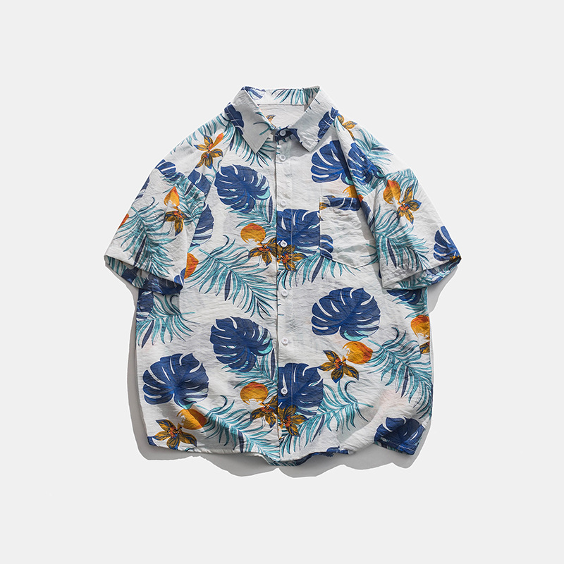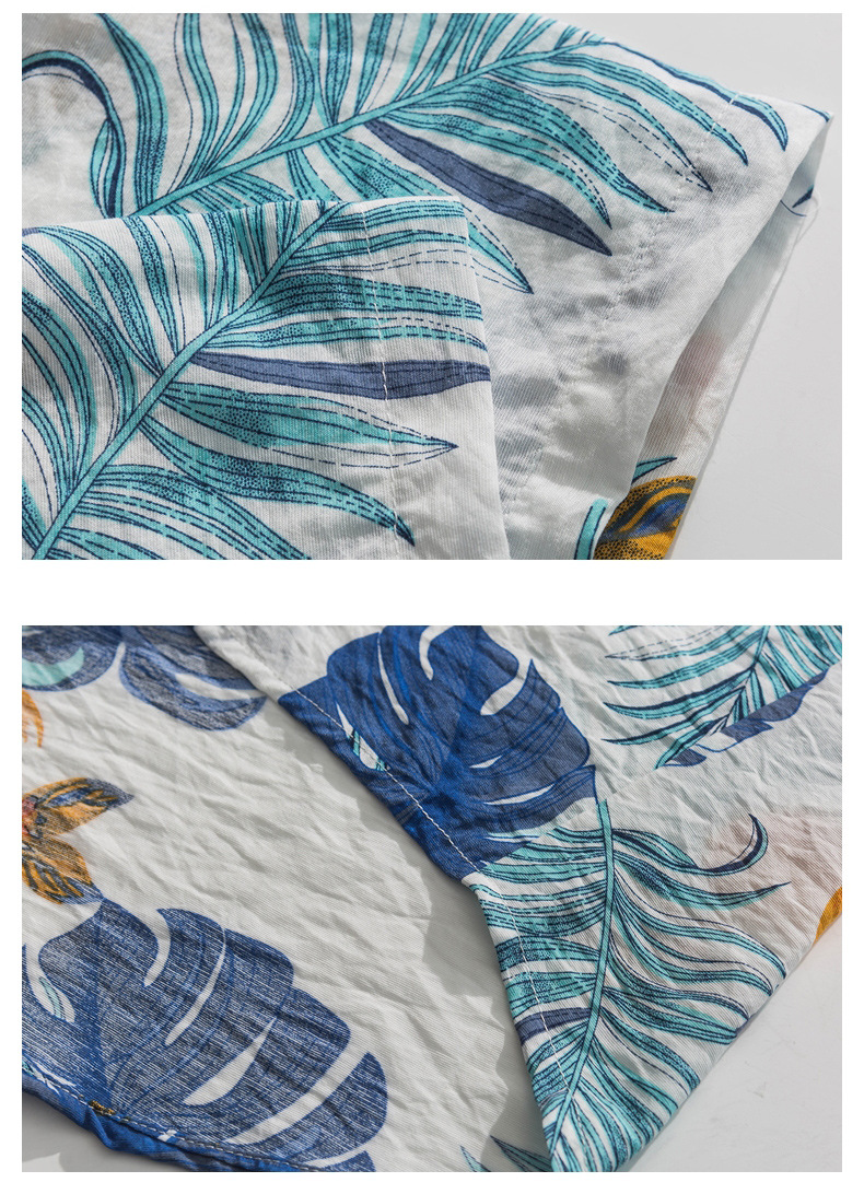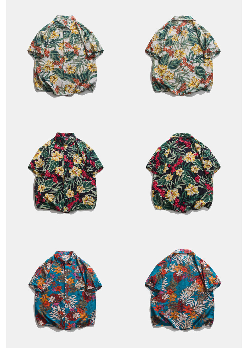 2023 여름 반팔 셔츠 남성용 컬러 하와이 비치 스타일 프린트 셔츠 만능 아이스 실크 셔츠스토어 가기