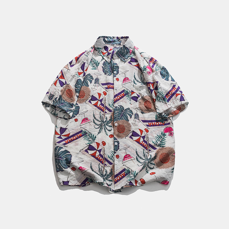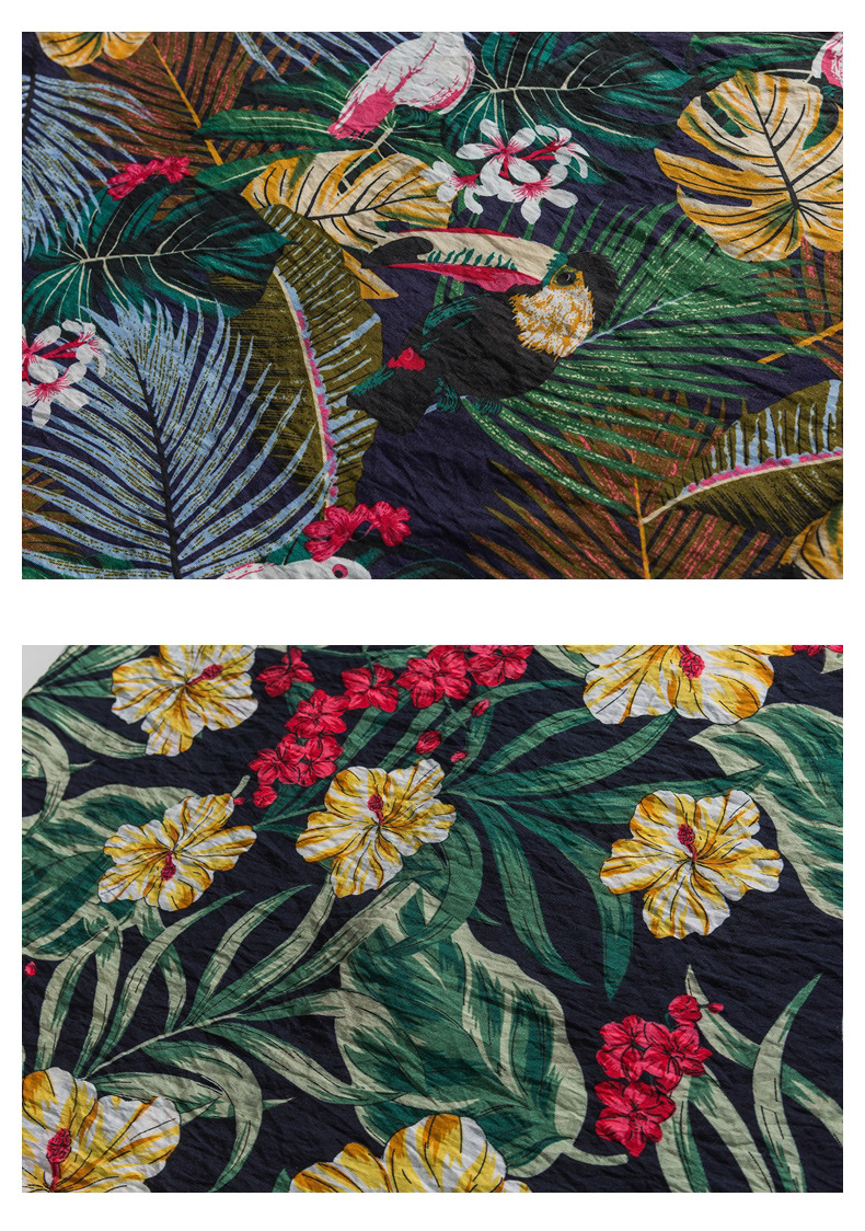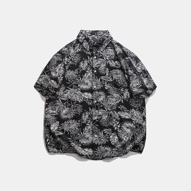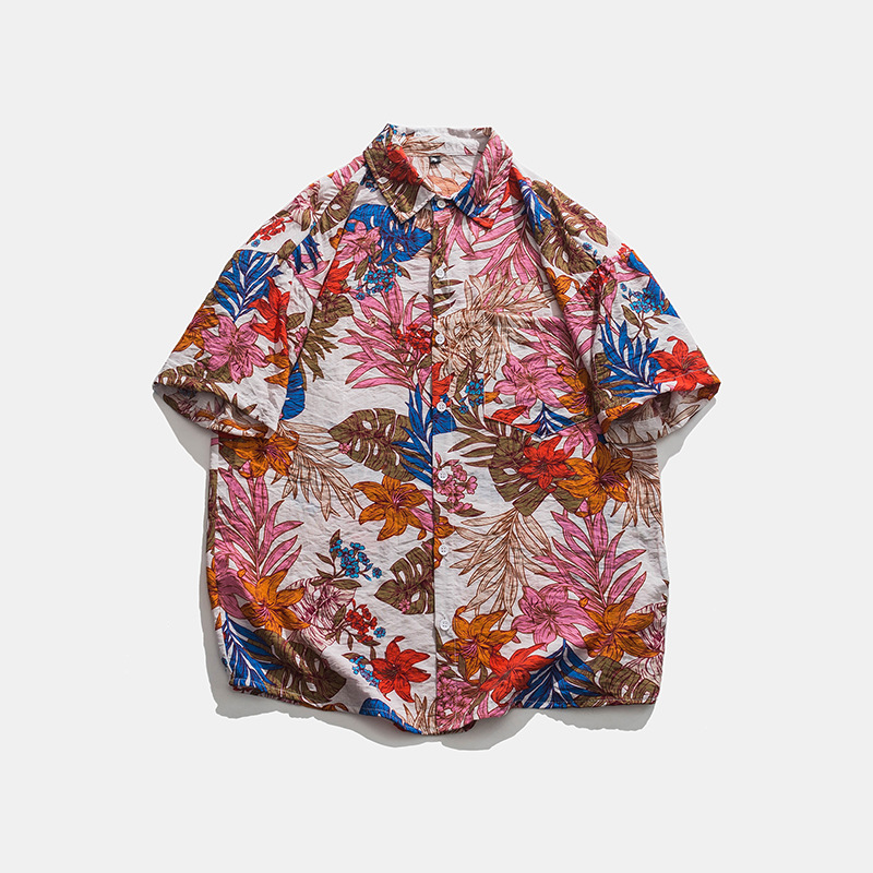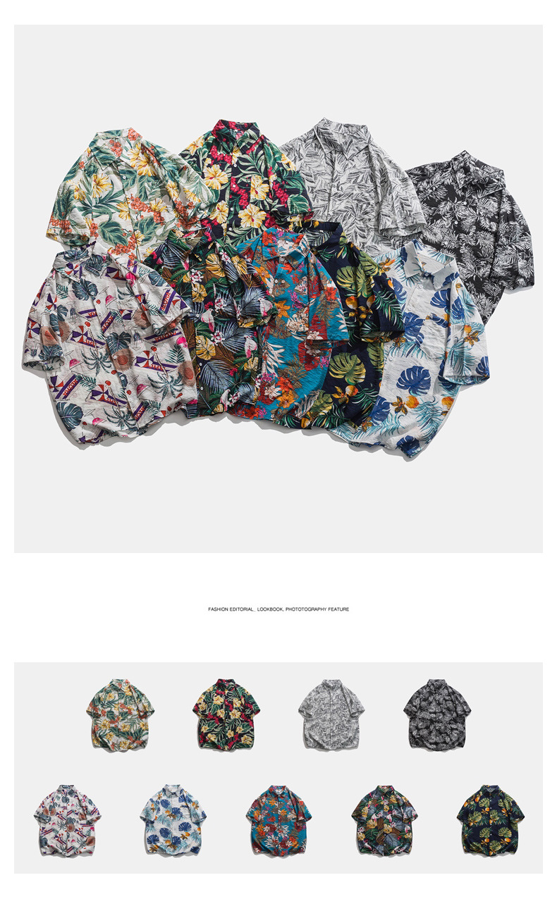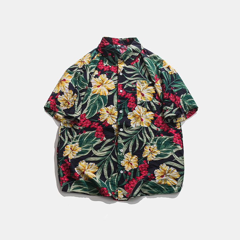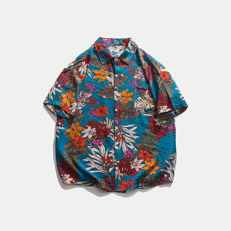 2023 여름 반팔 셔츠 남성용 컬러 하와이 비치 스타일 프린트 셔츠 만능 아이스 실크 셔츠스토어 가기