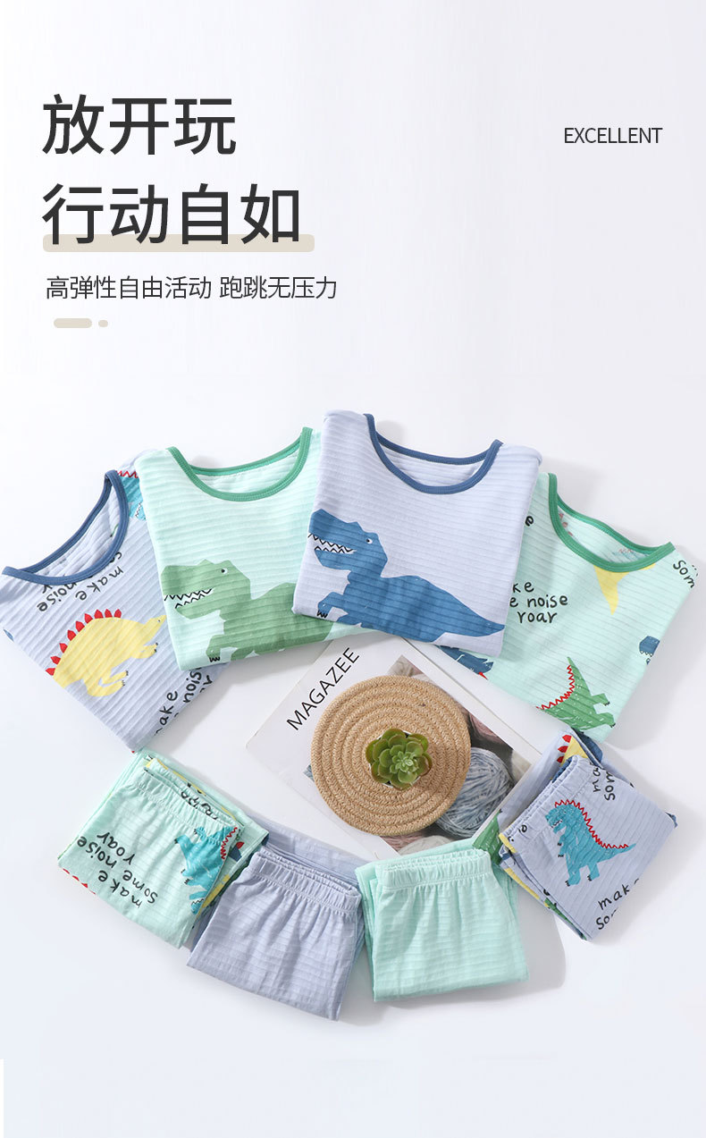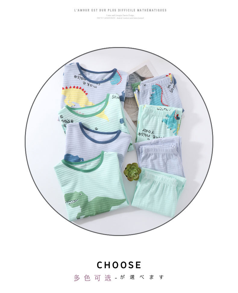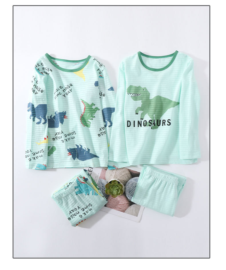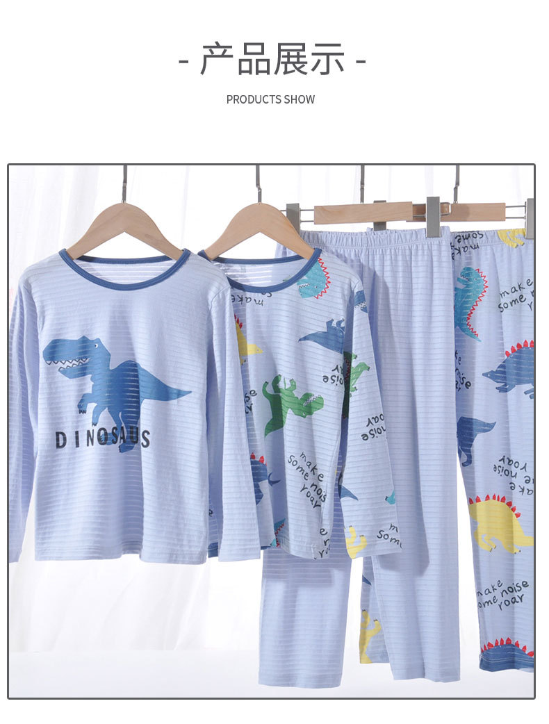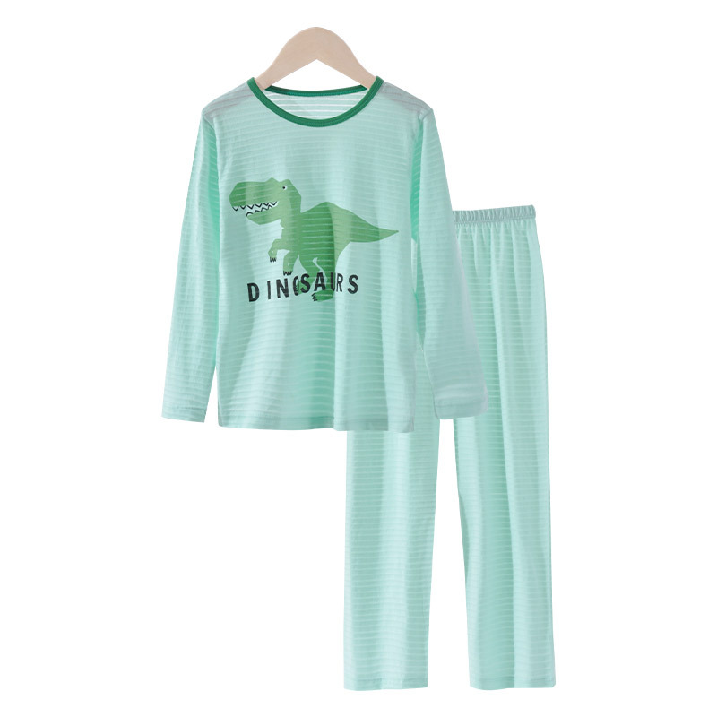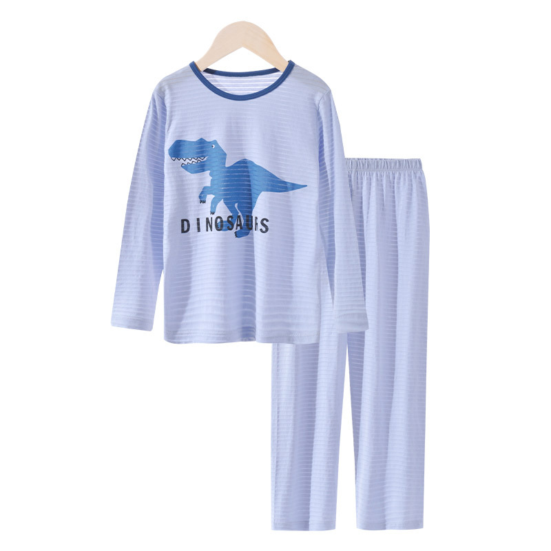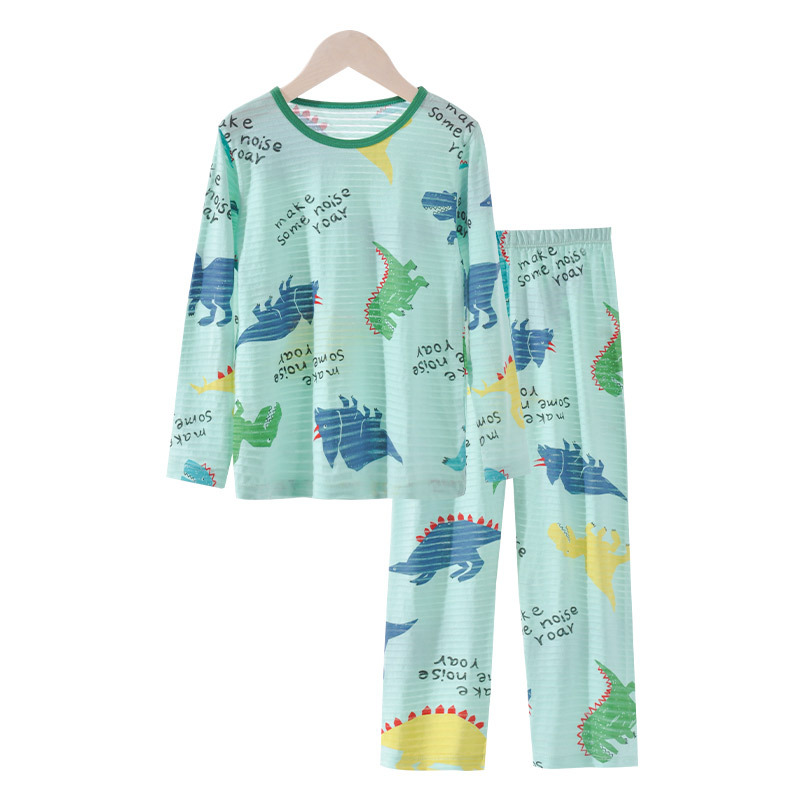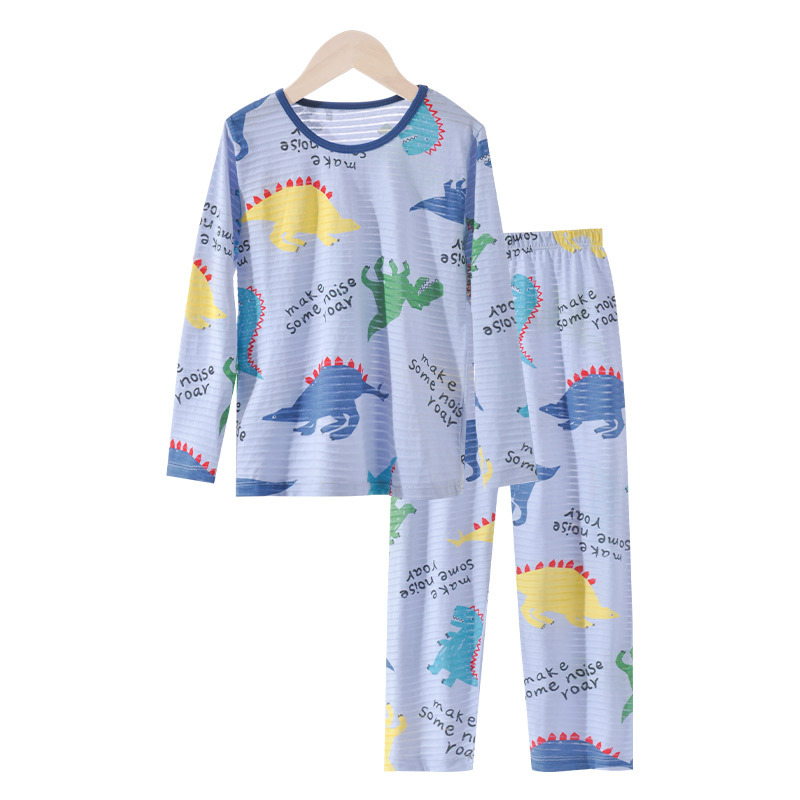 어린이 여름 얇은 가정 의류 세트 대나무 면화 정장 소년 잠옷 세트 공룡 워터 마크 긴팔 바지