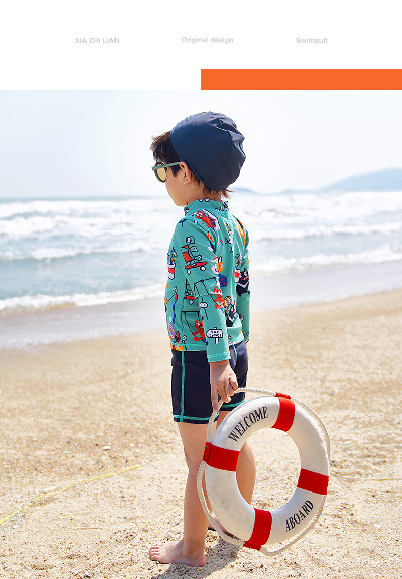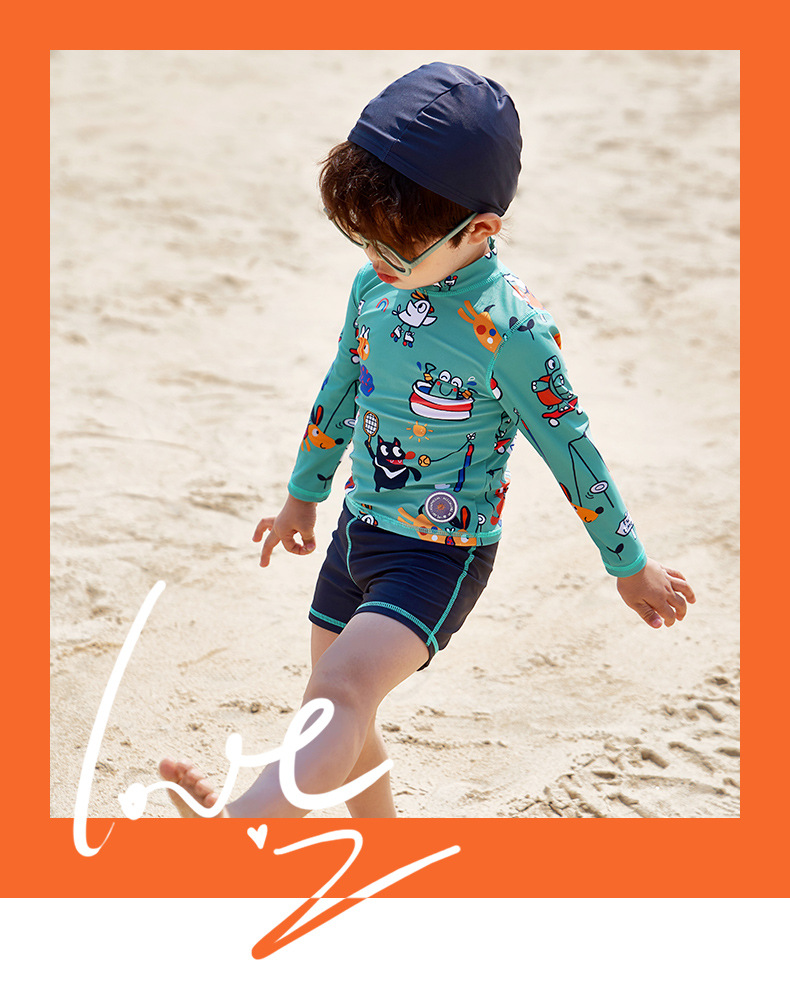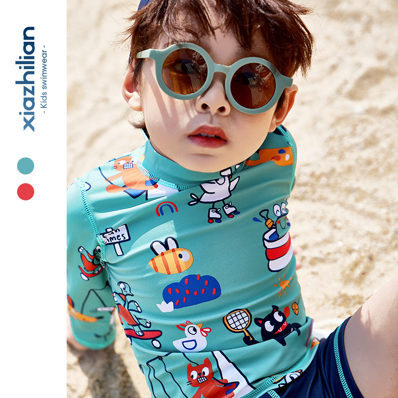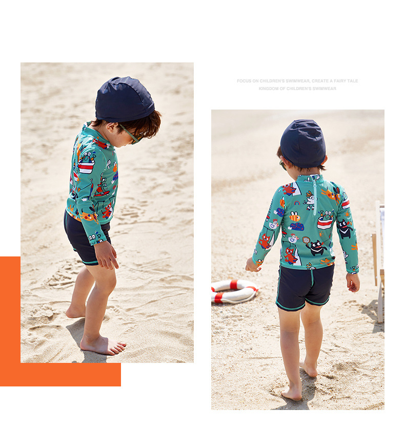 한국 어린이 수영복 소년 분할 귀여운 만화 해변 태양 보호 빠른 건조 유아 어린이 아기 수영복 남자의 유행