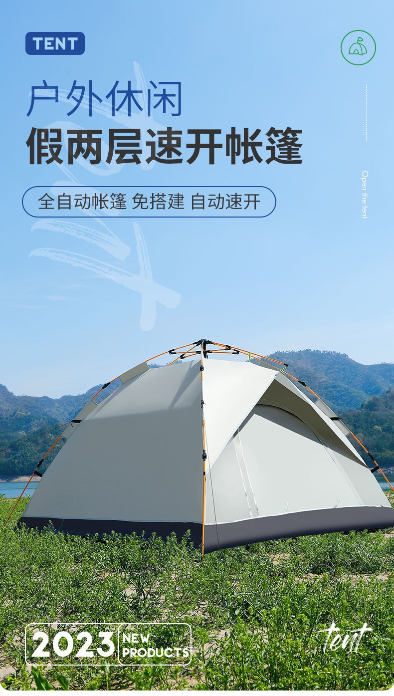 3-4 인조 더블 레이어 텐트 빠른 오픈 캠핑 비치 텐트 야외 태양 보호 190T 폴리 에스터 완전 자동 텐트