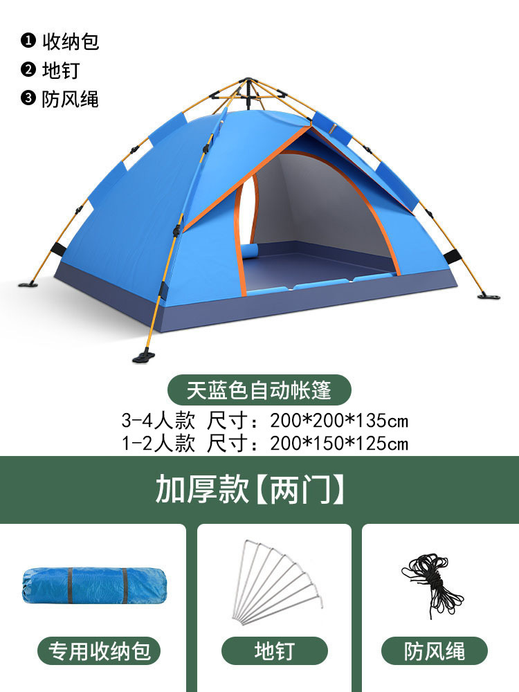 3-4 인조 더블 레이어 텐트 빠른 오픈 캠핑 비치 텐트 야외 태양 보호 190T 폴리 에스터 완전 자동 텐트스토어 가기