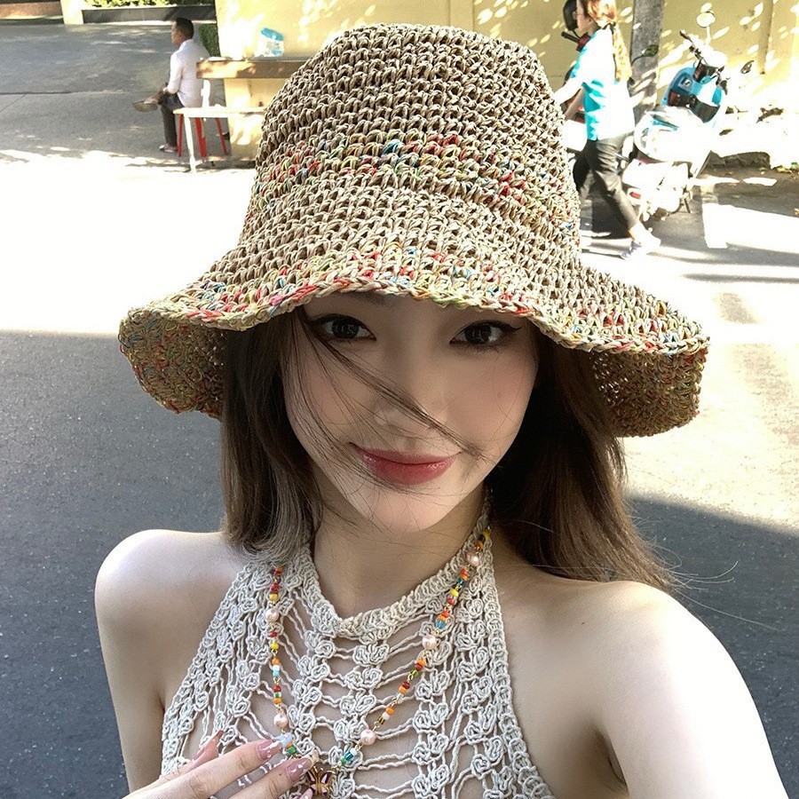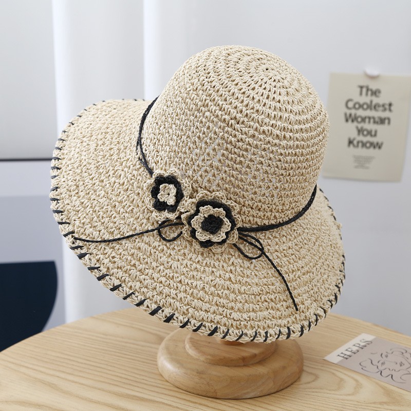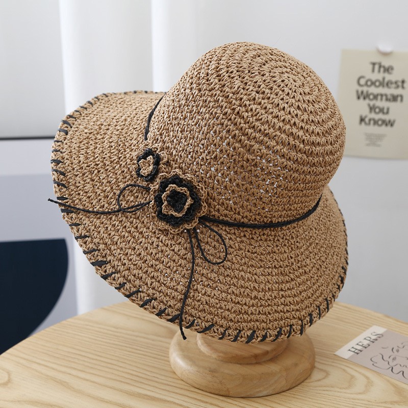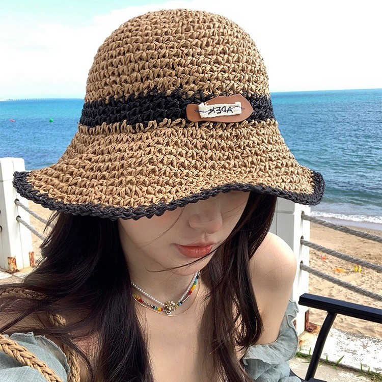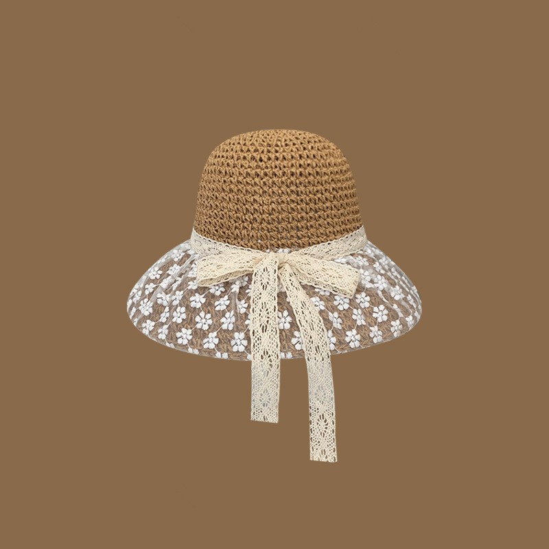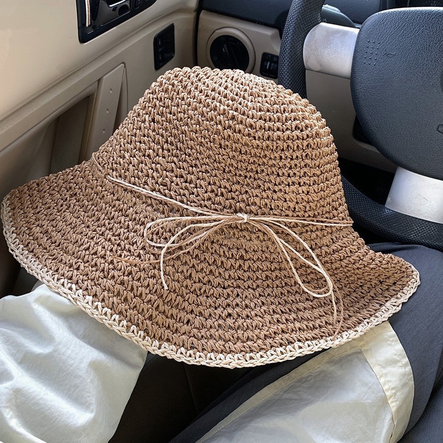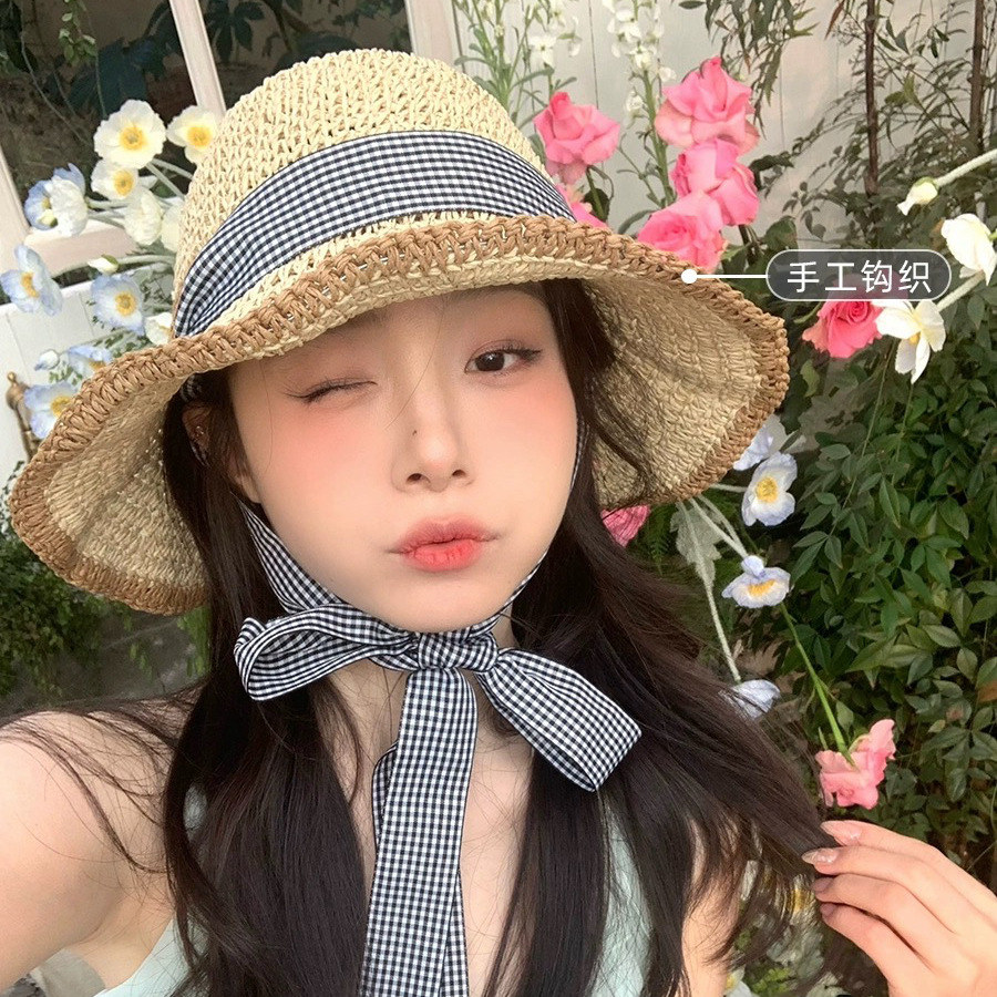 한국 수제 밀짚 모자 여자의 일본 스타일 신선한 태양 모자 봄 여름 여행 자외선 차단제 모자 달콤한 모리 스타일 모든 매치스토어 가기