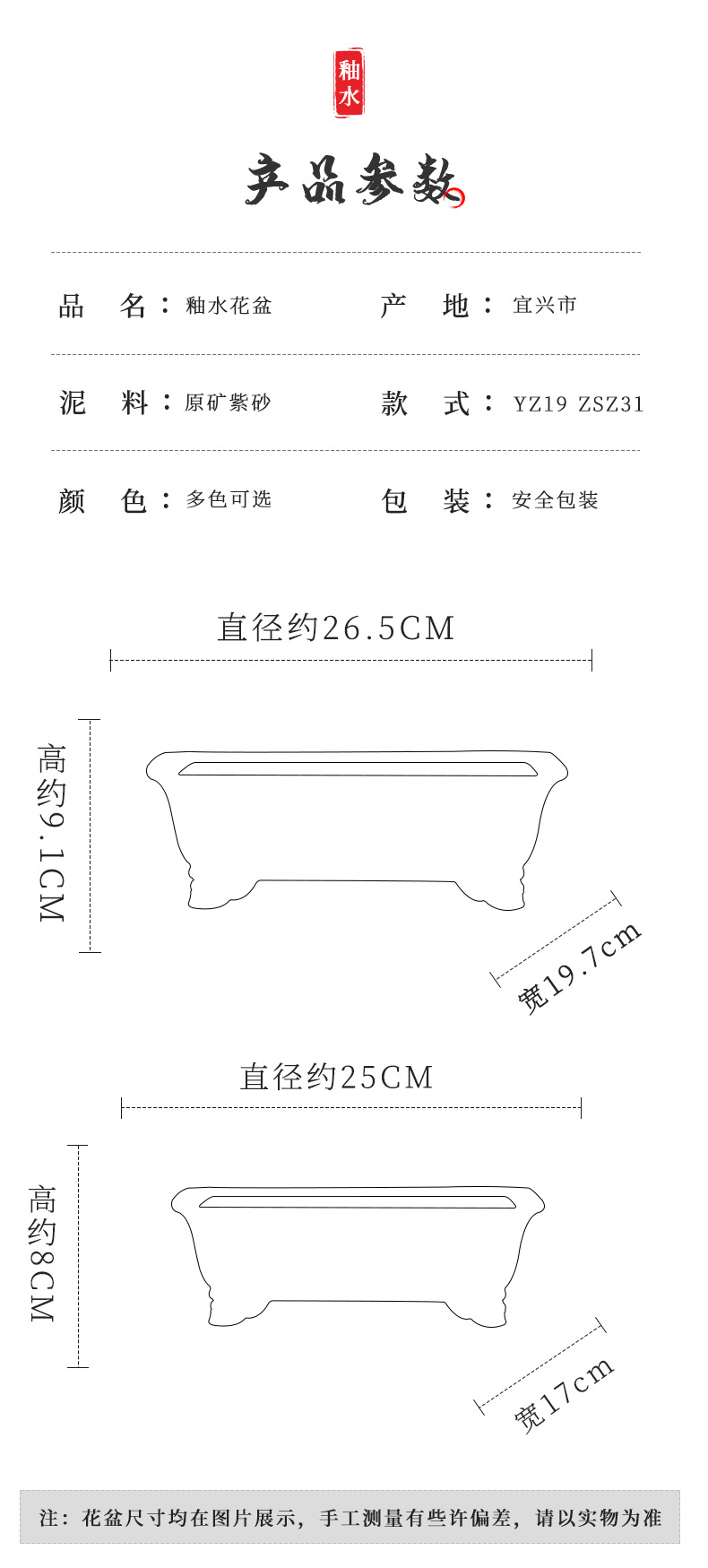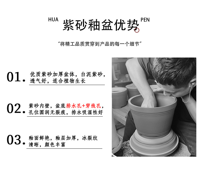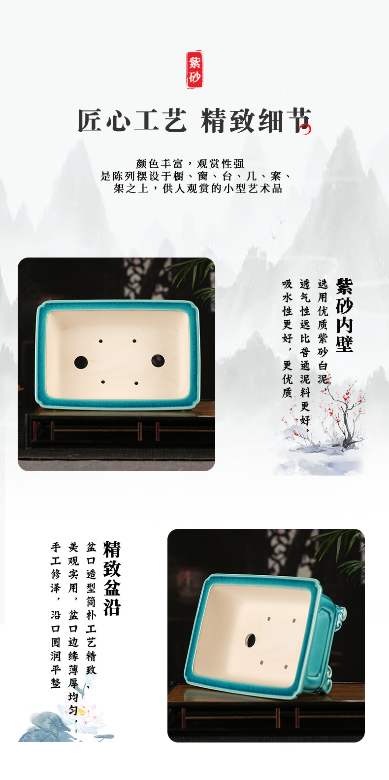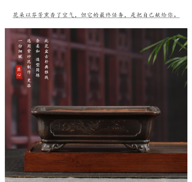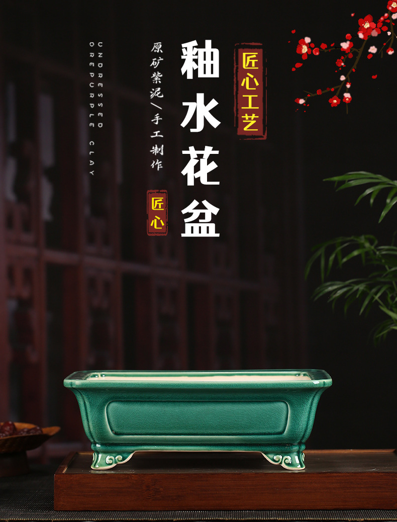 장 Zhicheng 화분 보라색 모래 분재 냄비 공장 도매 직접 보라색 모래 화분 직사각형 유약 물 화분 YZ19스토어 가기