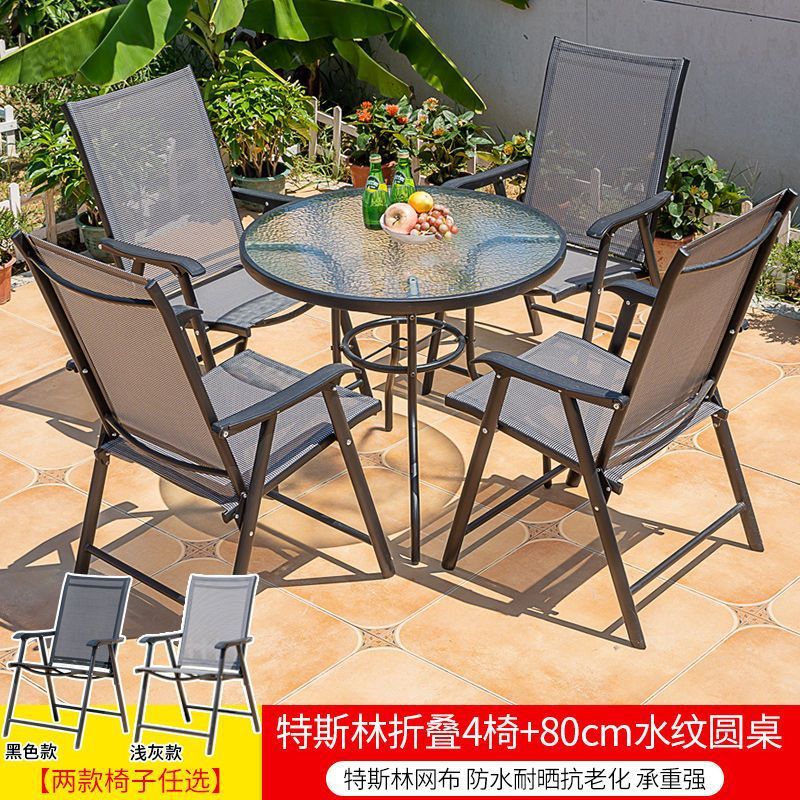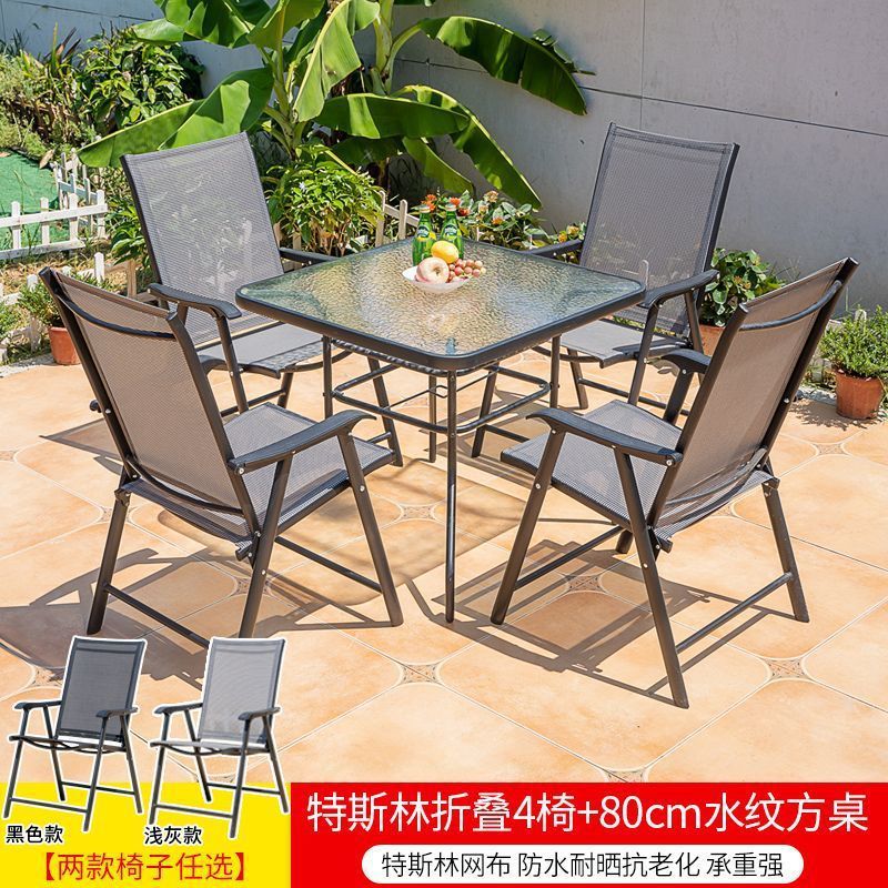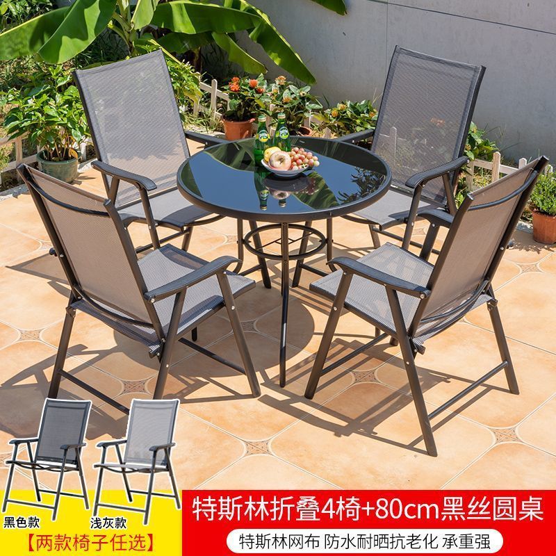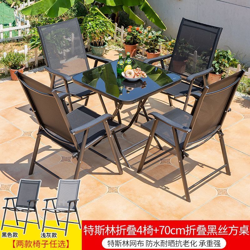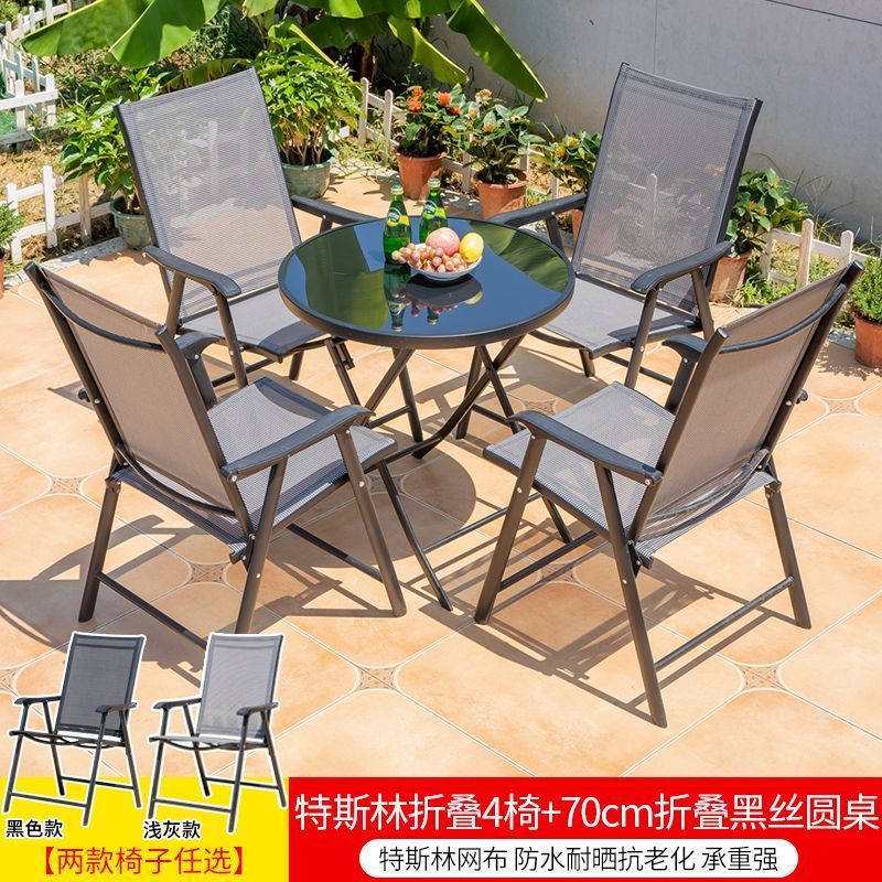 야외 레저 테이블과 의자 조합 발코니 야외 야외 야외 정원 우유 차 가게 간단한 스톨 접이식 테이블 등받이 의자스토어 가기