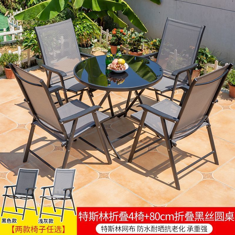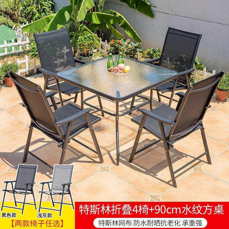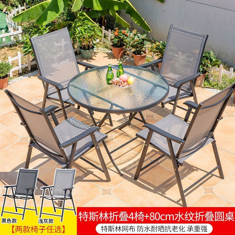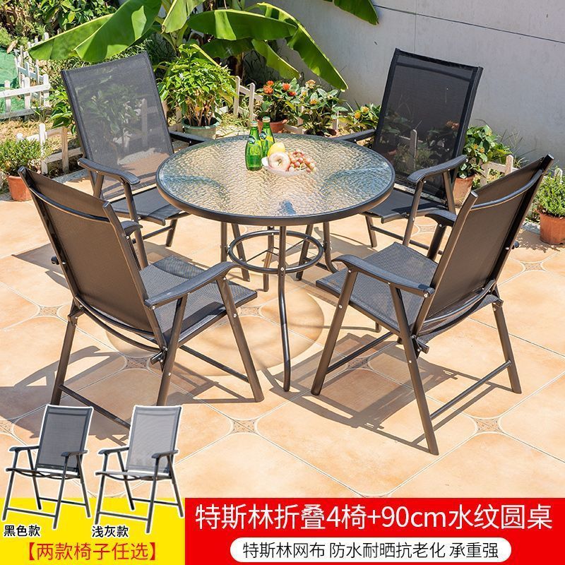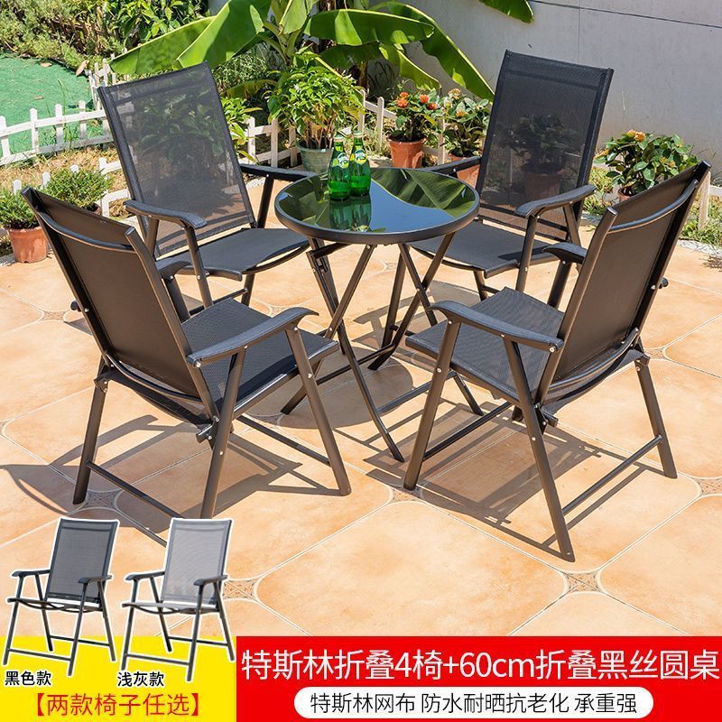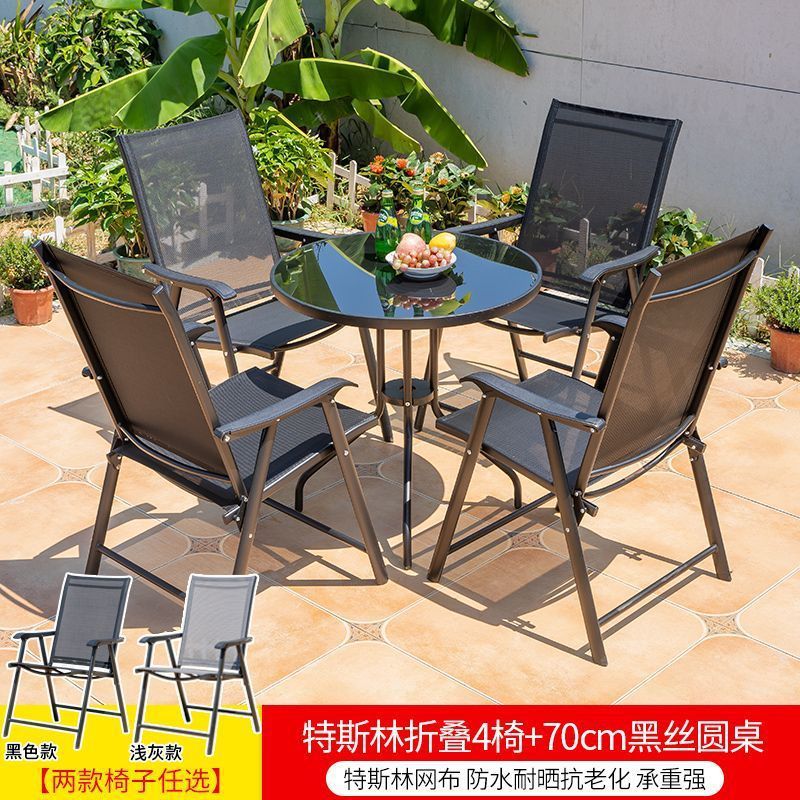 야외 레저 테이블과 의자 조합 발코니 야외 야외 야외 정원 우유 차 가게 간단한 스톨 접이식 테이블 등받이 의자스토어 가기