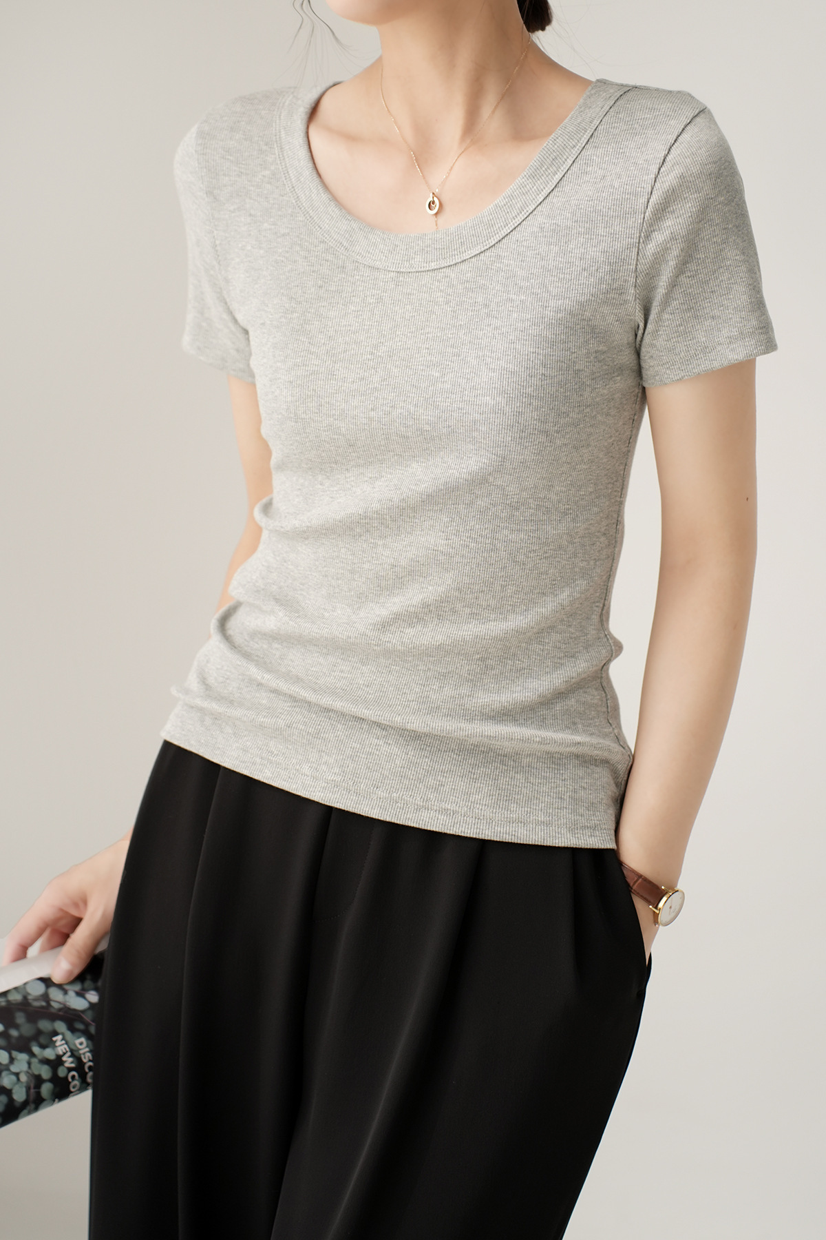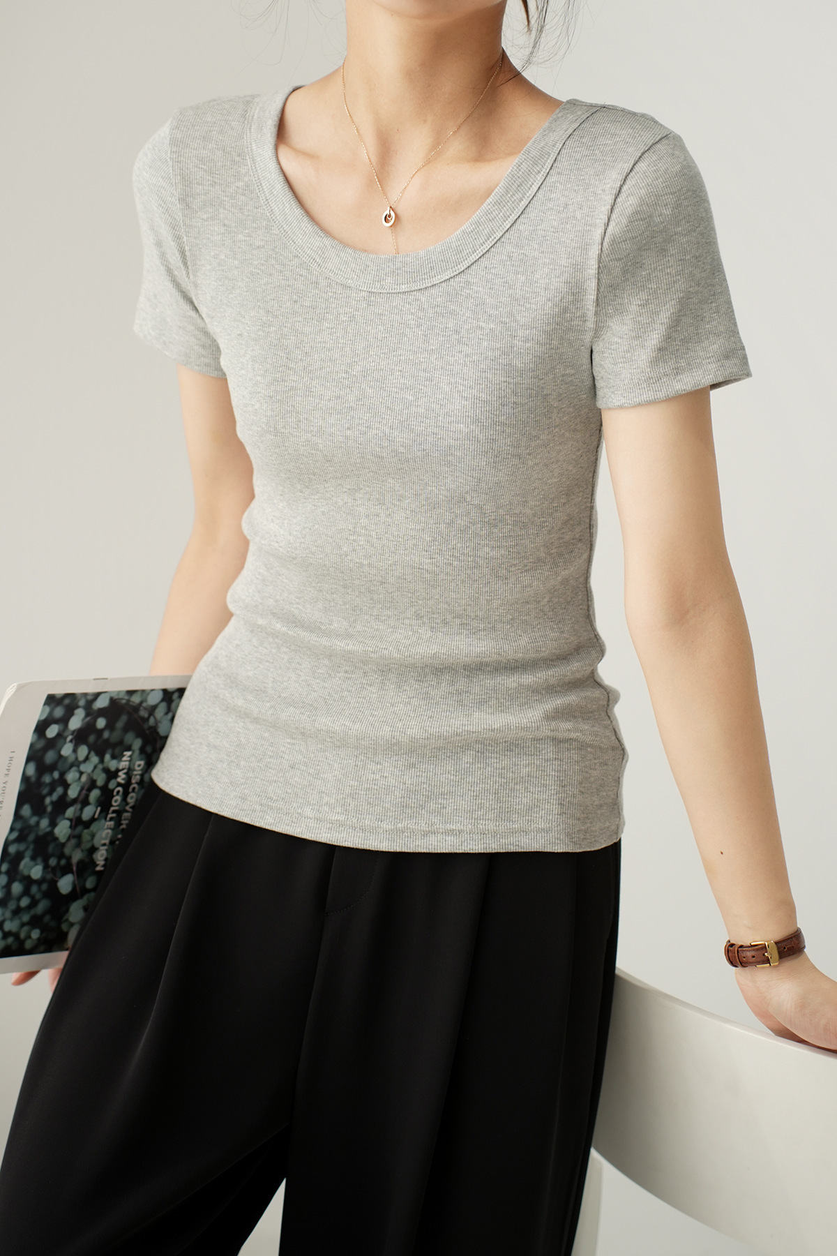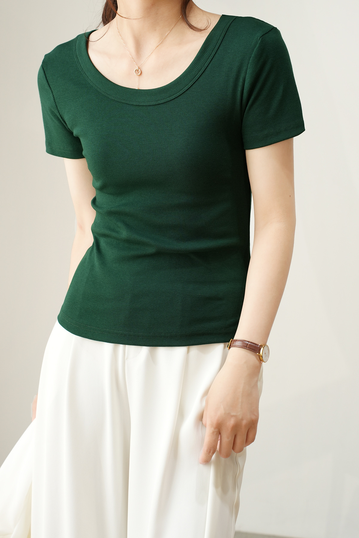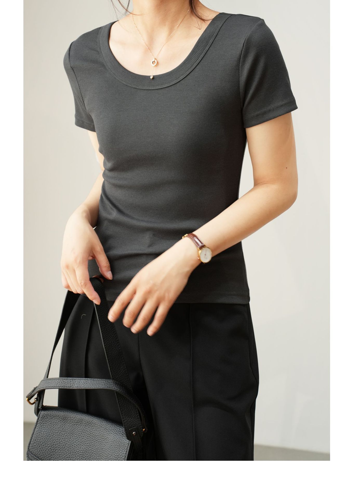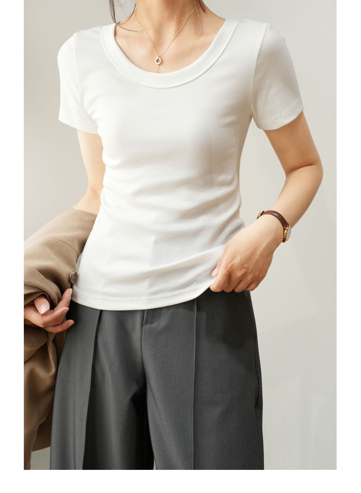 엄선된 고급 면 소재 여성용 반팔 티셔츠 2026 여름 신상 슬림핏 라운드넥 다용도 티셔츠 상의