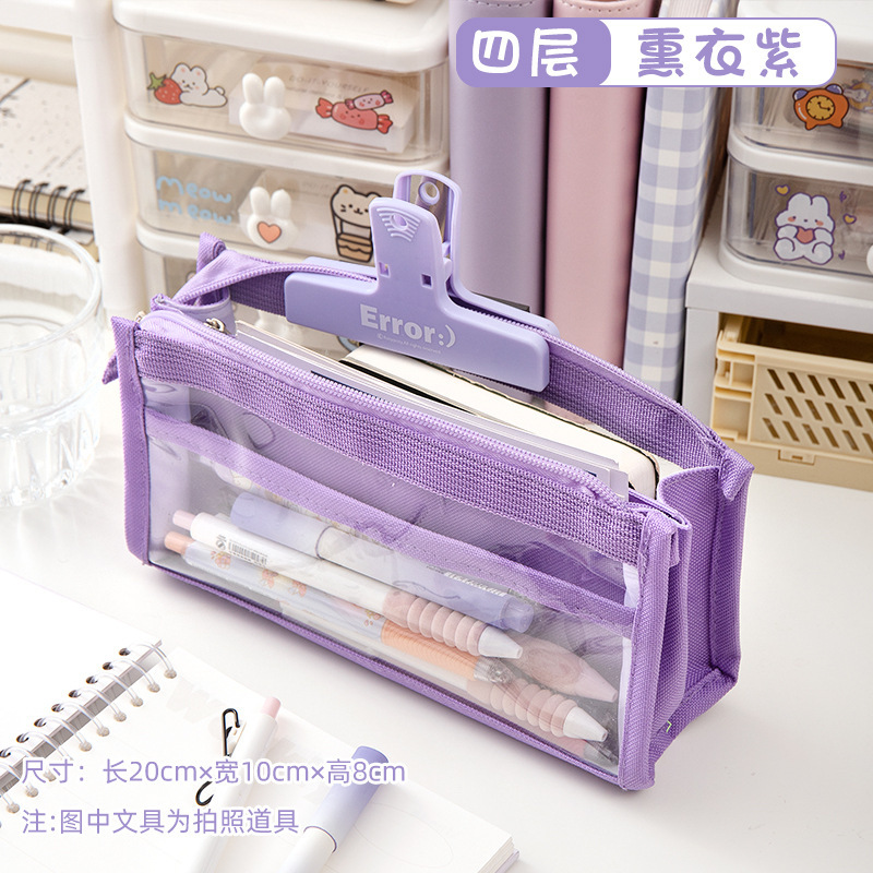 여자 초등학생을 위한 대용량 일본식 투명 필통 필통 여아 편지지 상자를 위한 고가의 간단한 편지지 가방