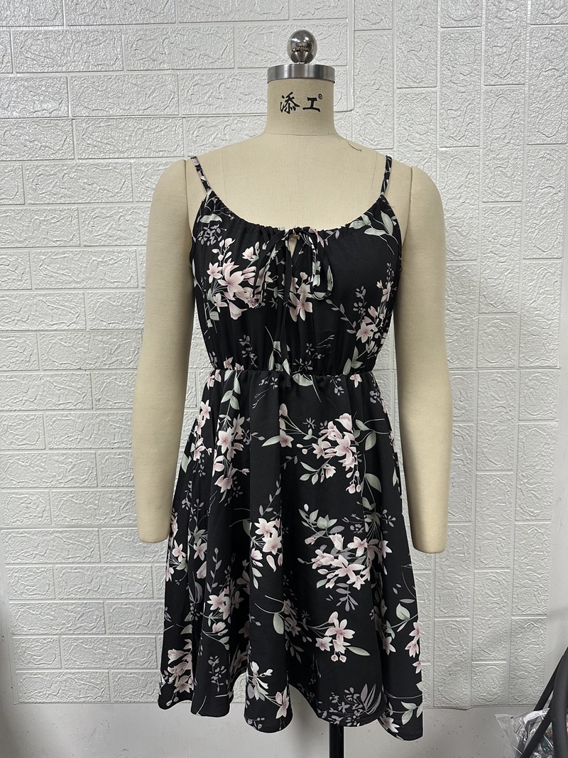 2026 유럽 및 미국 아마존 여름 신상 우아한 민소매 원피스 풀오버 프린트 신축성 있는 허리 끈 짧은 치마 여성용스토어 가기