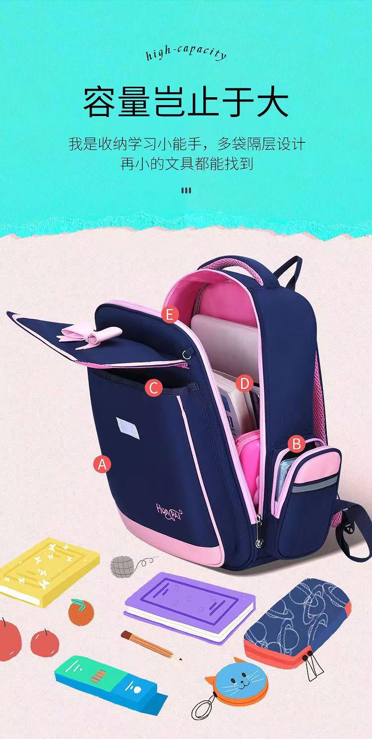 초등학생용 나비넥타이 책가방, 1~3~6학년 어린이 부담을 줄여주는 척추보호대, 귀엽고 가벼운 여성용 백팩스토어 가기