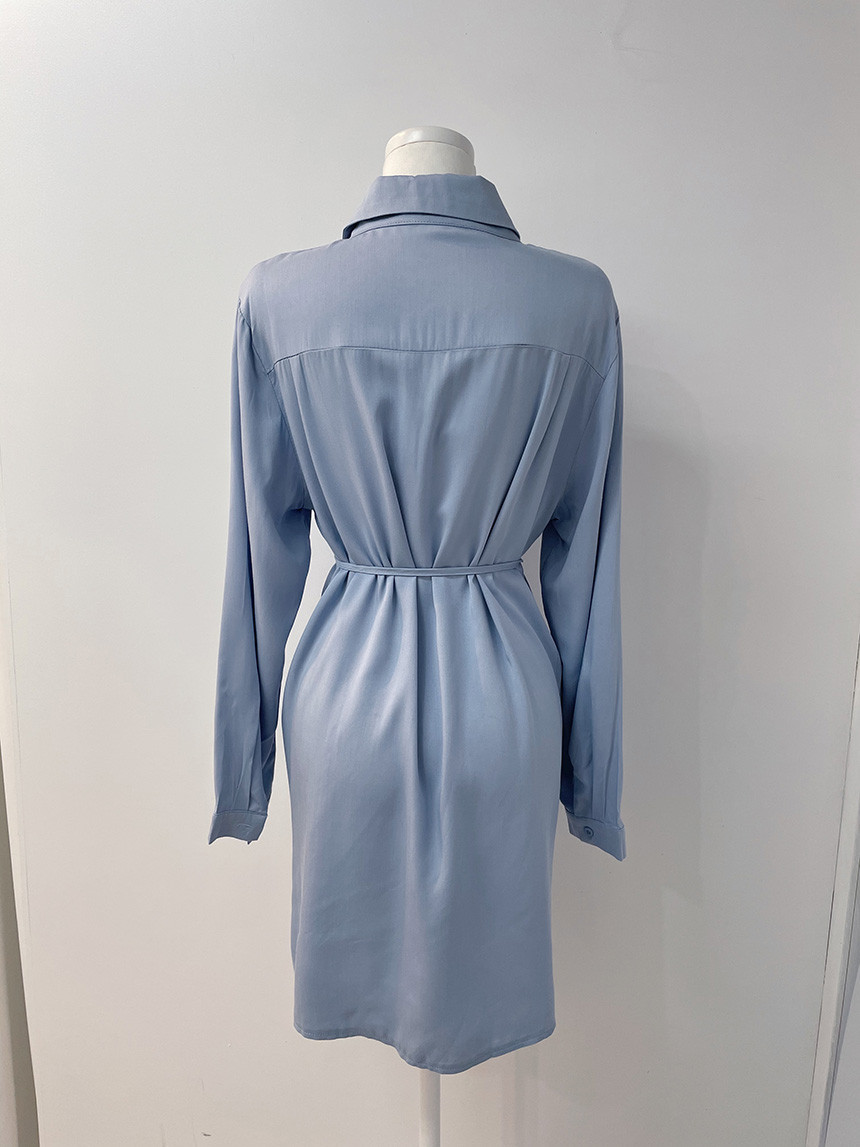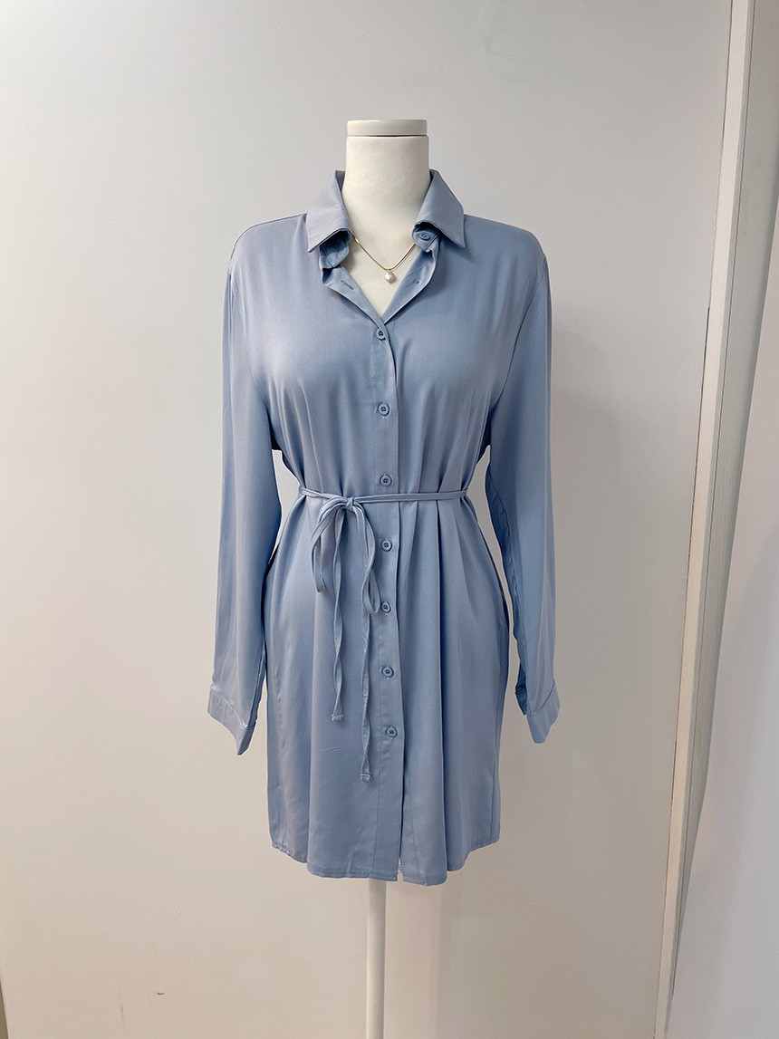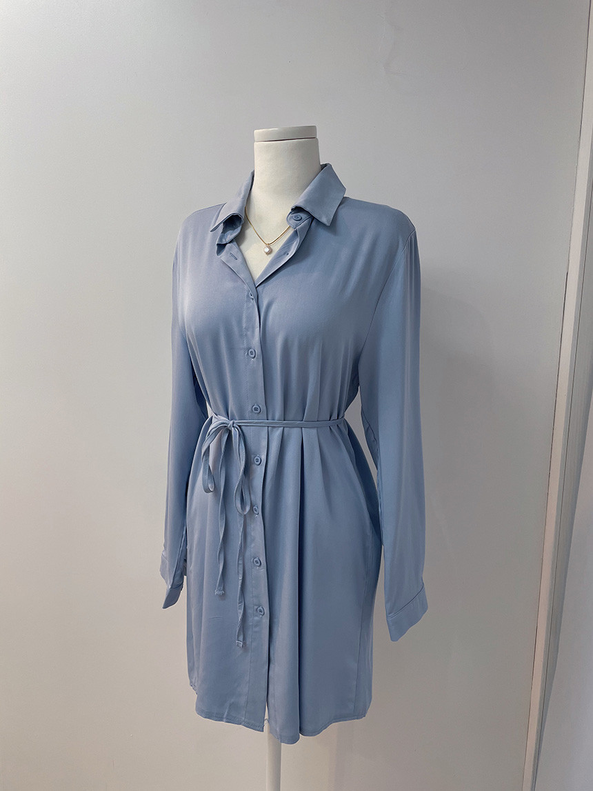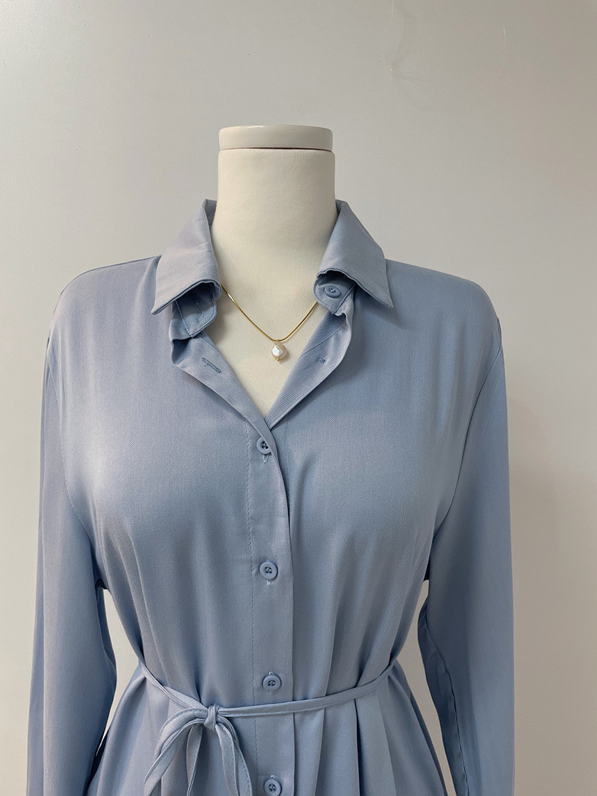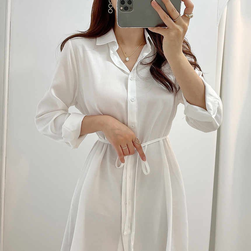 한국 세련된 초가을 프랑스 옷깃 레이스업 패션 셔츠 + 중간 길이 스트랩 원피스 여성용 투피스 세트