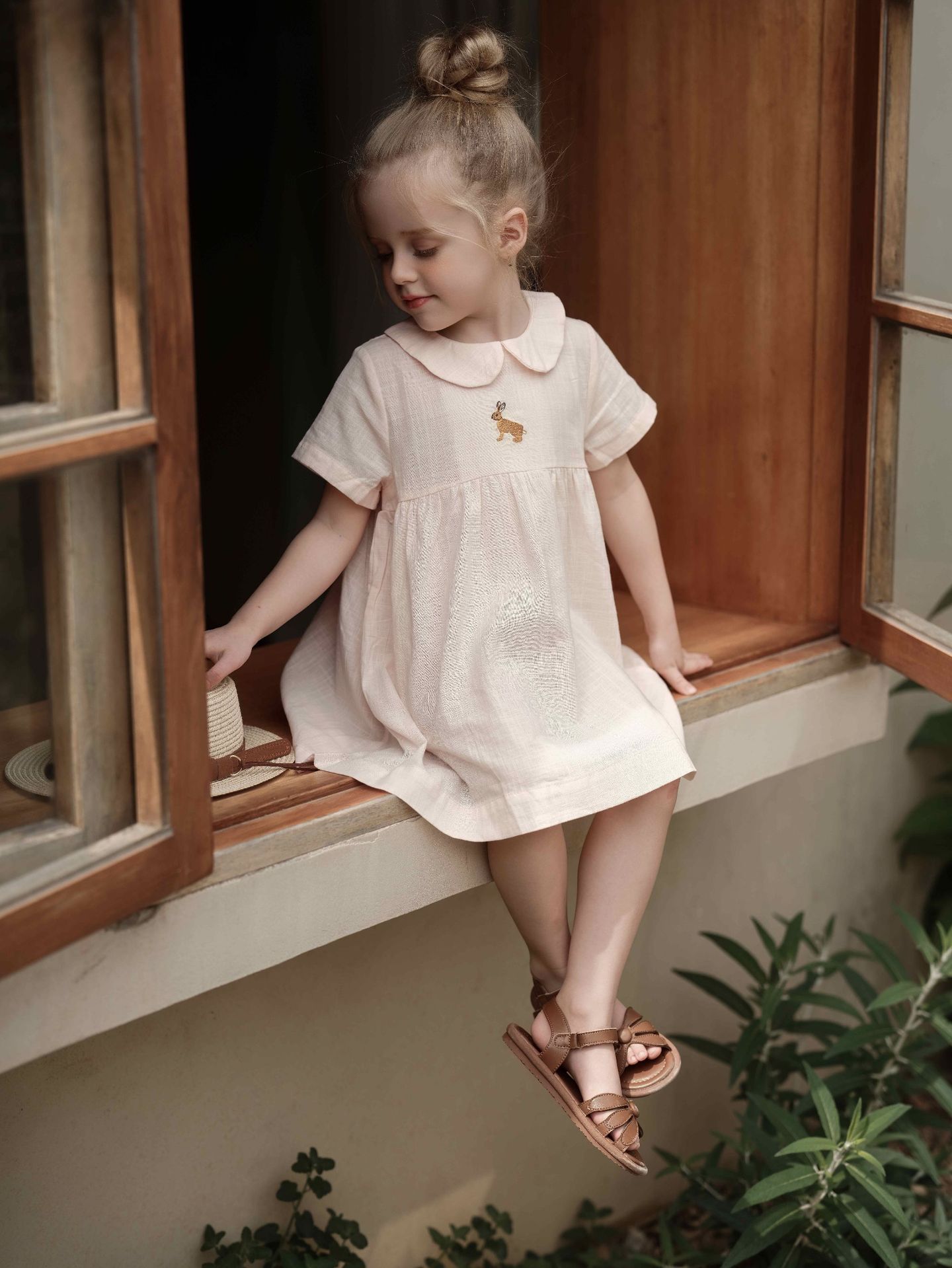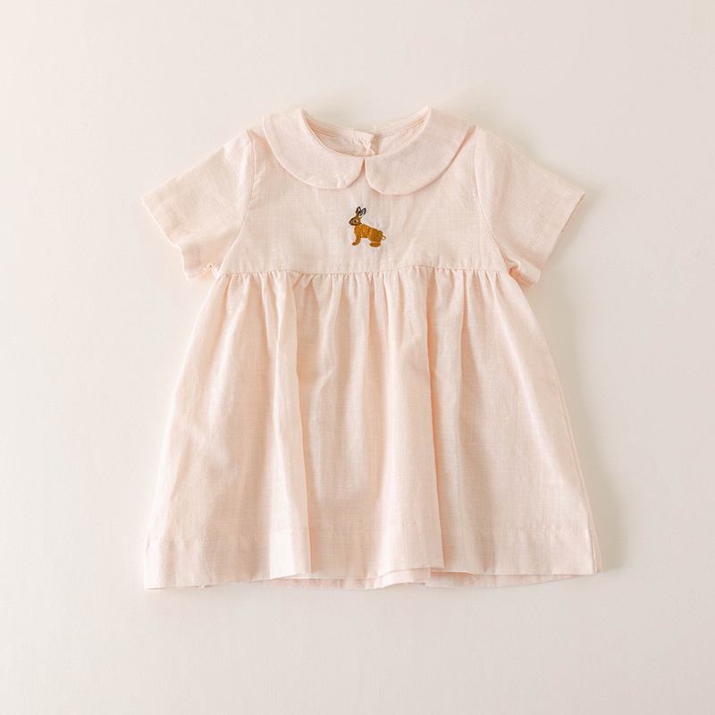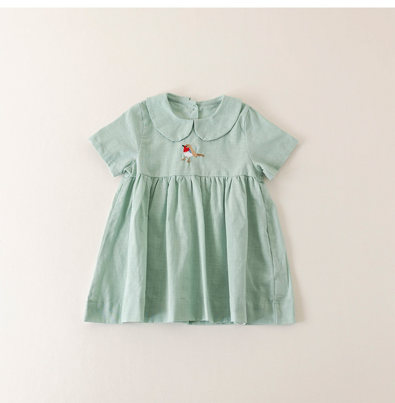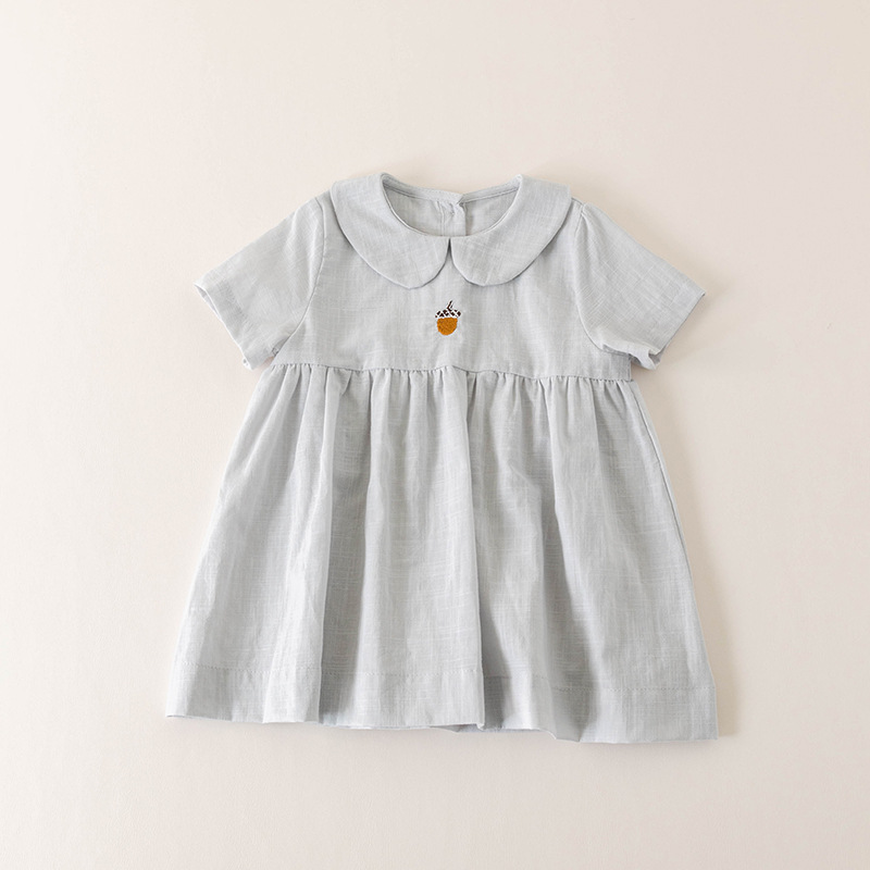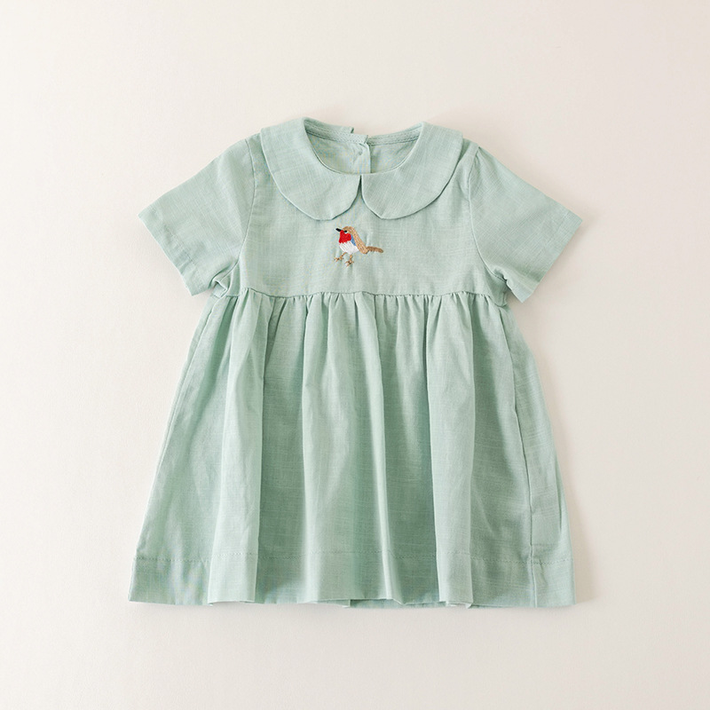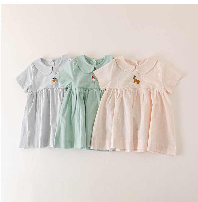 여자의 면 린넨 수제 자수 원피스 세련된 아기 공주 원피스 느슨한 긴 짧은 소매 인형 옷깃 원피스스토어 가기