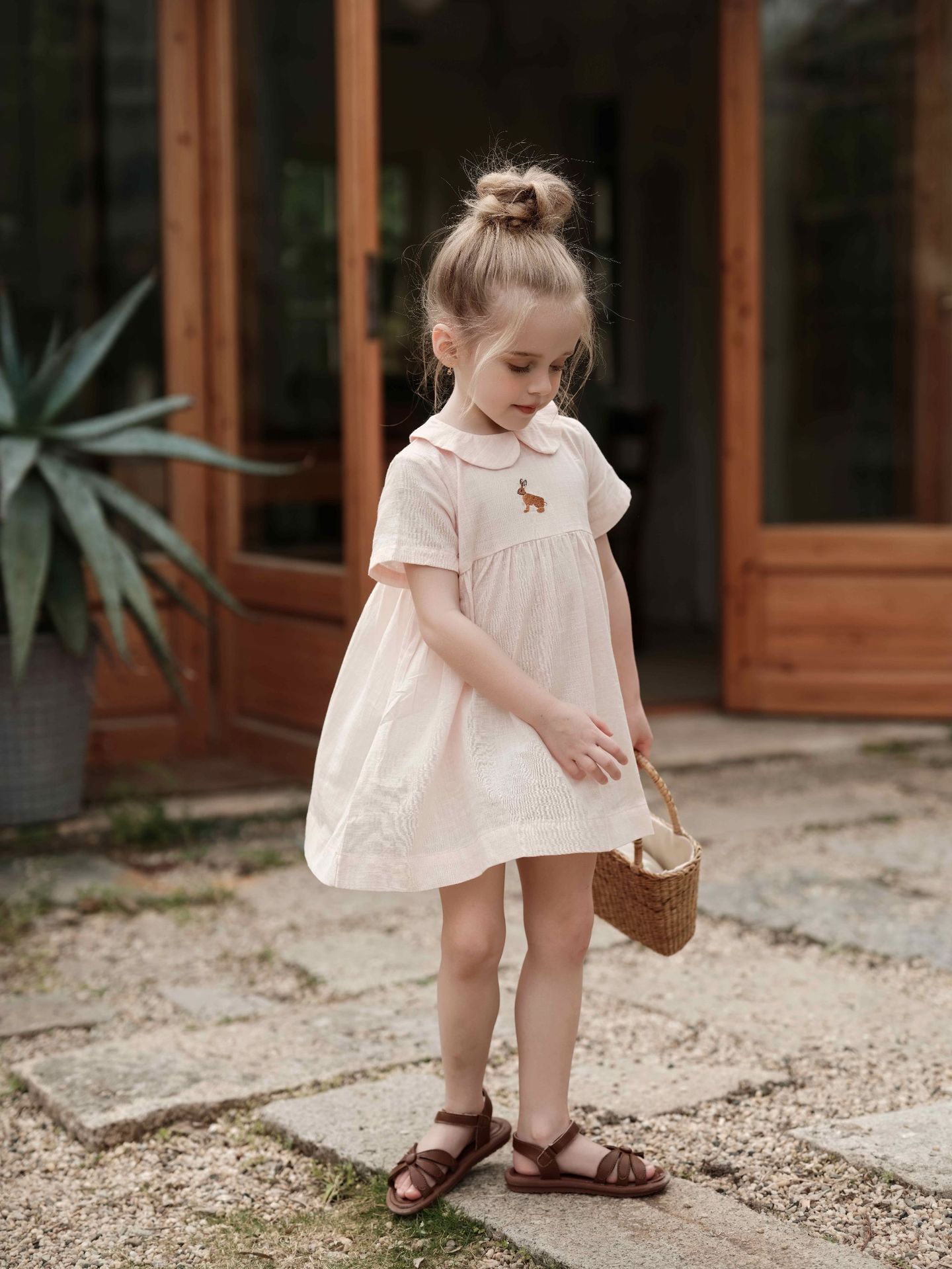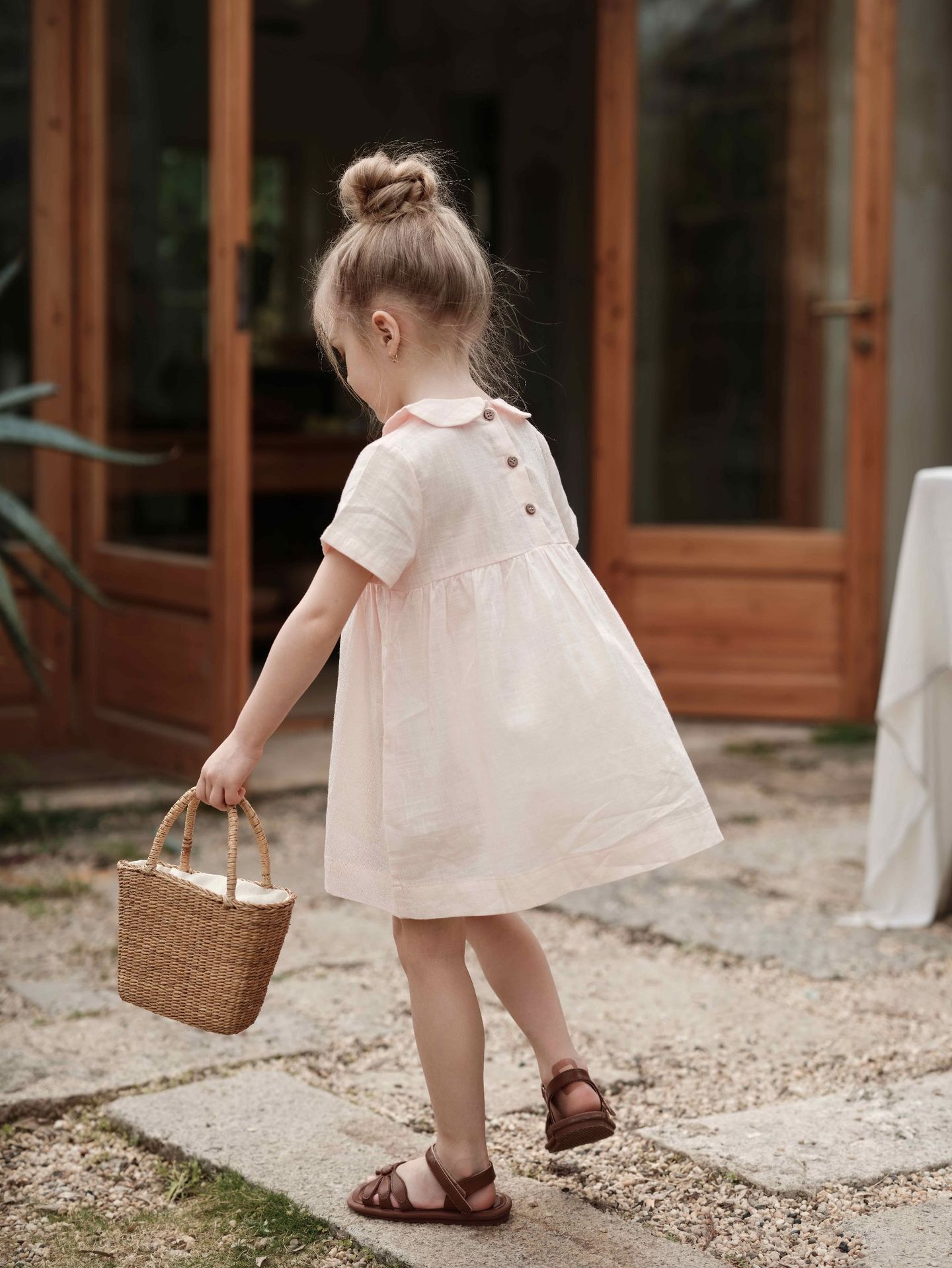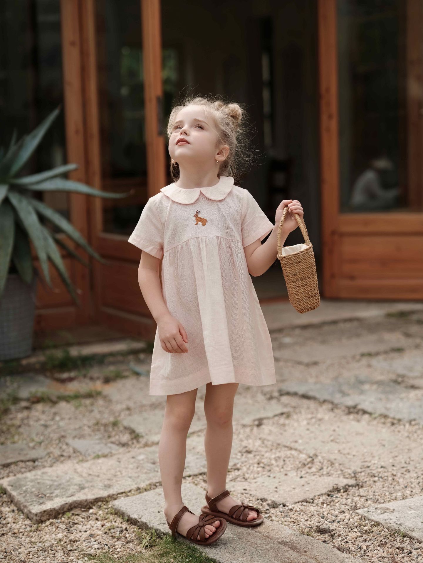 여자의 면 린넨 수제 자수 원피스 세련된 아기 공주 원피스 느슨한 긴 짧은 소매 인형 옷깃 원피스스토어 가기
