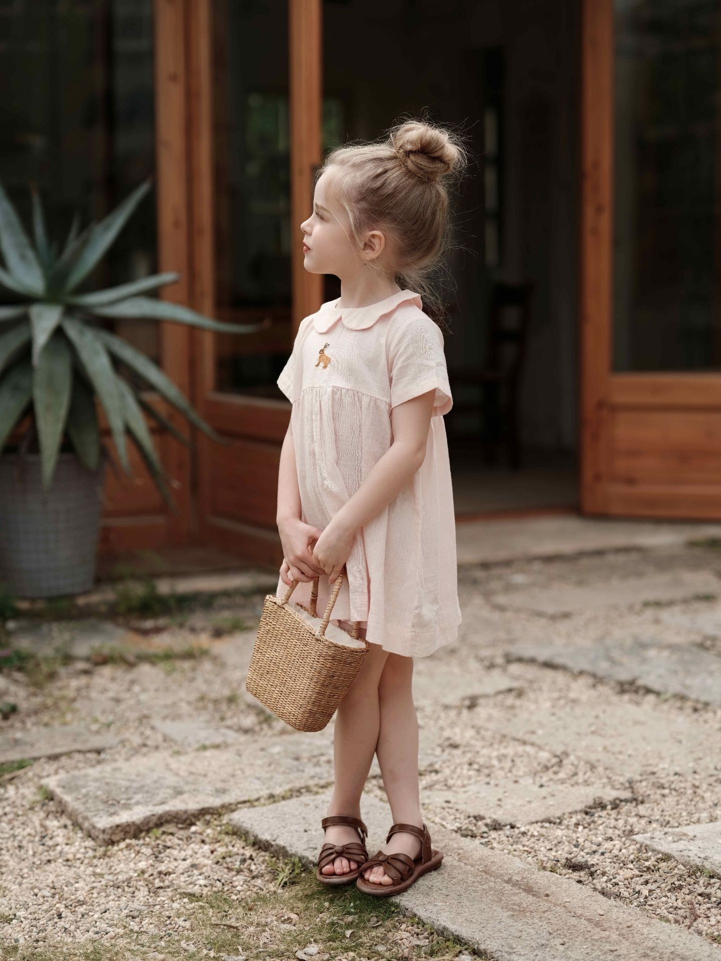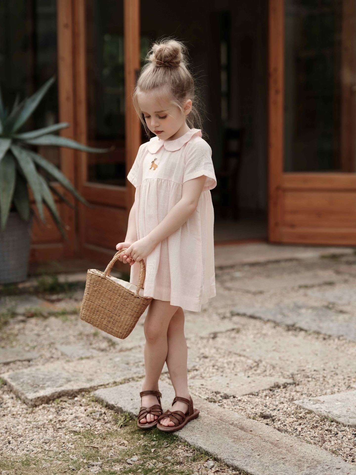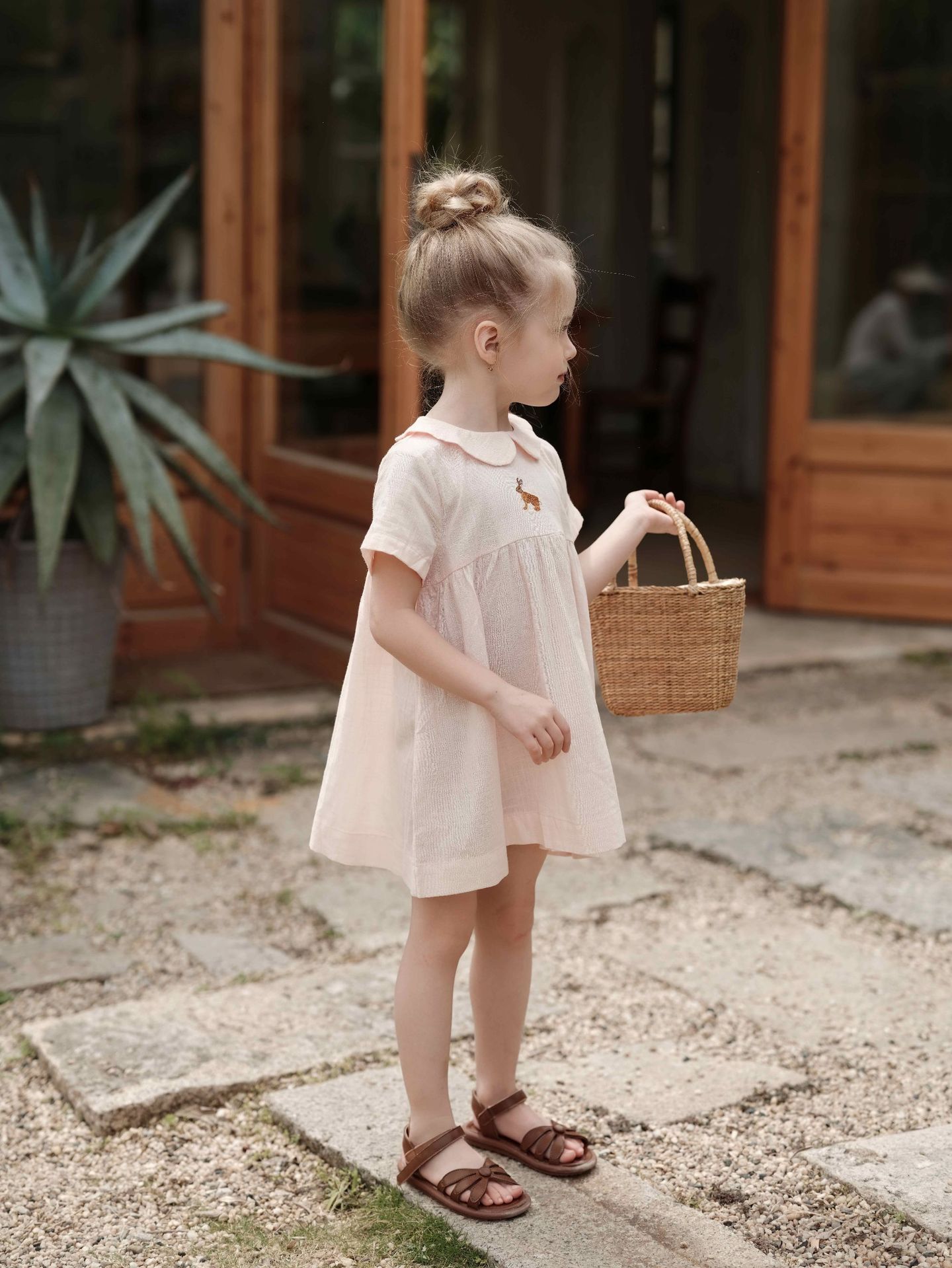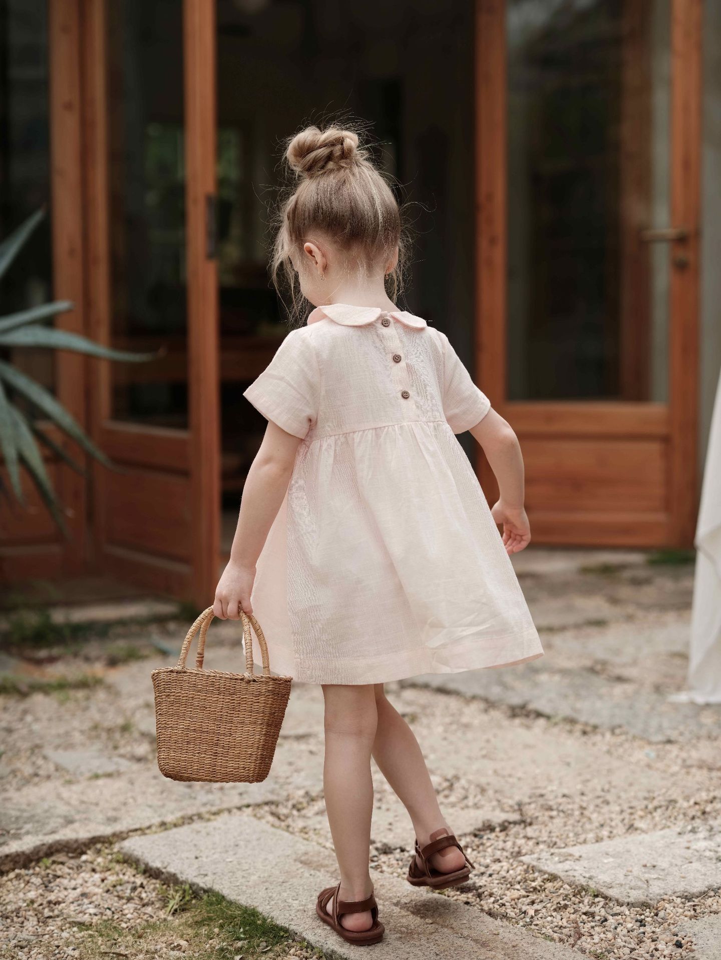 여자의 면 린넨 수제 자수 원피스 세련된 아기 공주 원피스 느슨한 긴 짧은 소매 인형 옷깃 원피스스토어 가기
