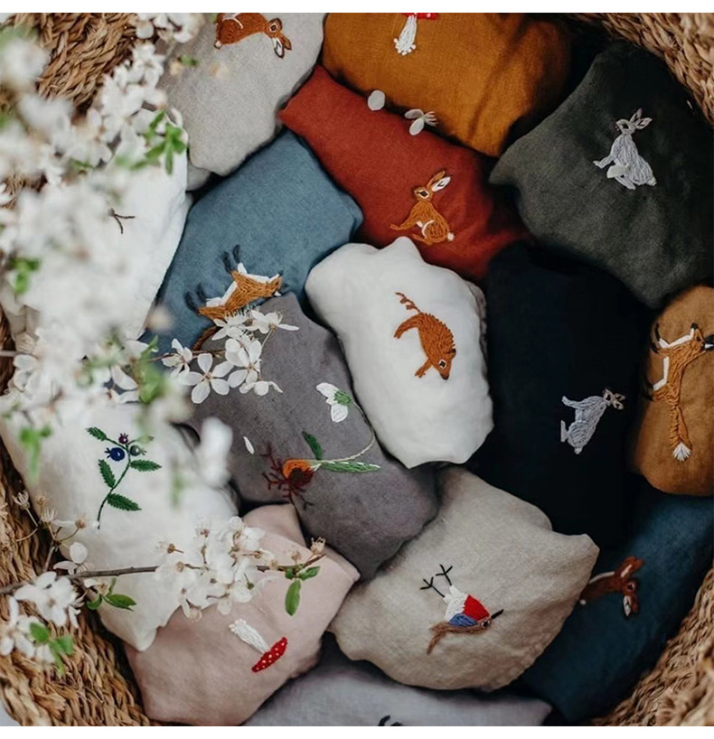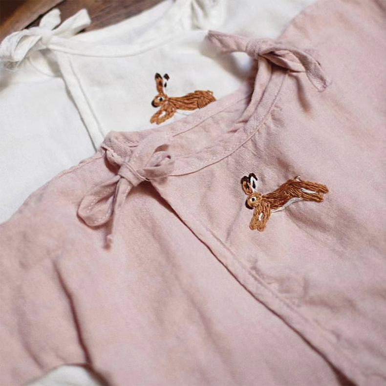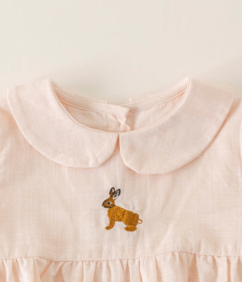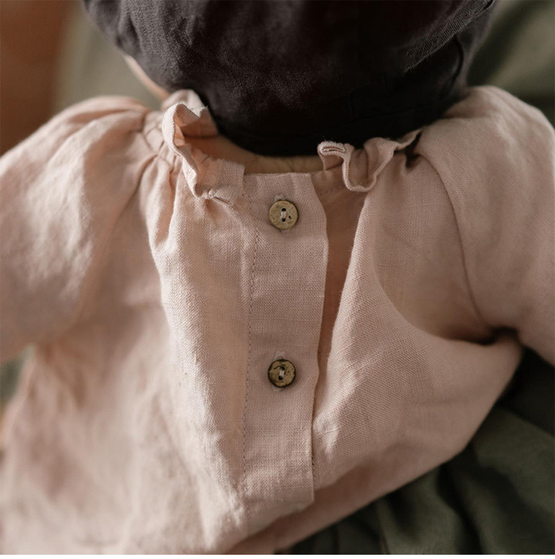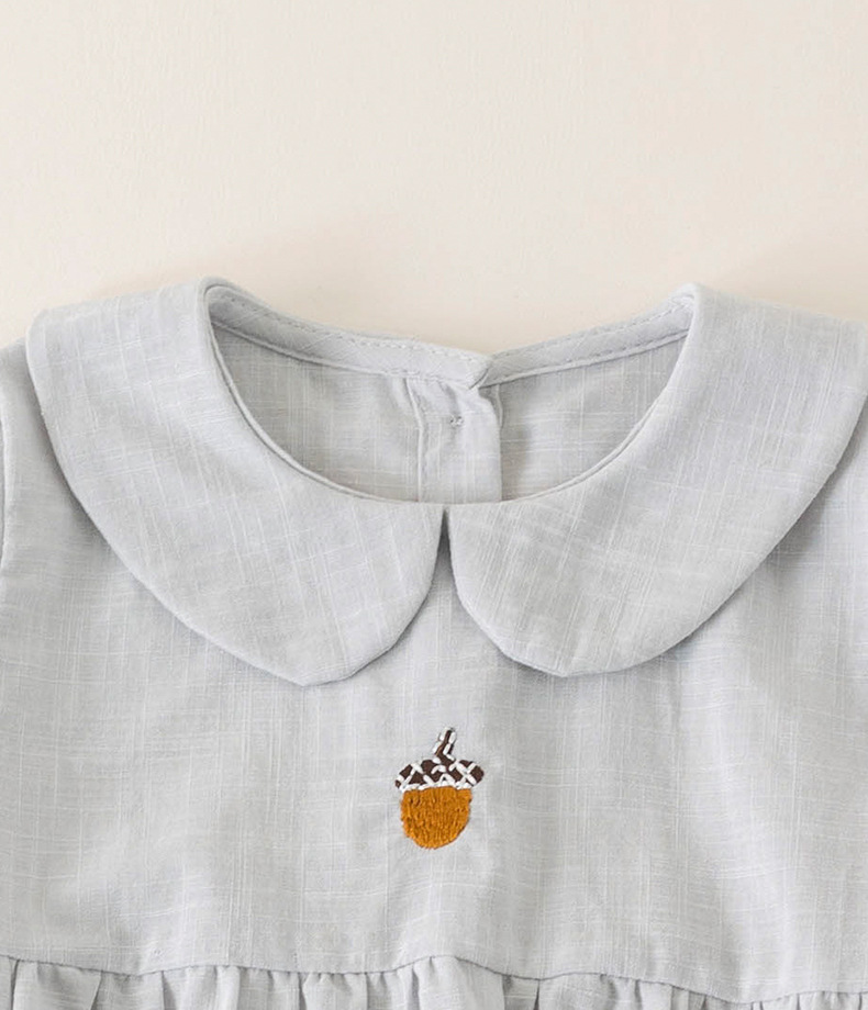 여자의 면 린넨 수제 자수 원피스 세련된 아기 공주 원피스 느슨한 긴 짧은 소매 인형 옷깃 원피스