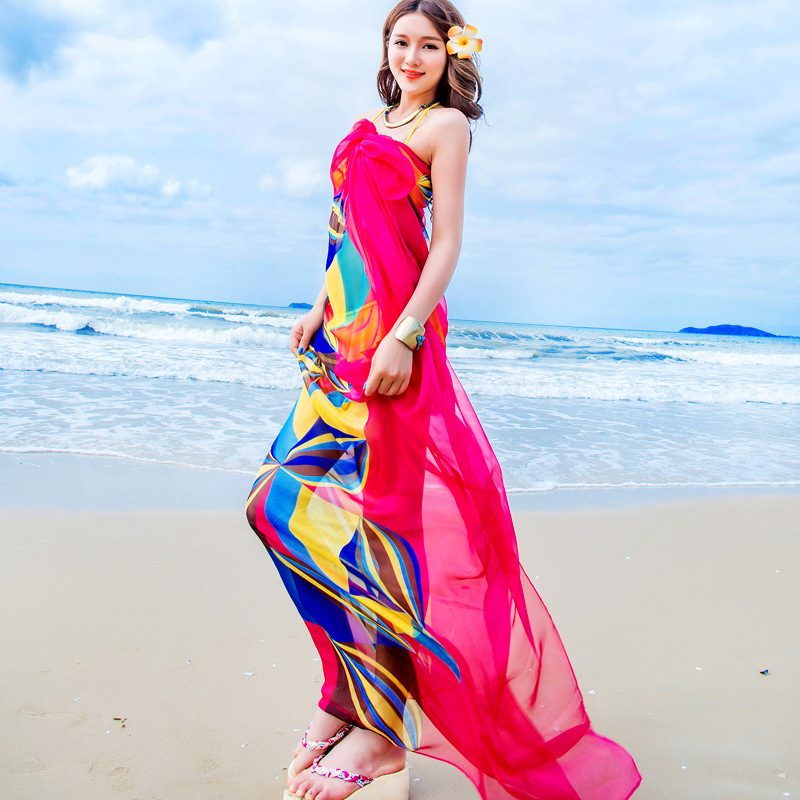 실크 스카프 여성용 한국식 모든 경기 여름 비치 타올 대형 자외선 차단제 롱 비치 숄 스카프 쉬폰 스카프
