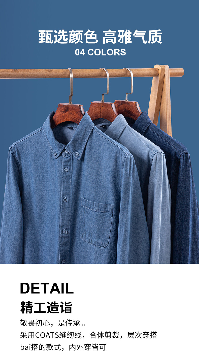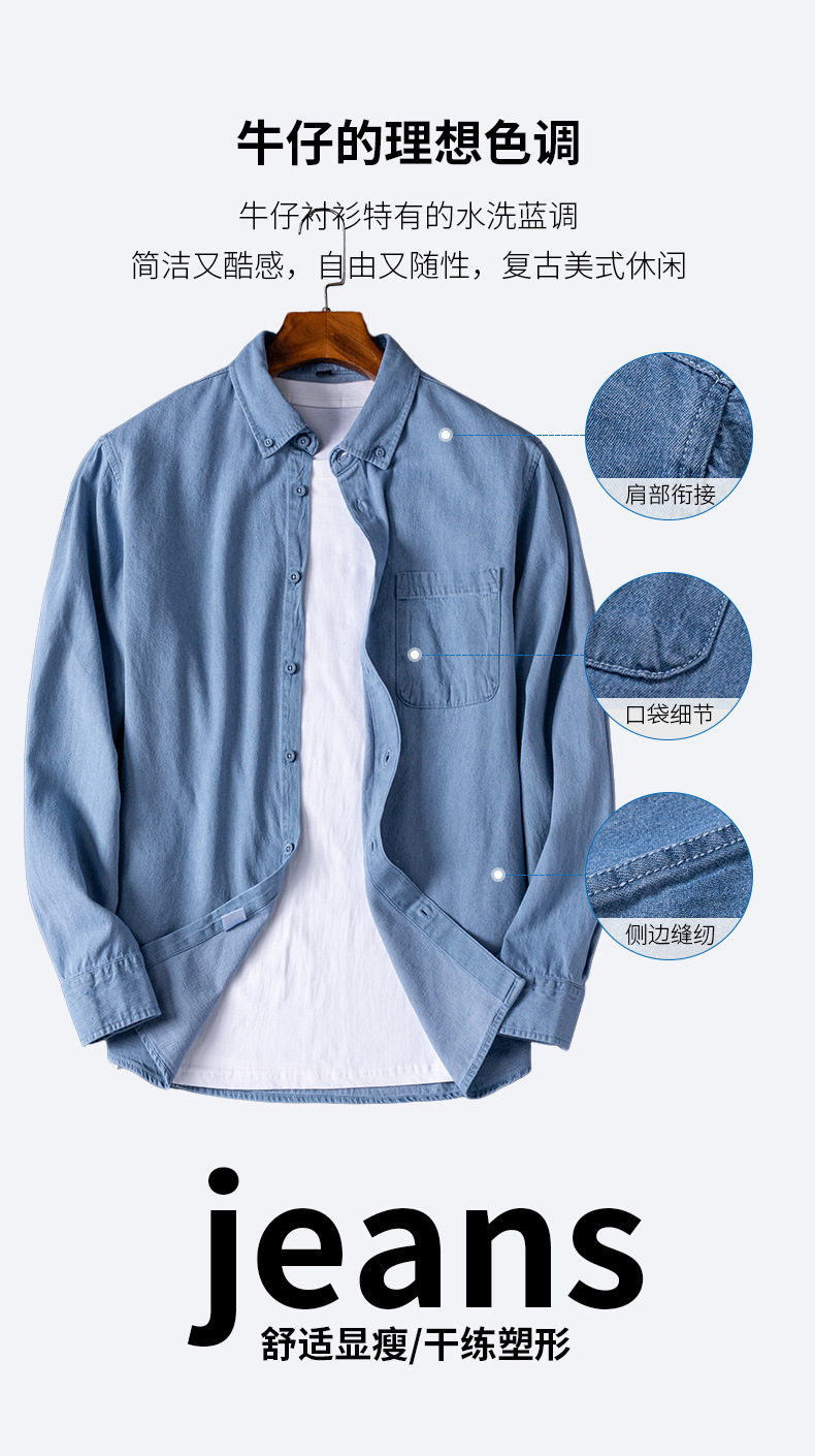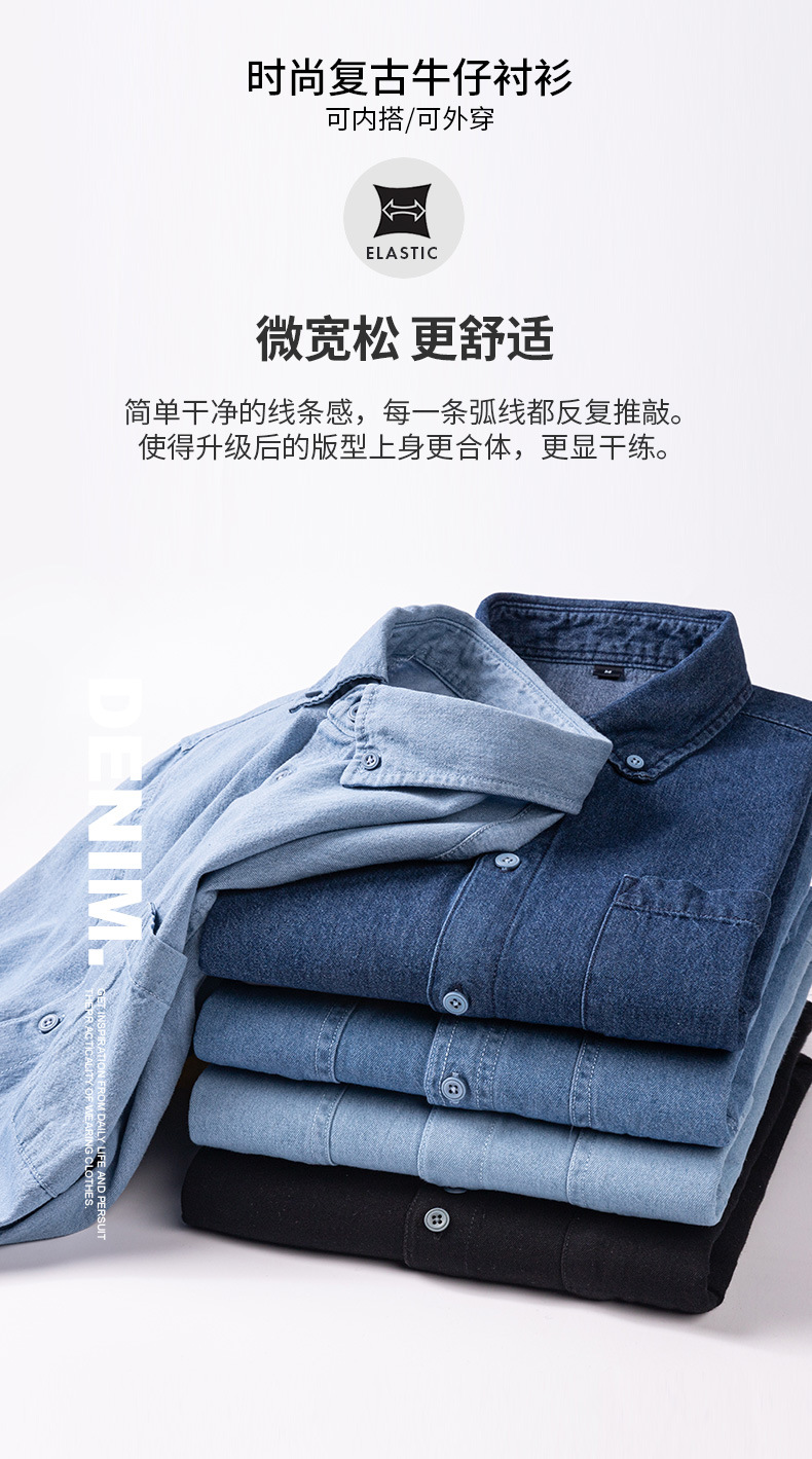 2023新款牛仔衬衫扣领长袖休闲男装抖音快手一件代发复古百搭衬衣스토어 가기