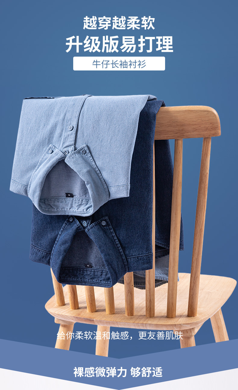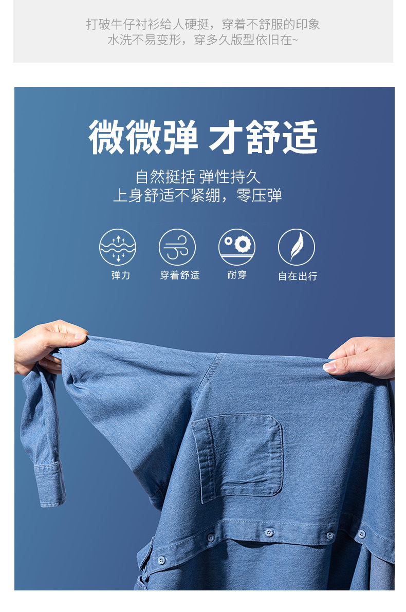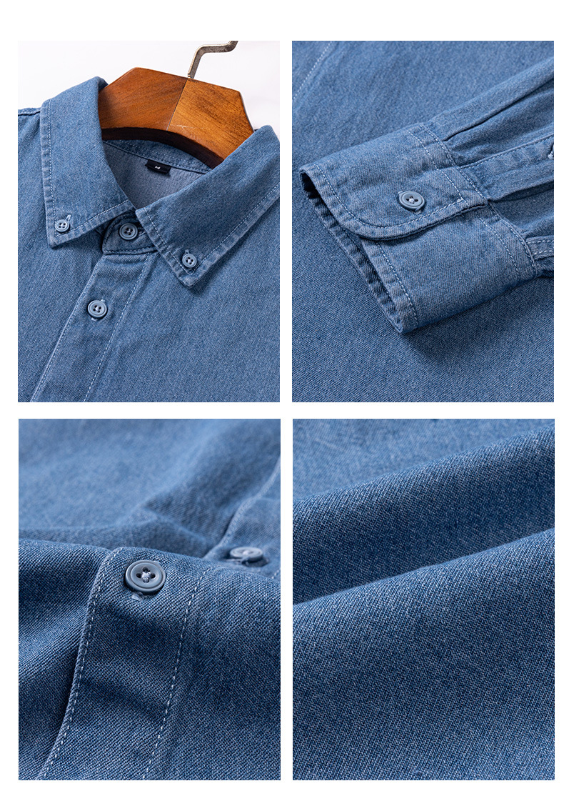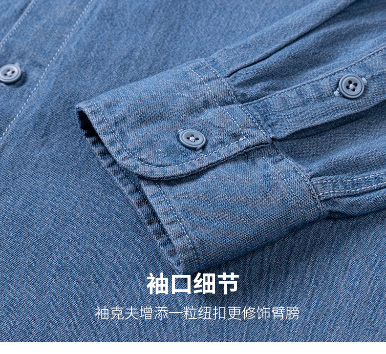 2023新款牛仔衬衫扣领长袖休闲男装抖音快手一件代发复古百搭衬衣스토어 가기