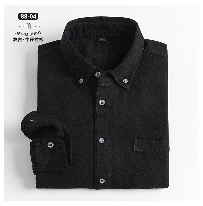 2023新款牛仔衬衫扣领长袖休闲男装抖音快手一件代发复古百搭衬衣