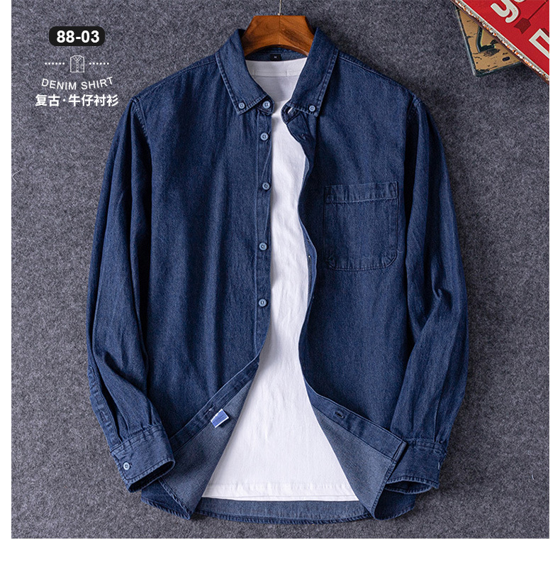 • 88-03 데님 긴 소매 셔츠 남자 셔츠