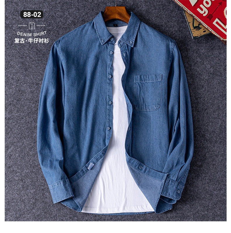 • 88-02 데님 긴소매 셔츠 남자 셔츠