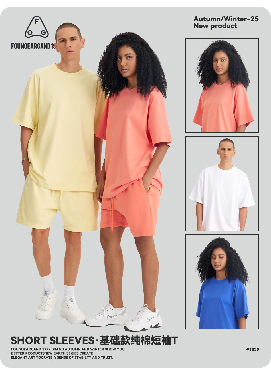 FOG 남성복 크로스보더 아메리칸 스타일 245G 헤비웨이트 순면 반팔 티셔츠 남녀공용 루즈핏 트렌디 무지 베이직 티셔츠 맞춤 제작