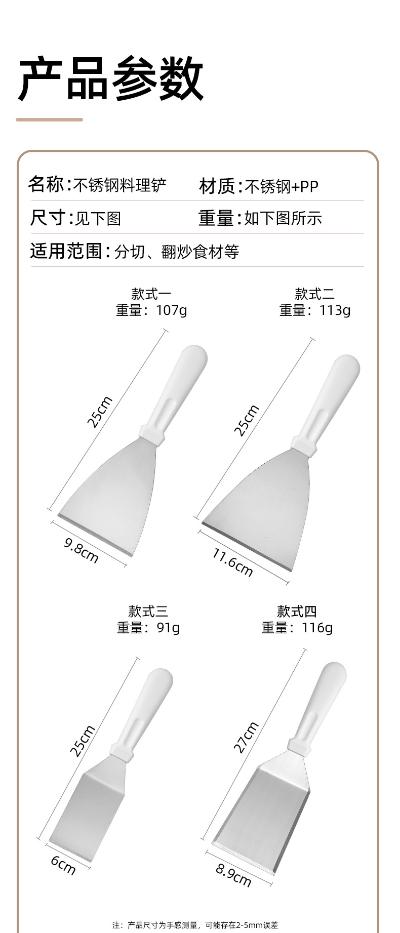 【产品尺寸】小弯铲25.5*6cm平放高2.5cm/大弯铲27.7*9cm平放2.5cm/小直铲25*9.8cm*平放2cm/大直铲25*11.6cm*平放2cm