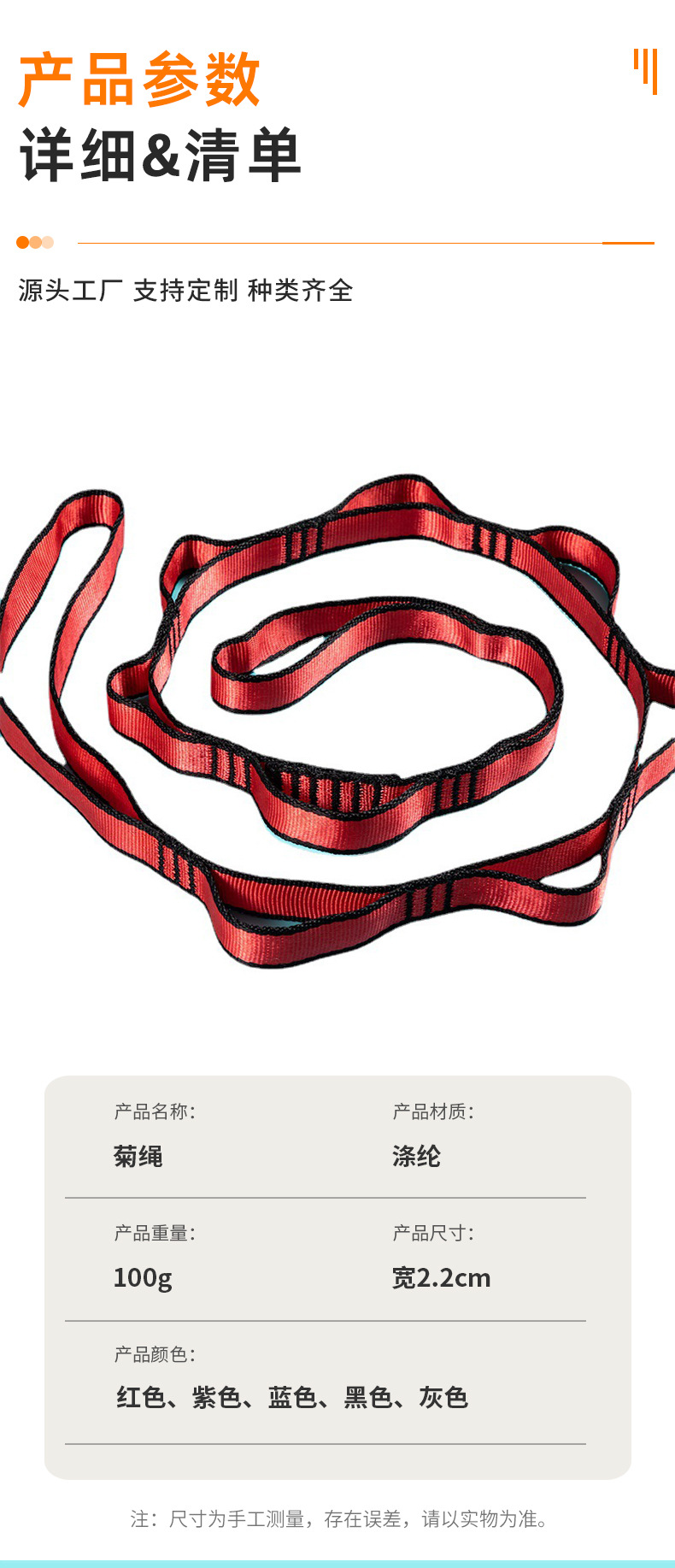 국화 로프 공중 요가 해먹 플랫 벨트 로프 국화 벨트 플랫 벨트 락 클라이밍 플랫 벨트 제조 업체 사용자 정의 교정스토어 가기