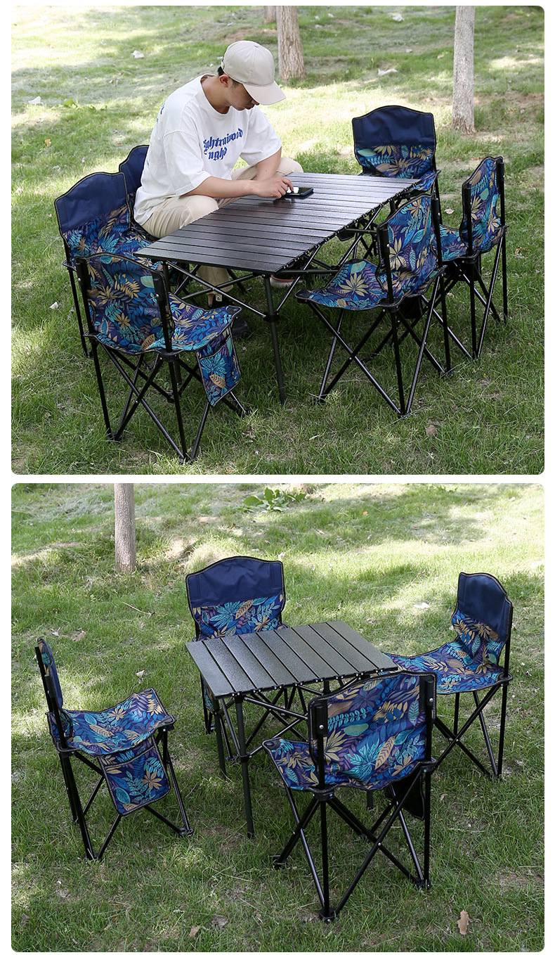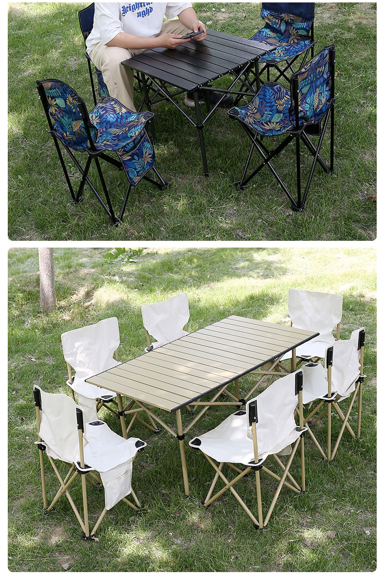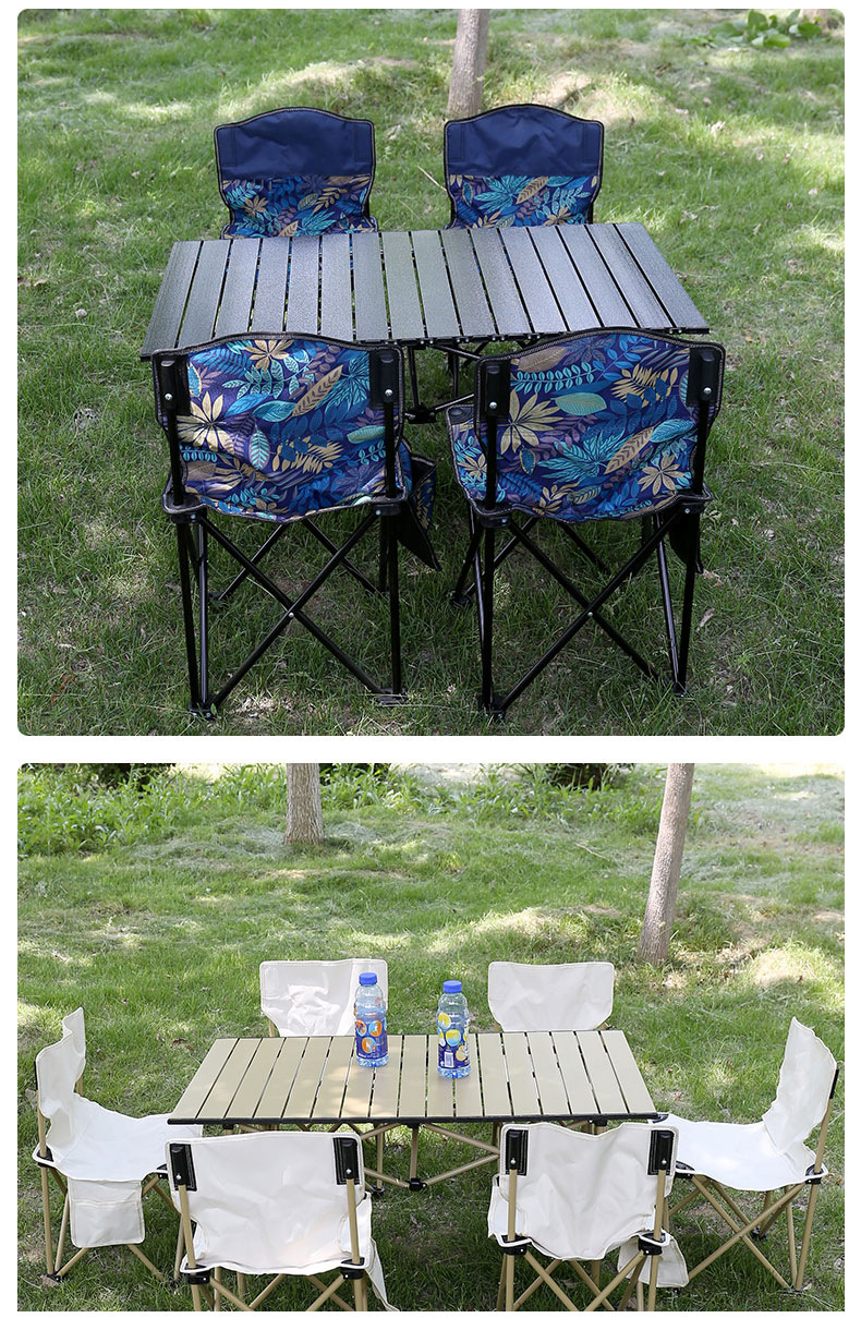 접이식 테이블과 의자 세트 피크닉 캠핑용 탄소강 접이식 테이블 다기능 휴대용 에그롤 테이블 접이식 의자 보관 휴대용