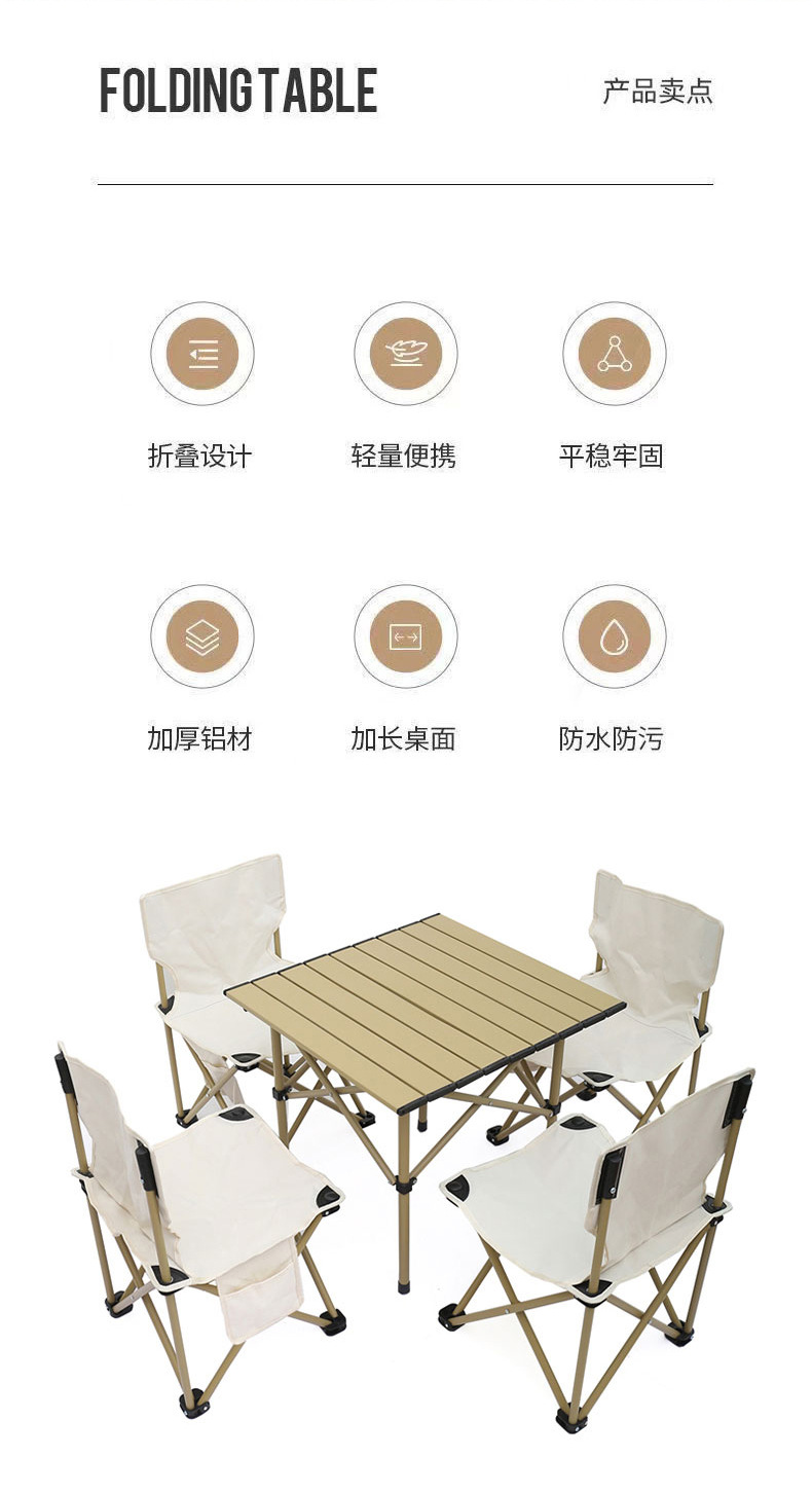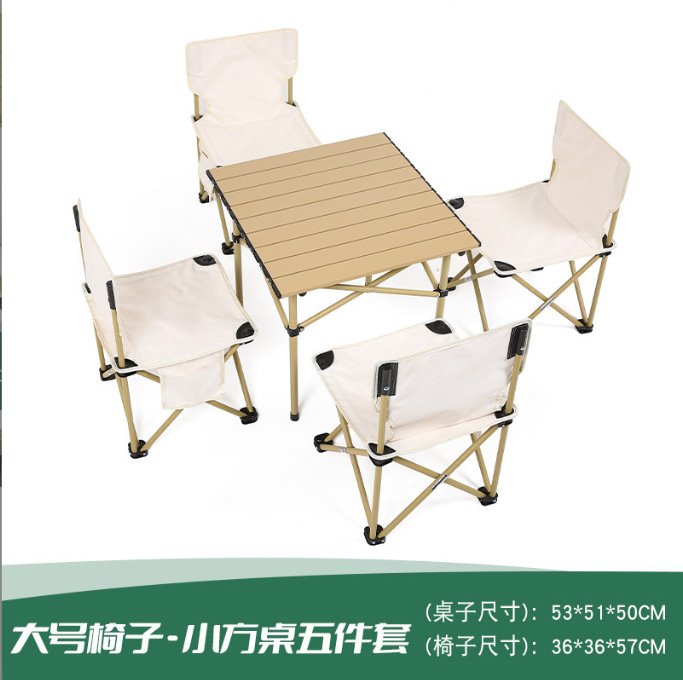 • 5종 세트(금빛 작은 사각형 테이블 + 대형 접이식 의자 4개)