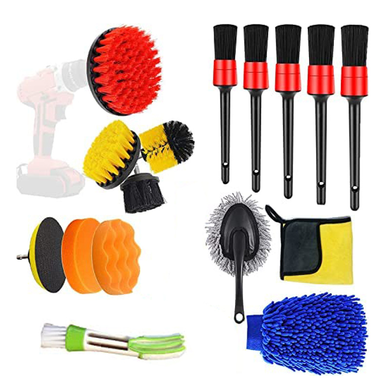 자동차 청소 도구 16종 세트 자동차 내부 청소 브러시 광택 스펀지 산호 벨벳 장갑 청소 세트