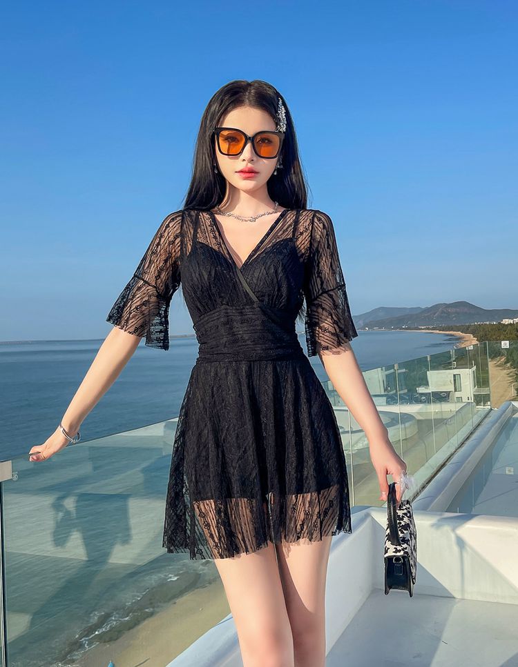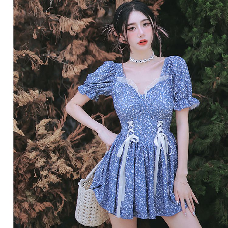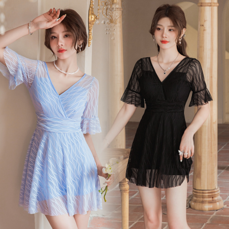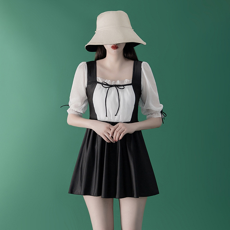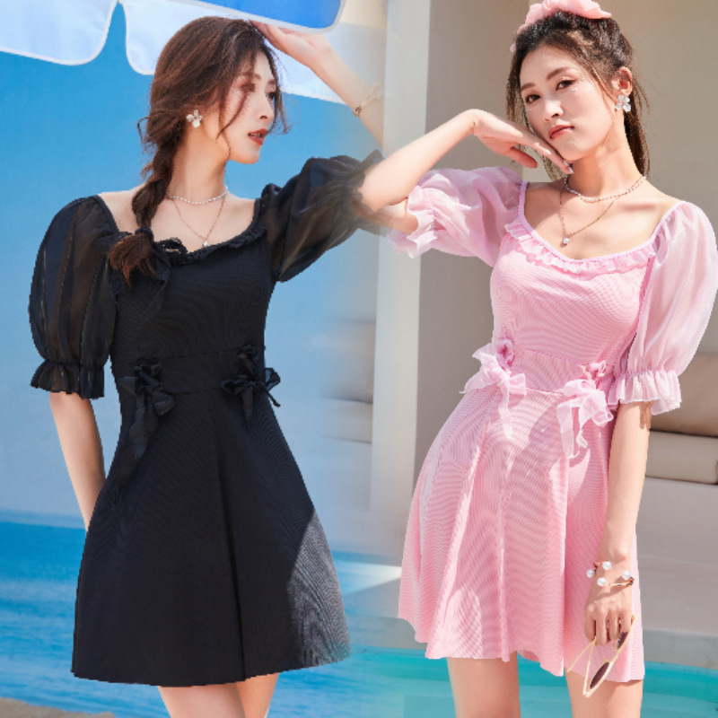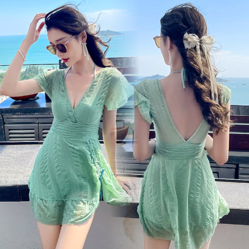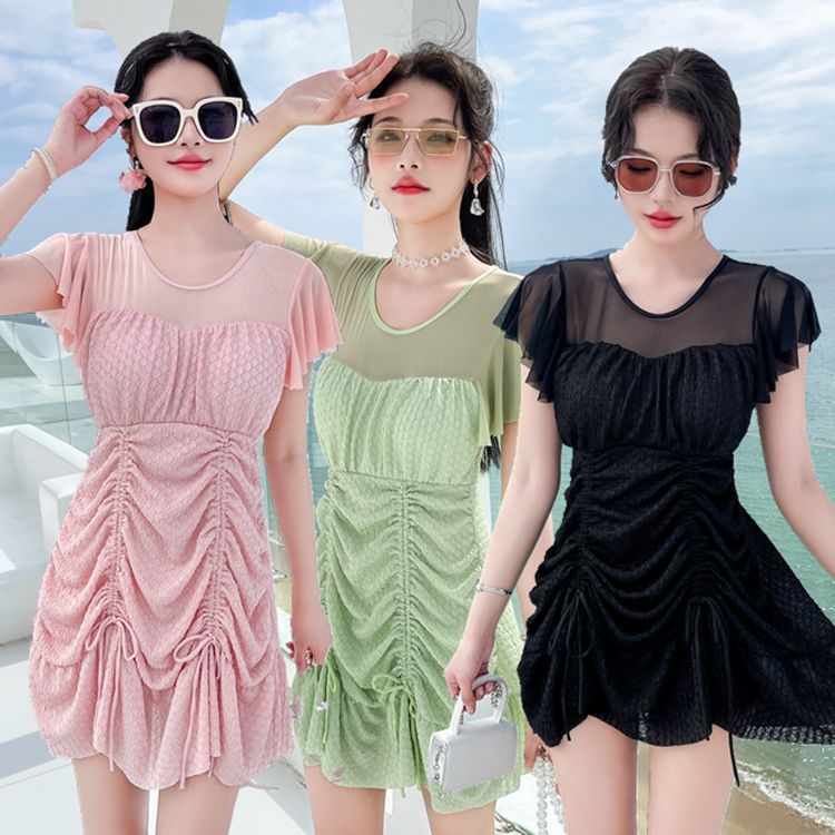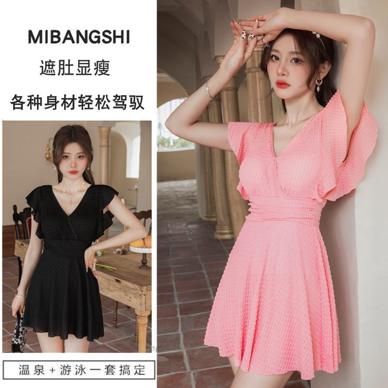 수영복 여성용 스커트 원피스 보수적 인 배꼽 덮음 슬리밍 한국 스타일 스틸 브래킷 모인 요정 스타일 온천 수영복스토어 가기