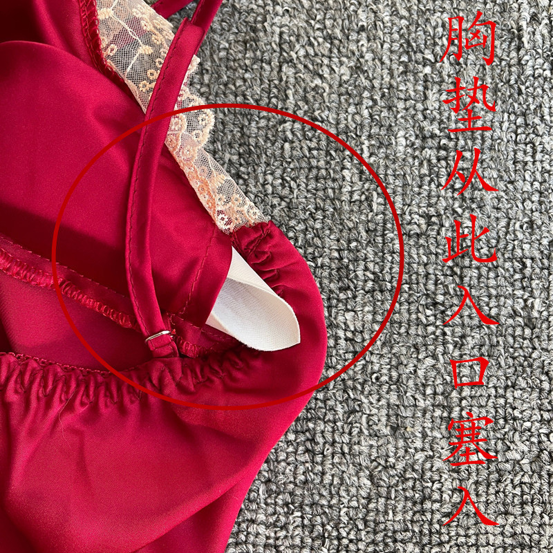 섹시한 잠옷 여자의 2023 새로운 여름 얇은 얼음 실크 레이스 단색 슬링 잠옷 치마 가슴 패드스토어 가기