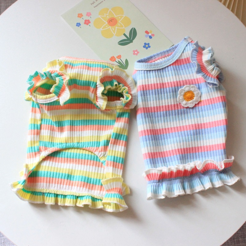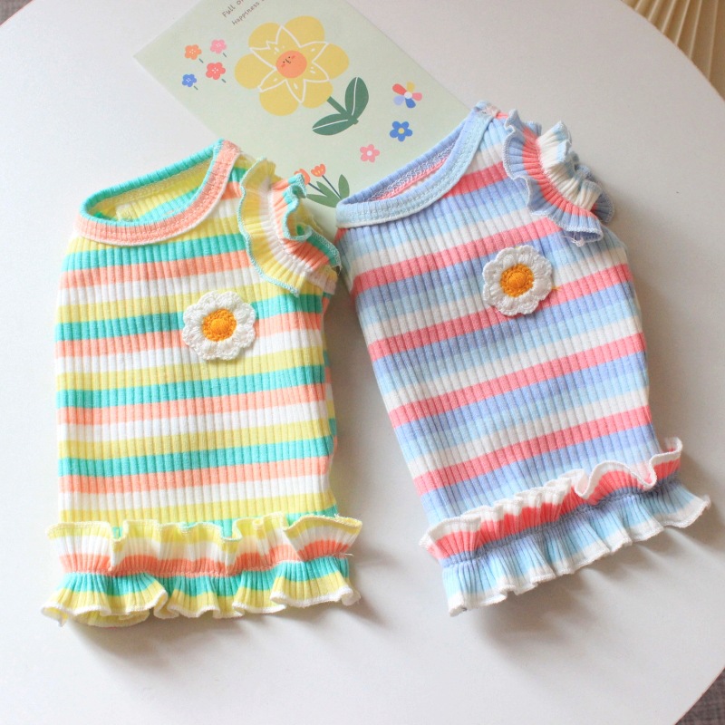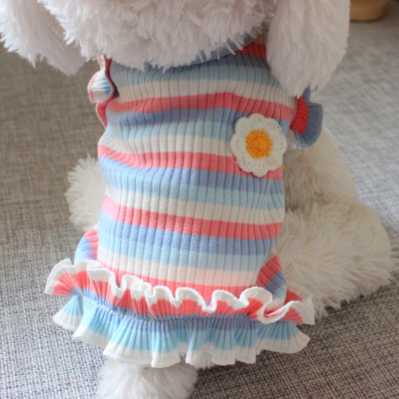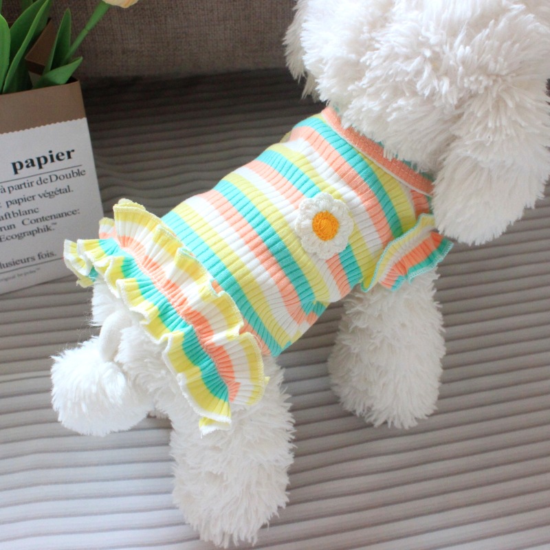 개 고양이 옷 얇은 상쾌한 애완 동물 강아지 여름 테디 베어 스트라이프 티셔츠 원피스 도매